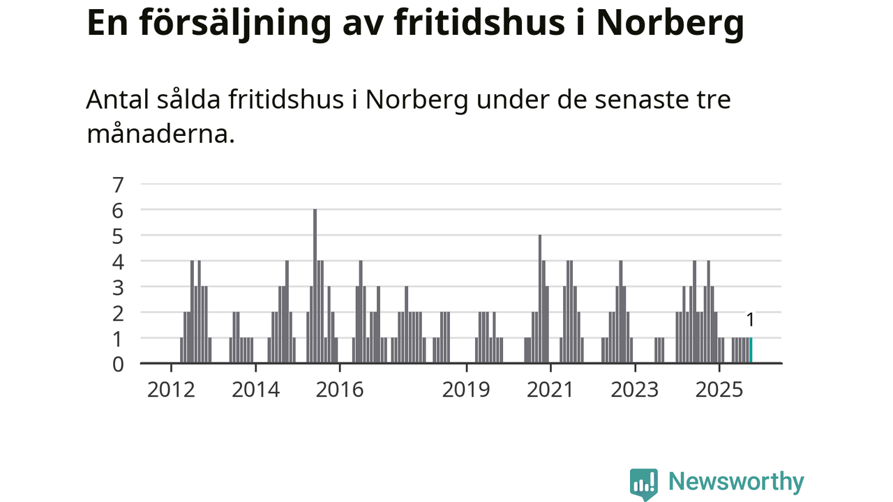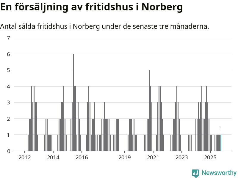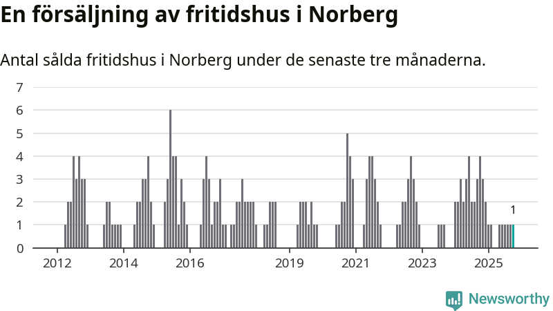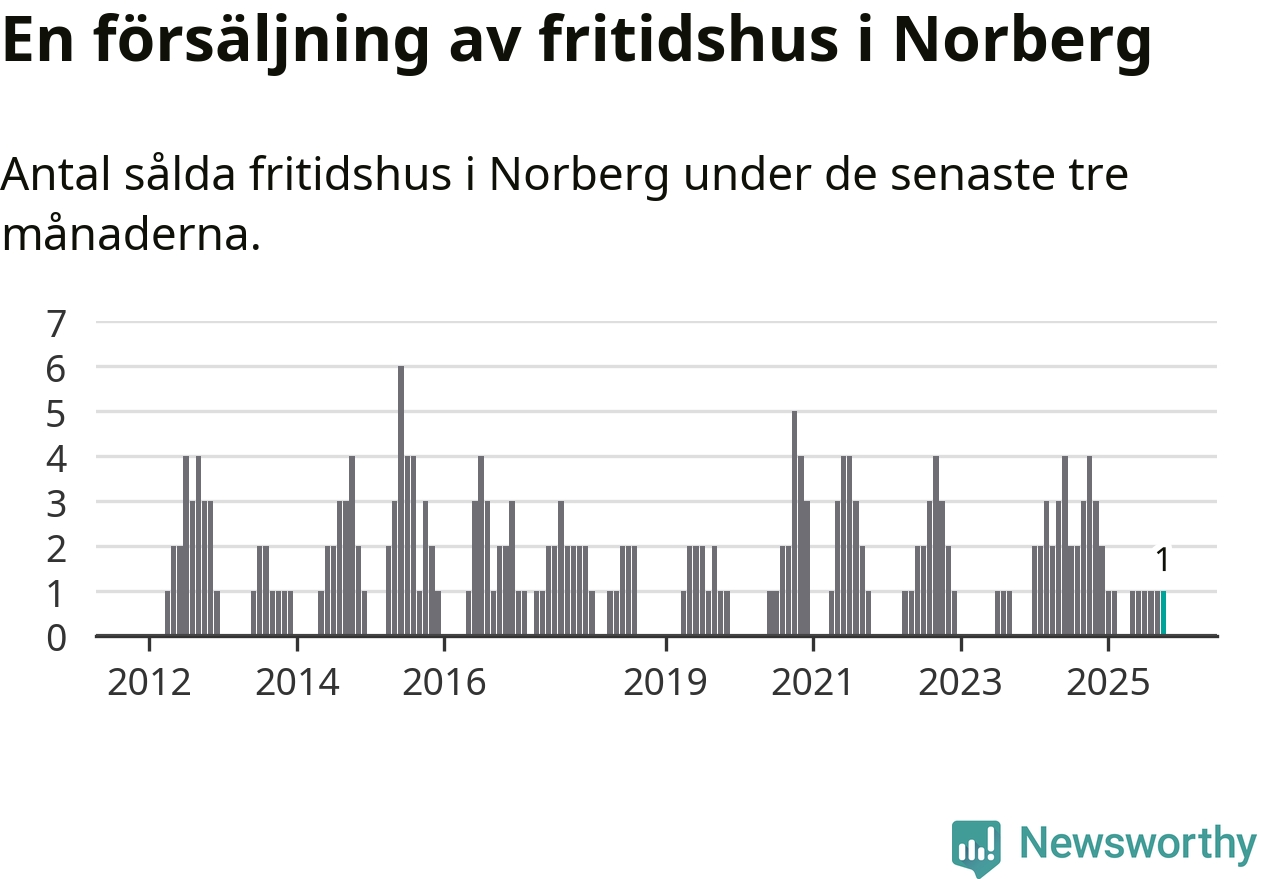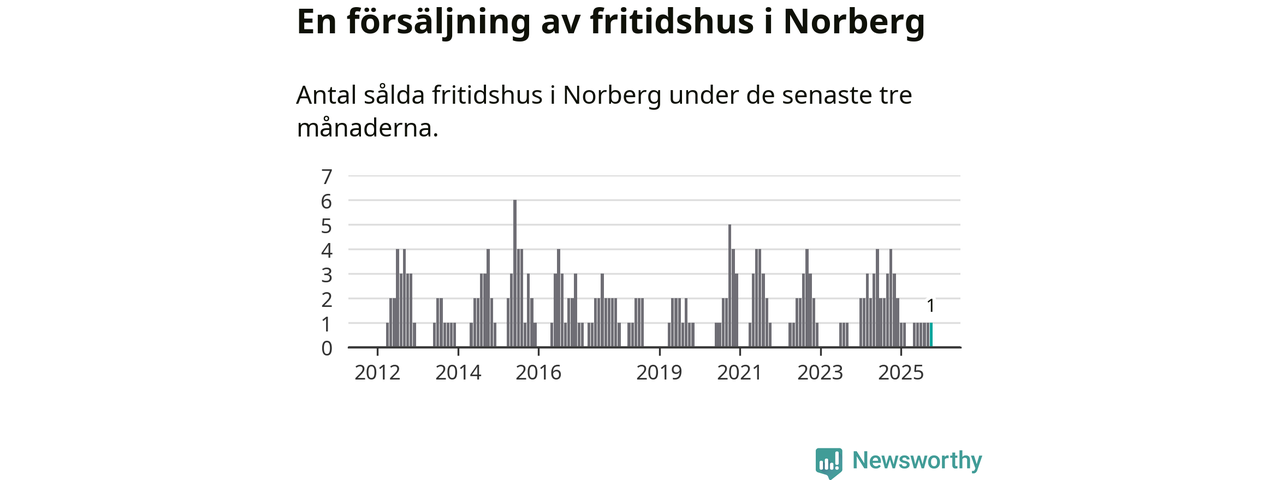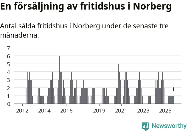 Mellan augusti och oktober gjordes sammanlagt en affär med fritidshus i Norbergs kommun. Det kan jämföras med fyra vid motsvarande tid i fjol.