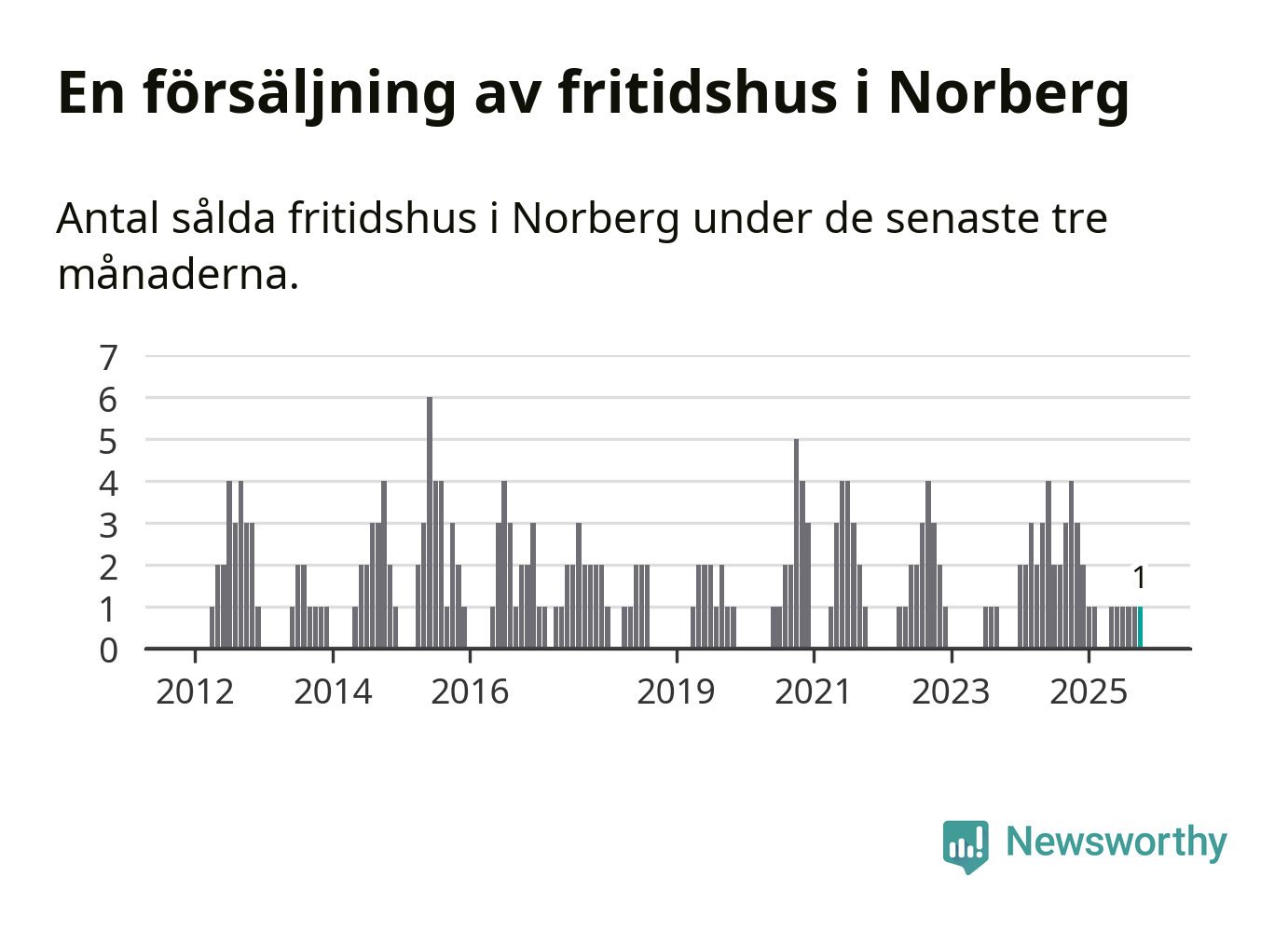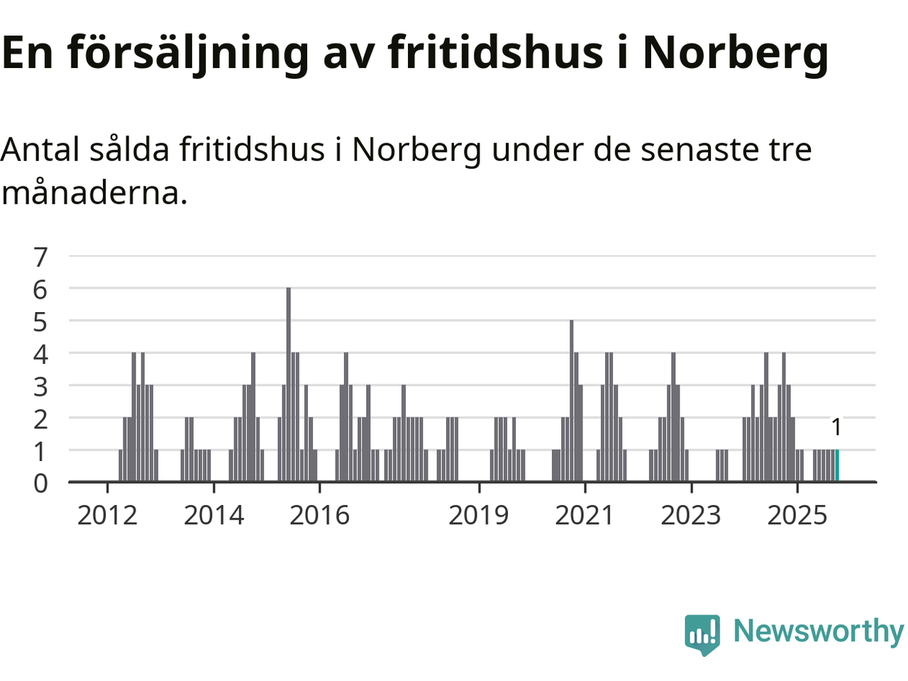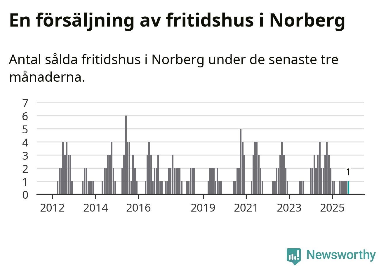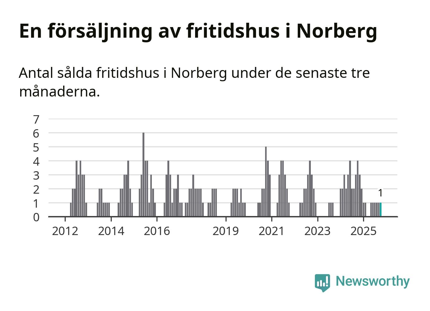 Mellan augusti och oktober gjordes sammanlagt en affär med fritidshus i Norbergs kommun. Det kan jämföras med fyra vid motsvarande tid i fjol.
