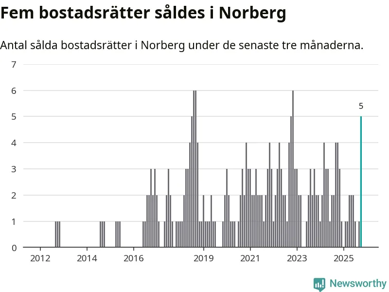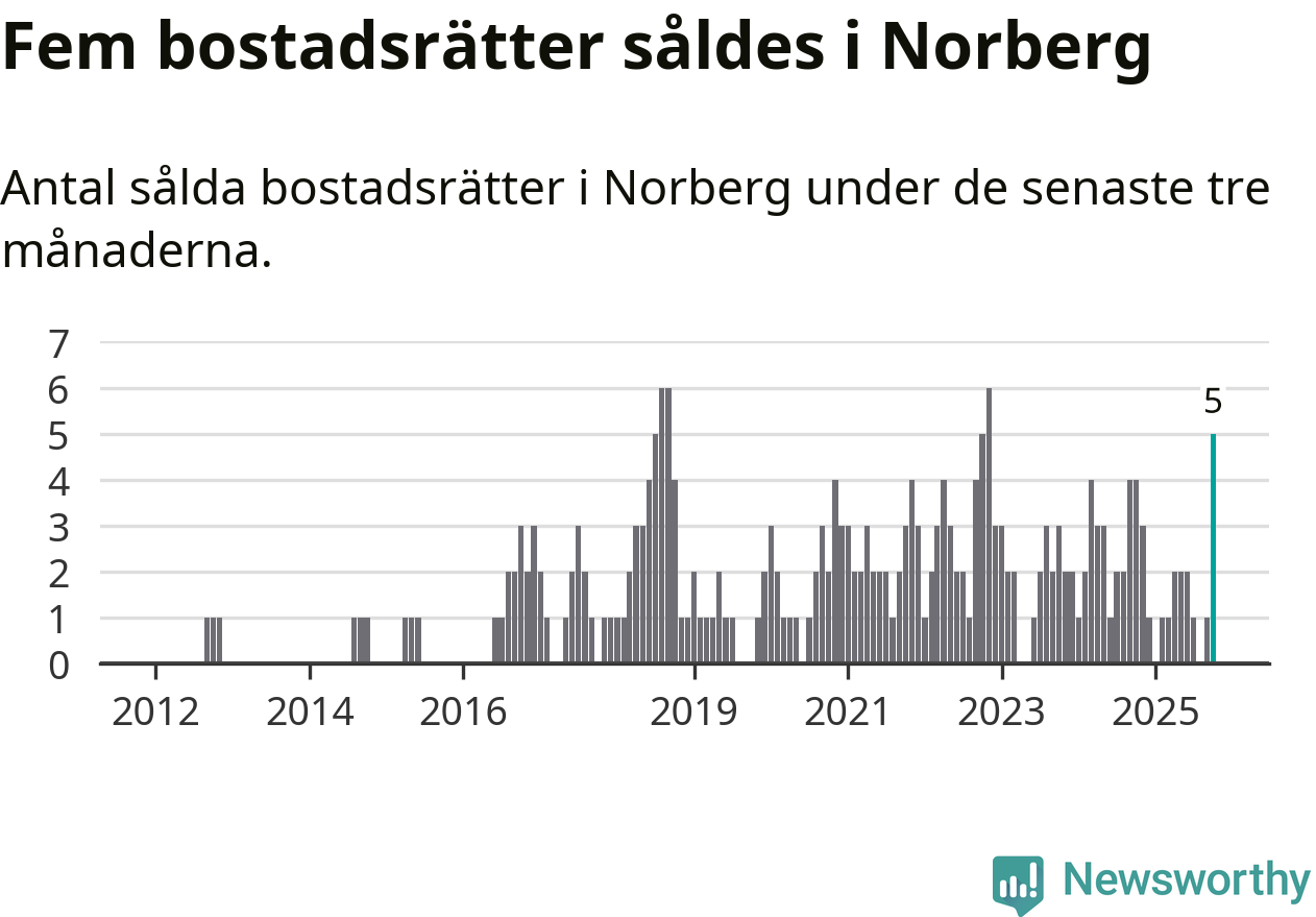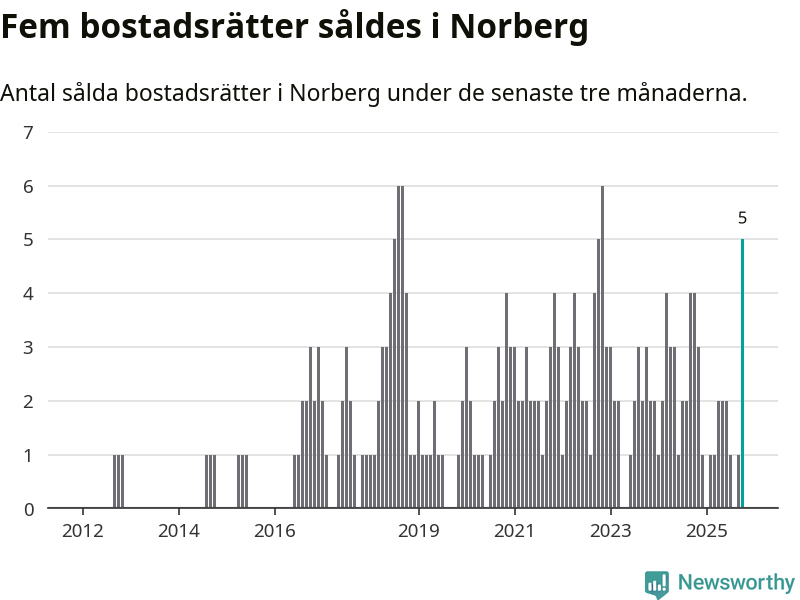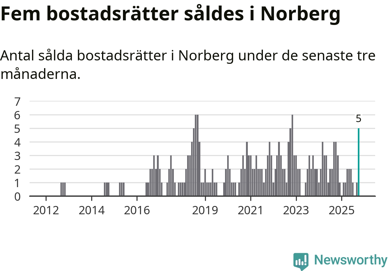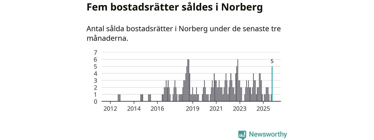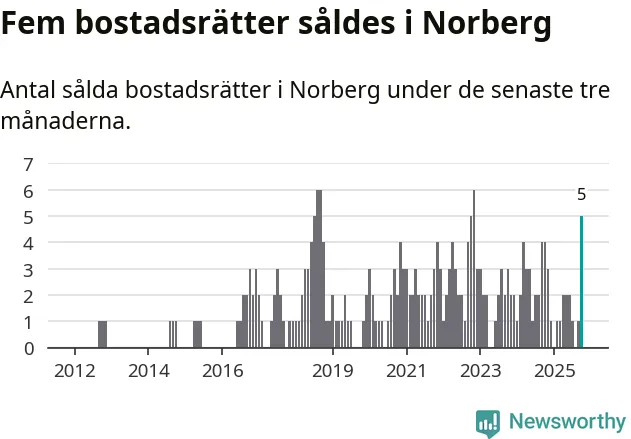 Mellan augusti och oktober gjordes sammanlagt fem affärer med bostadsrätter i Norbergs kommun. Det kan jämföras med fyra vid motsvarande tid i fjol.