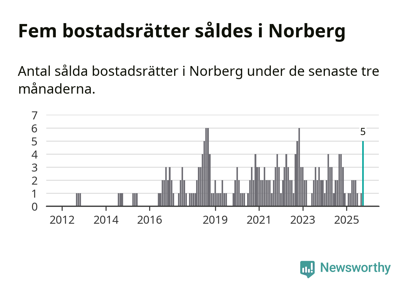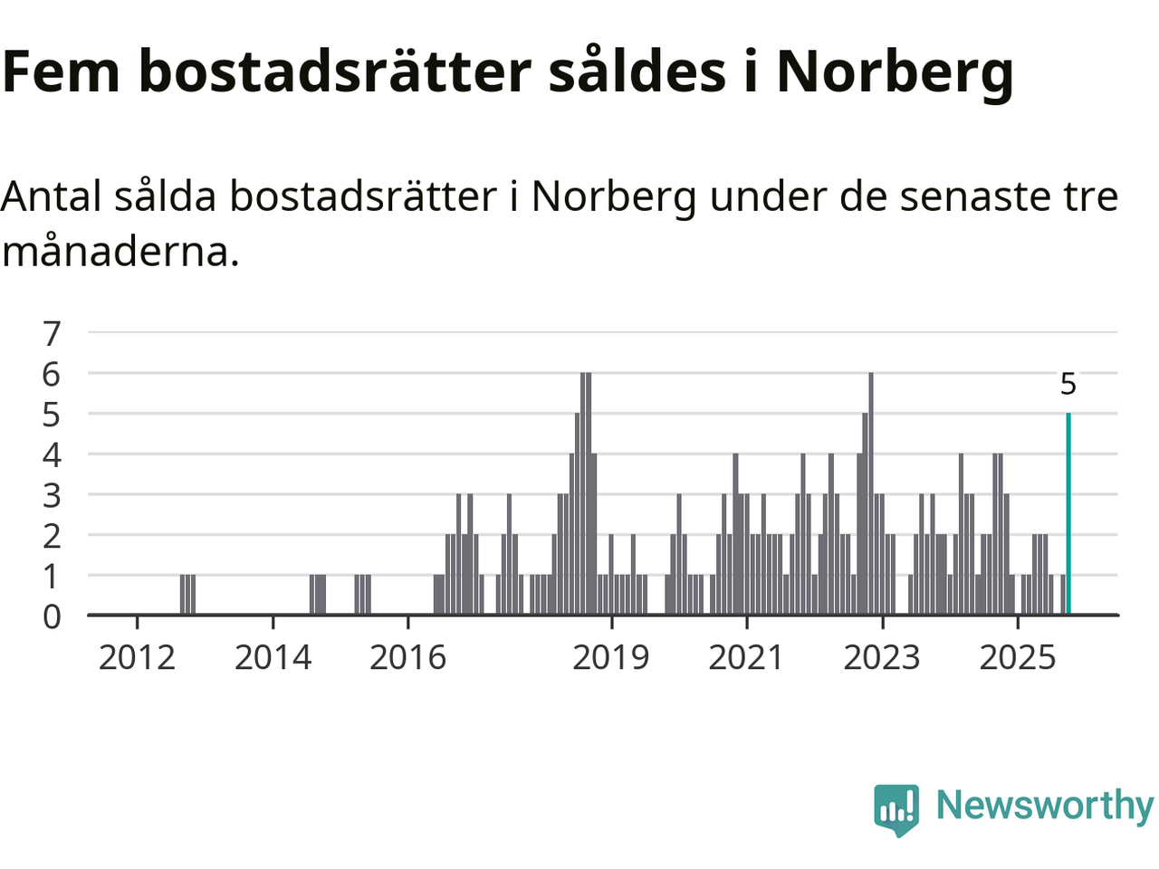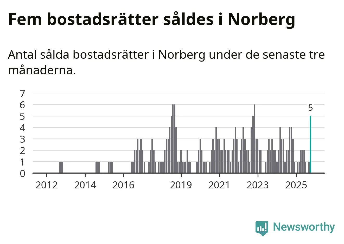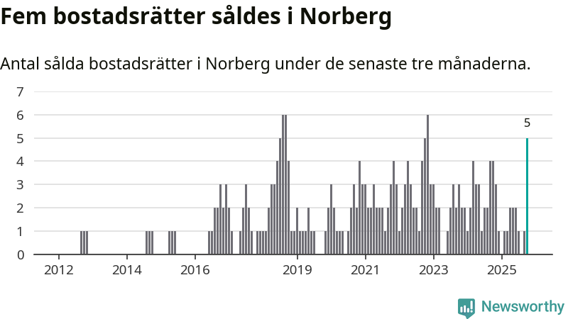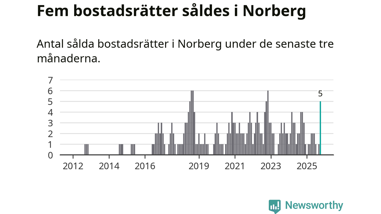 Mellan augusti och oktober gjordes sammanlagt fem affärer med bostadsrätter i Norbergs kommun. Det kan jämföras med fyra vid motsvarande tid i fjol.