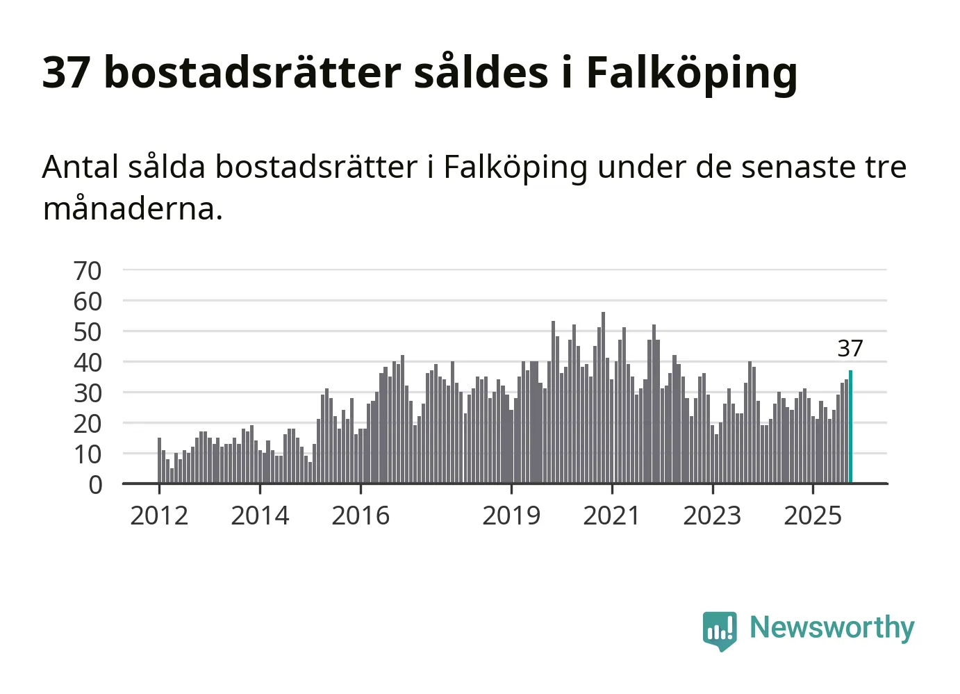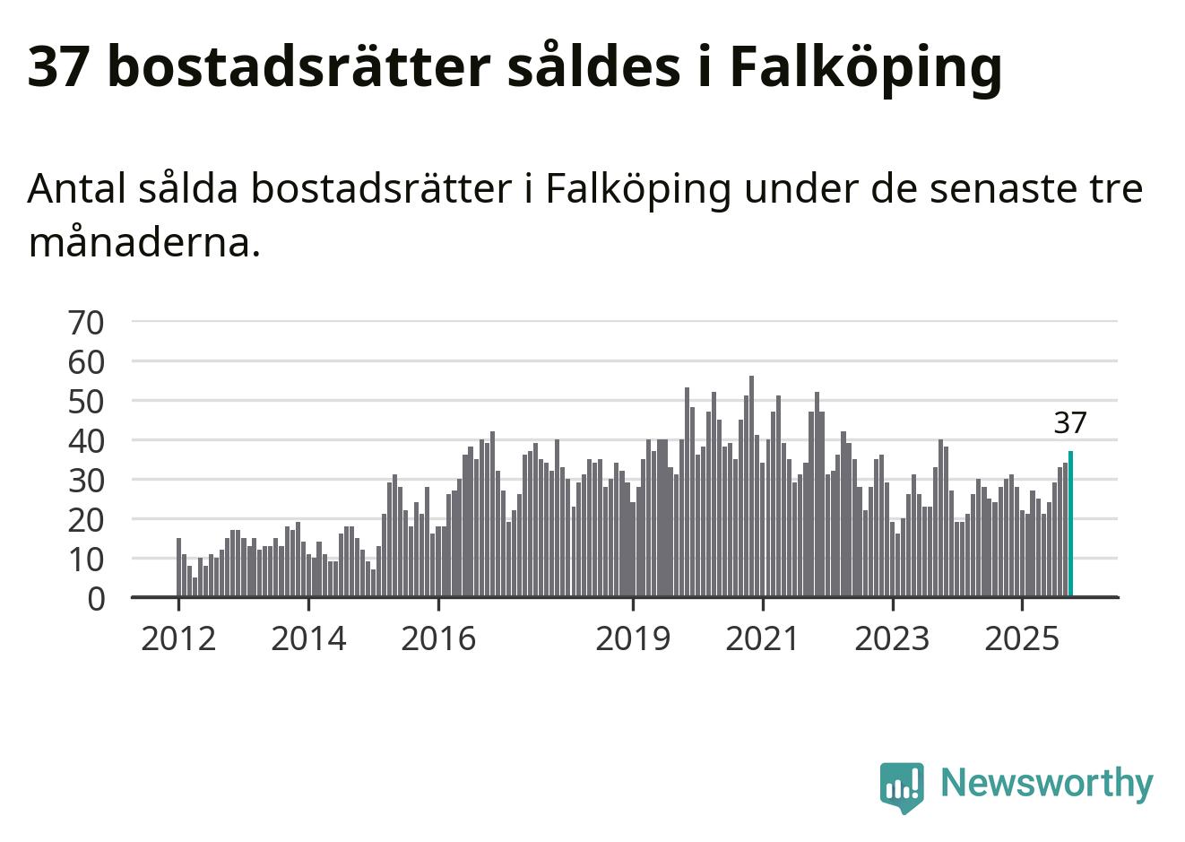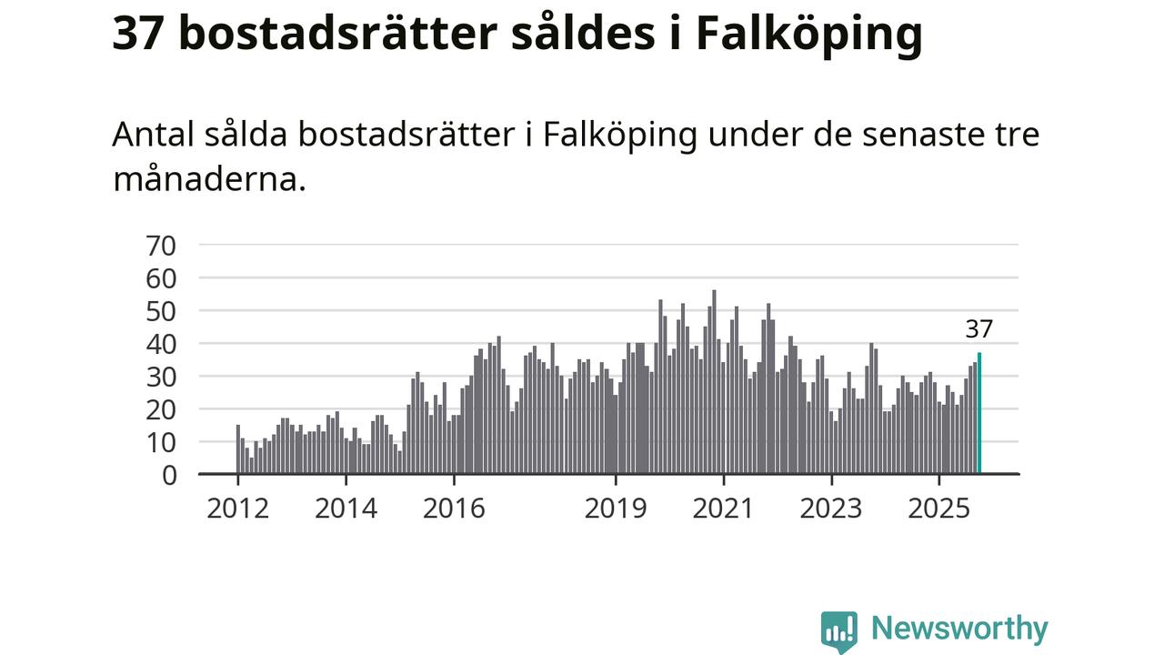 Mellan augusti och oktober gjordes sammanlagt 37 affärer med bostadsrätter i Falköpings kommun. Det kan jämföras med 30 vid motsvarande tid i fjol.