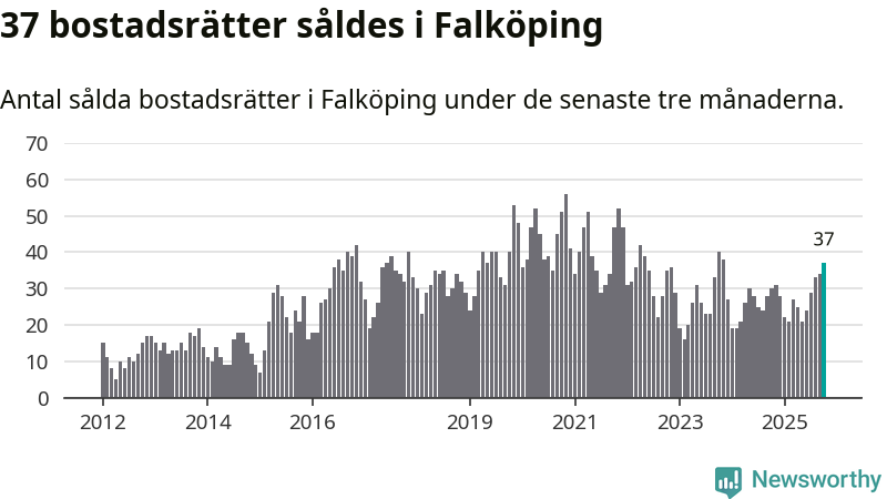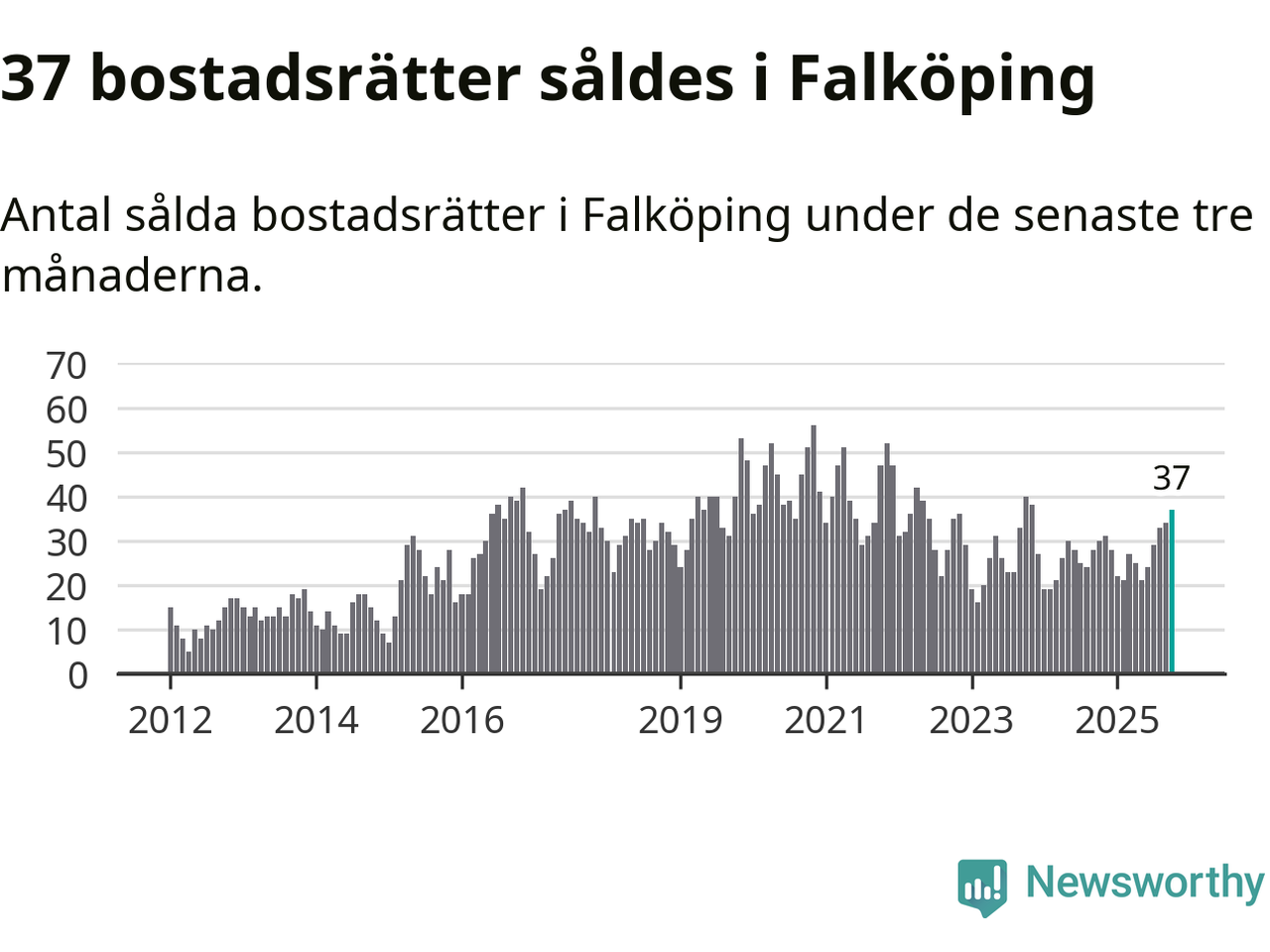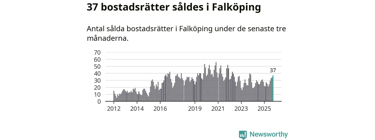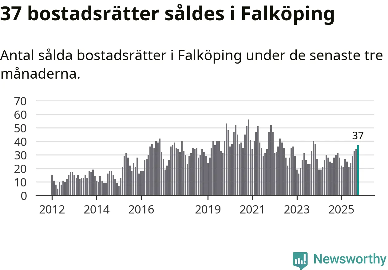 Mellan augusti och oktober gjordes sammanlagt 37 affärer med bostadsrätter i Falköpings kommun. Det kan jämföras med 30 vid motsvarande tid i fjol.
