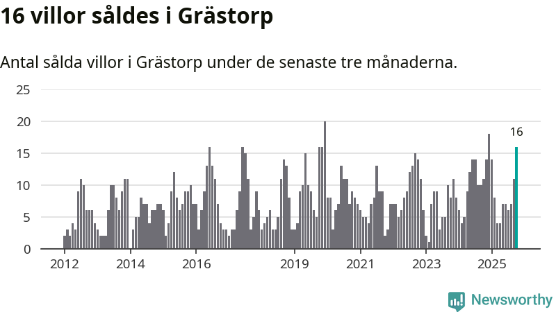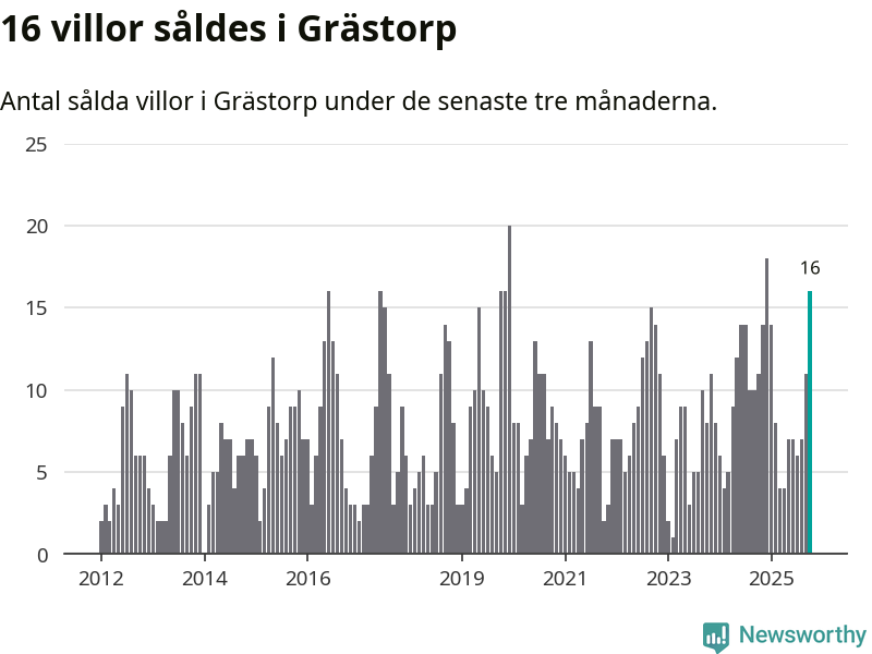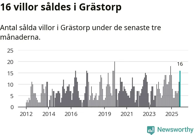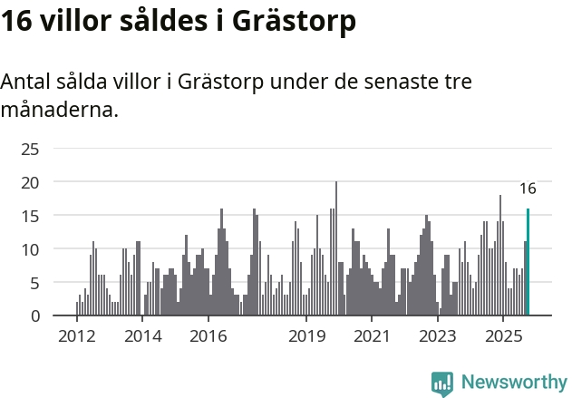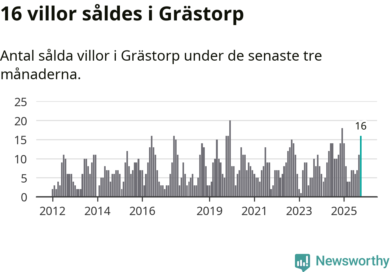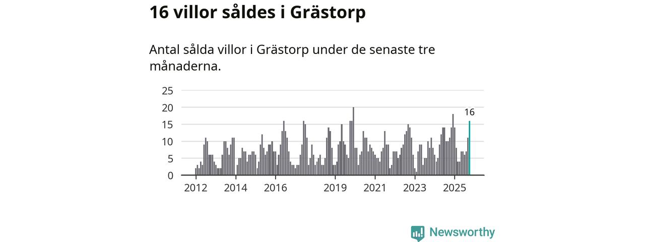 Mellan augusti och oktober gjordes sammanlagt 16 affärer med villor i Grästorps kommun. Det kan jämföras med elva vid motsvarande tid i fjol.