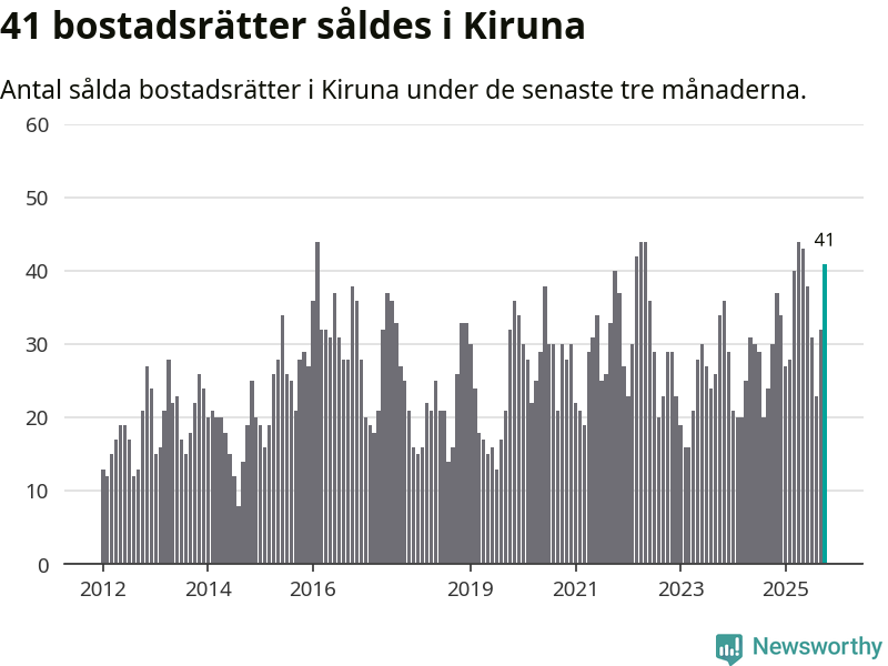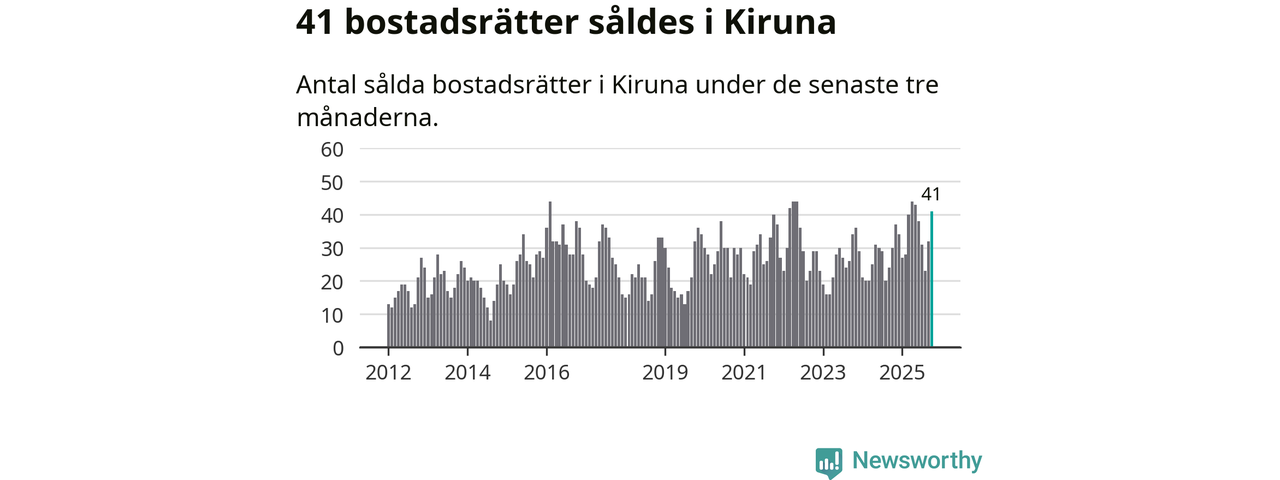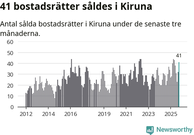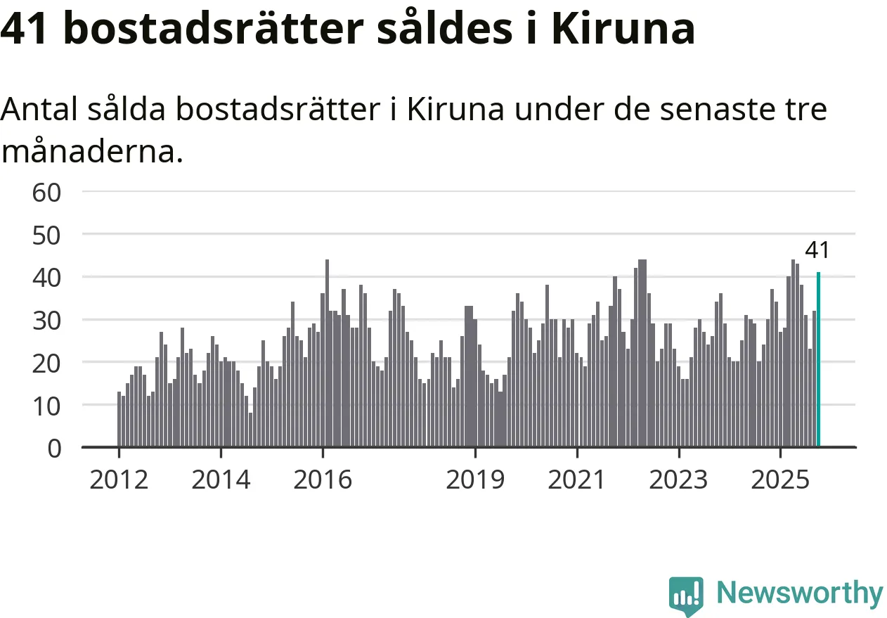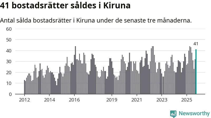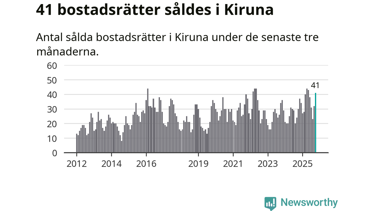 Mellan augusti och oktober gjordes sammanlagt 41 affärer med bostadsrätter i Kiruna kommun. Det kan jämföras med 30 vid motsvarande tid i fjol.