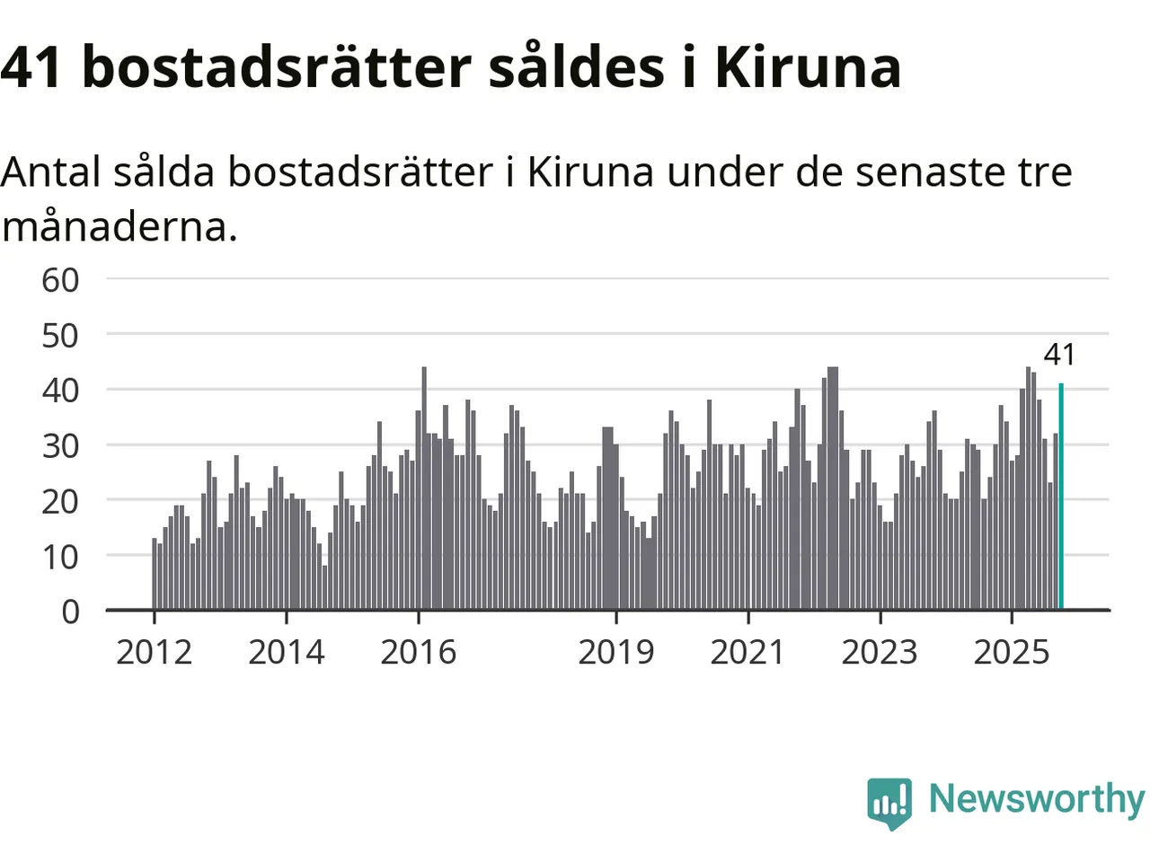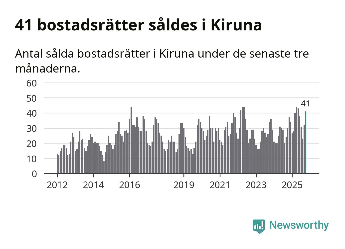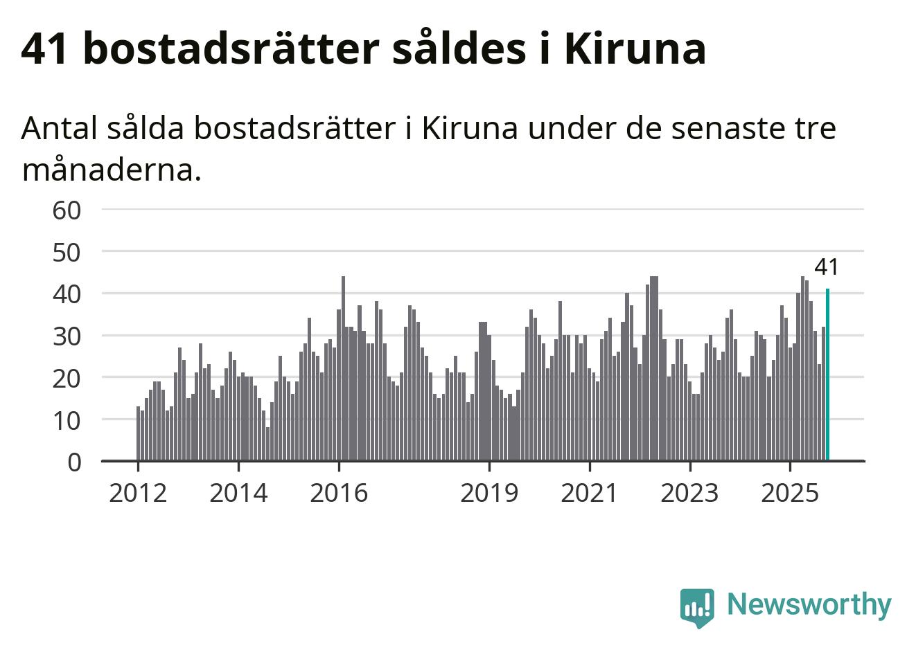 Mellan augusti och oktober gjordes sammanlagt 41 affärer med bostadsrätter i Kiruna kommun. Det kan jämföras med 30 vid motsvarande tid i fjol.
