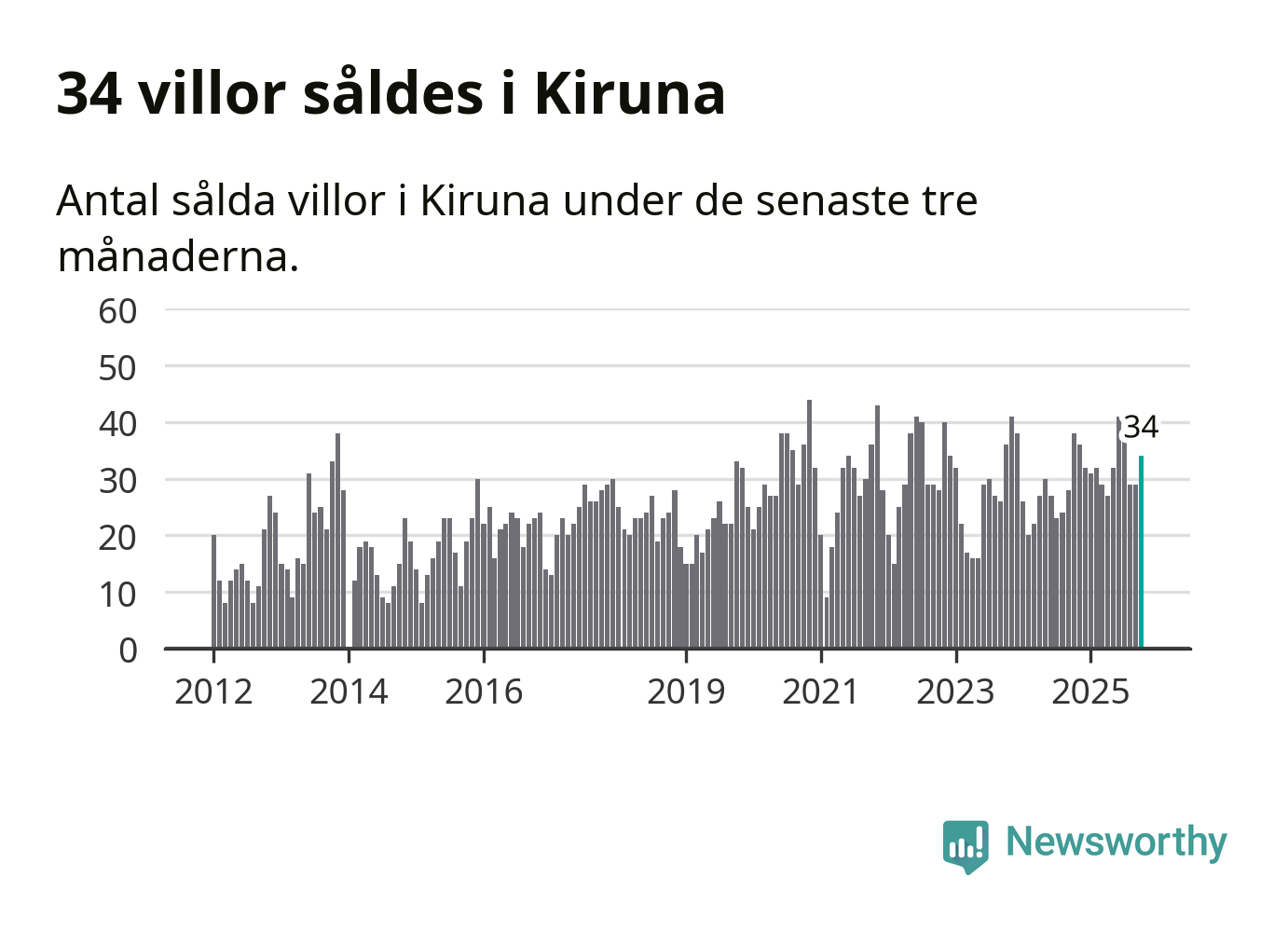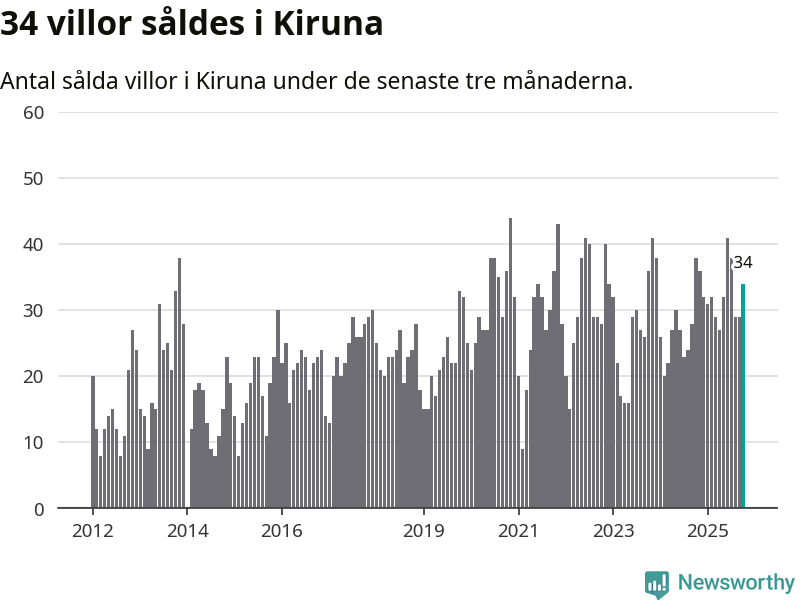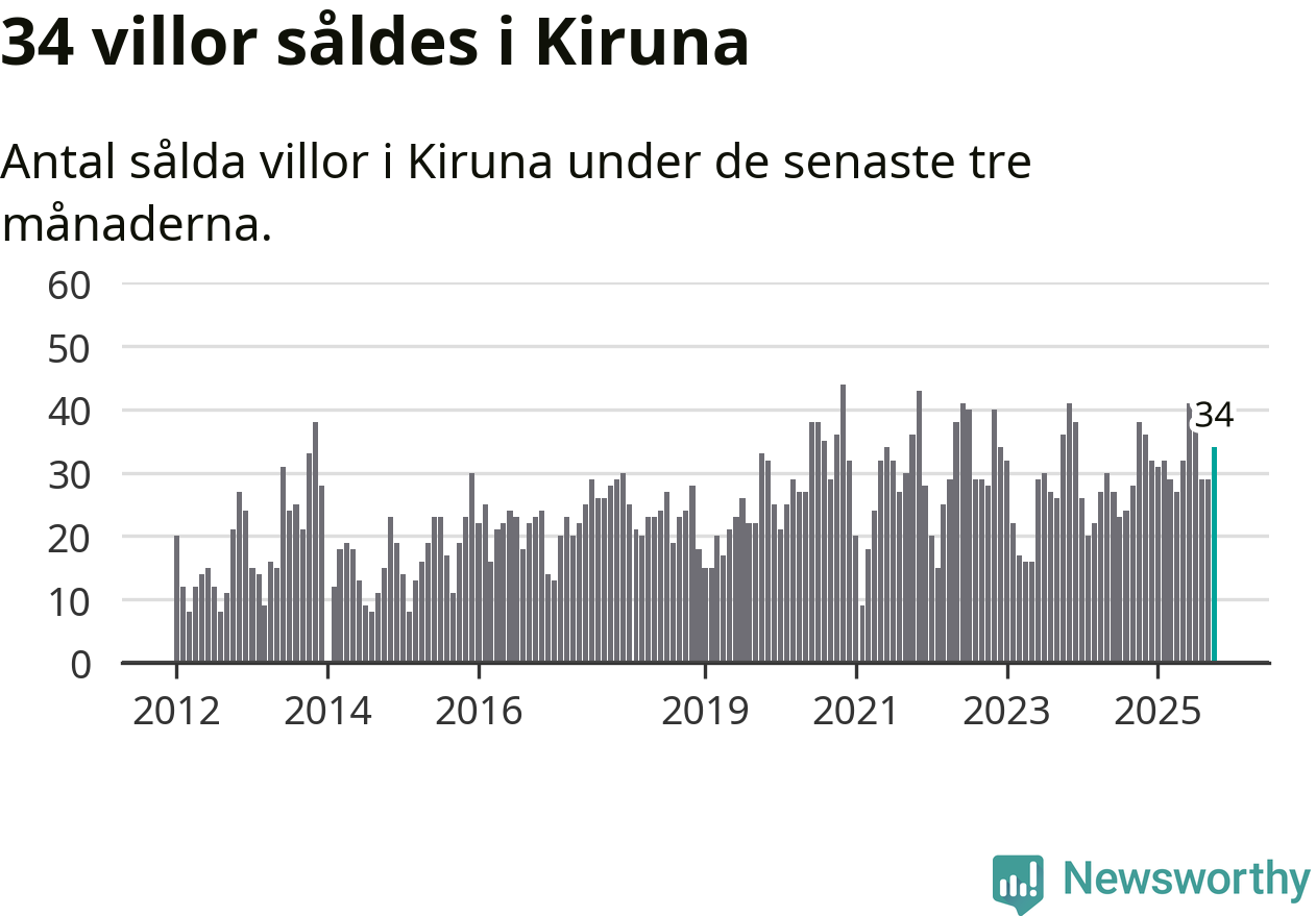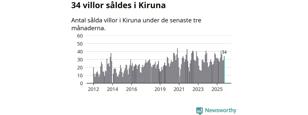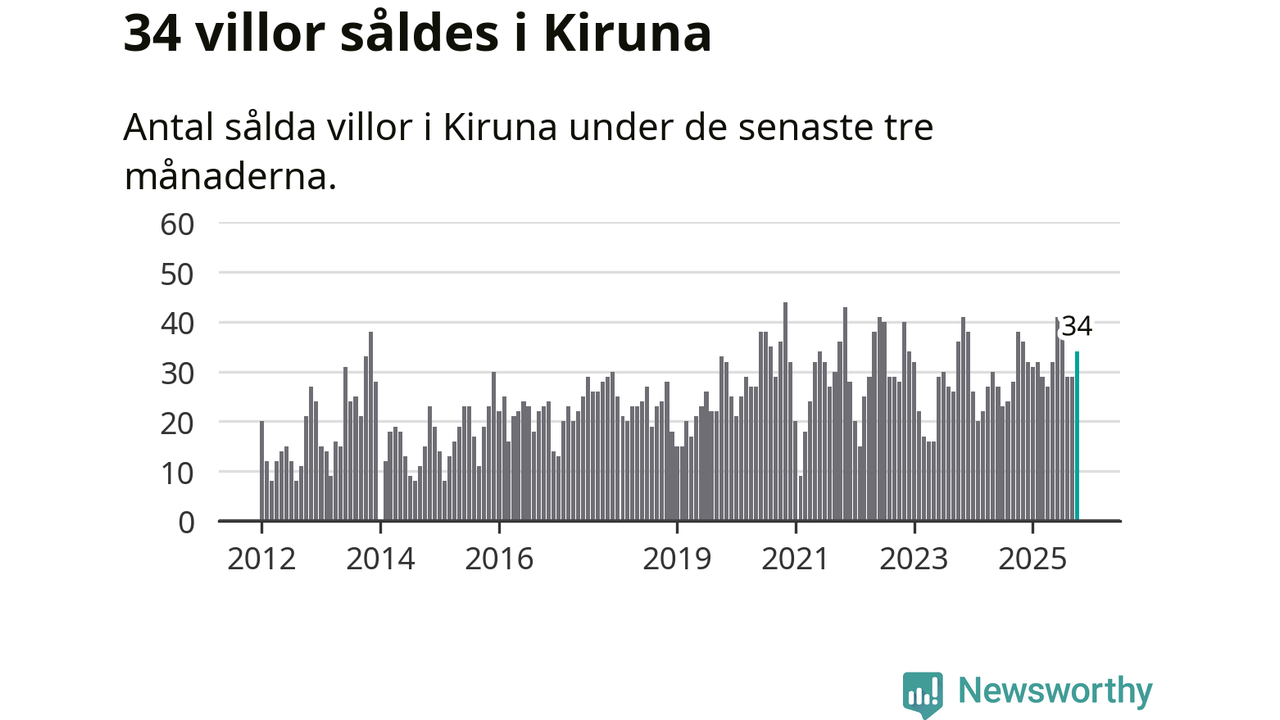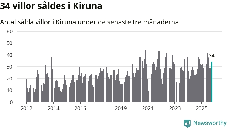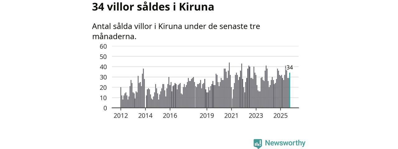Mellan augusti och oktober gjordes sammanlagt 34 affärer med villor i Kiruna kommun. Det kan jämföras med 38 vid motsvarande tid i fjol.
