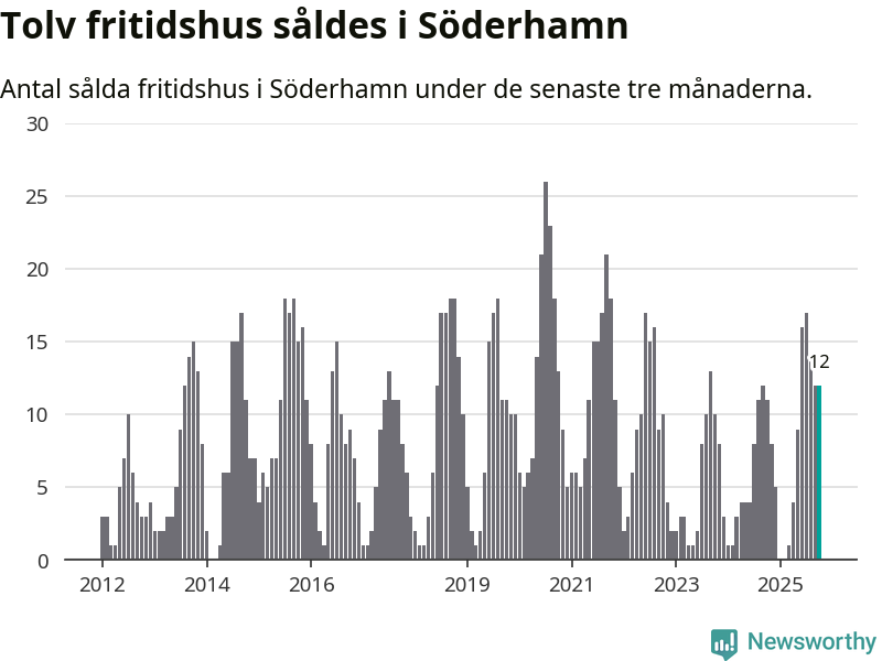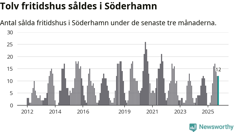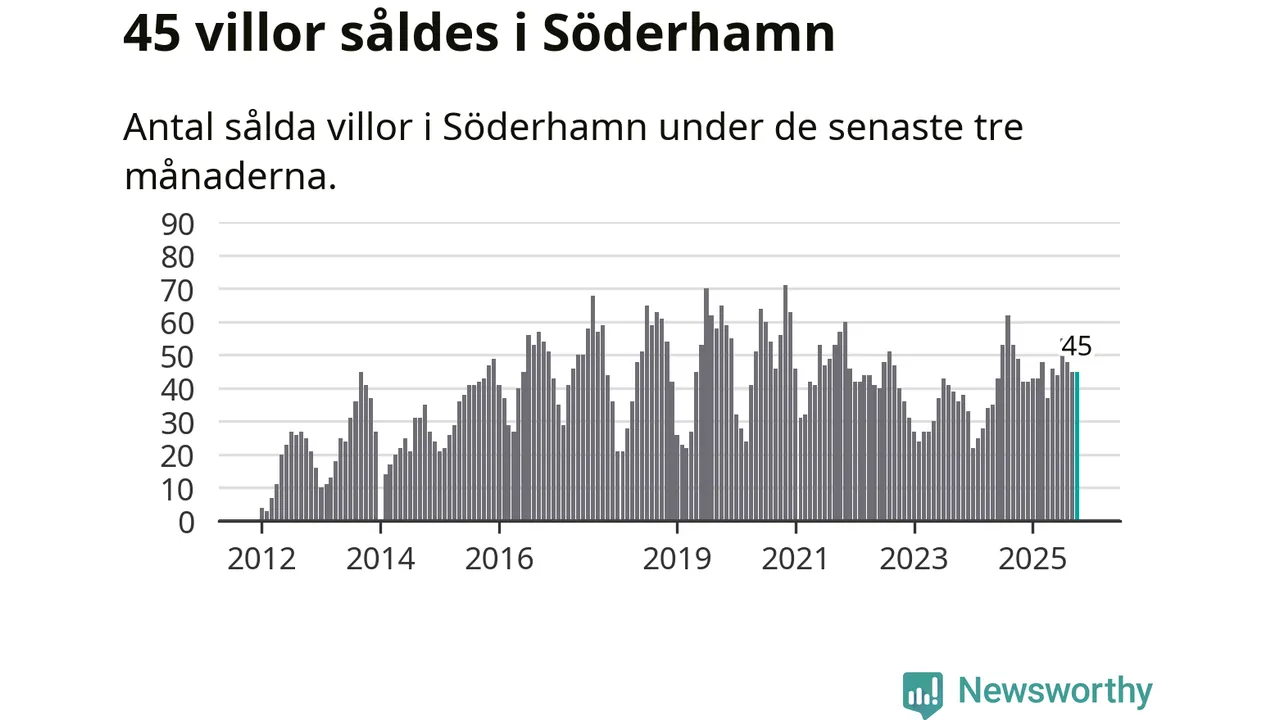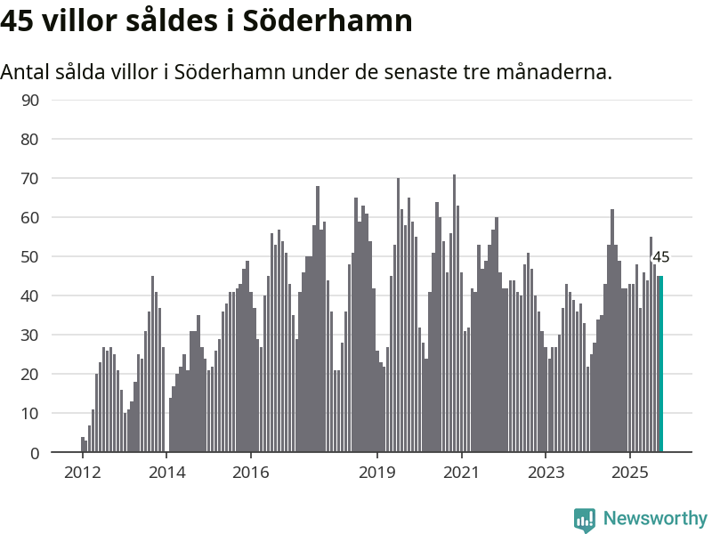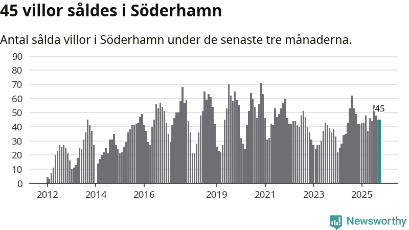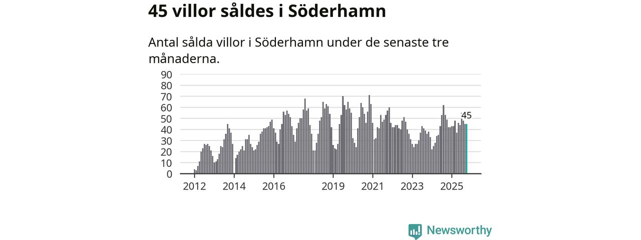 Mellan augusti och oktober såldes 45 villor i Söderhamns kommun. Det är relativt få sett till aktiviteten på bostadsmarknaden i kommunen under de senaste tolv månaderna, samt det historiska snittet för den här tiden på året.