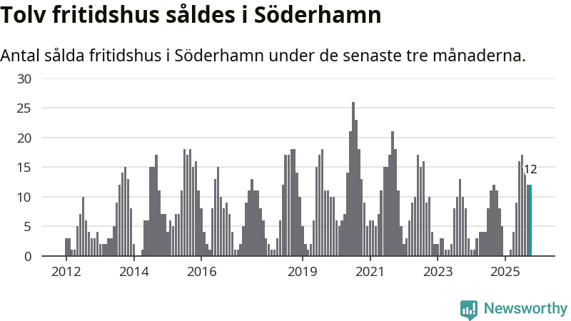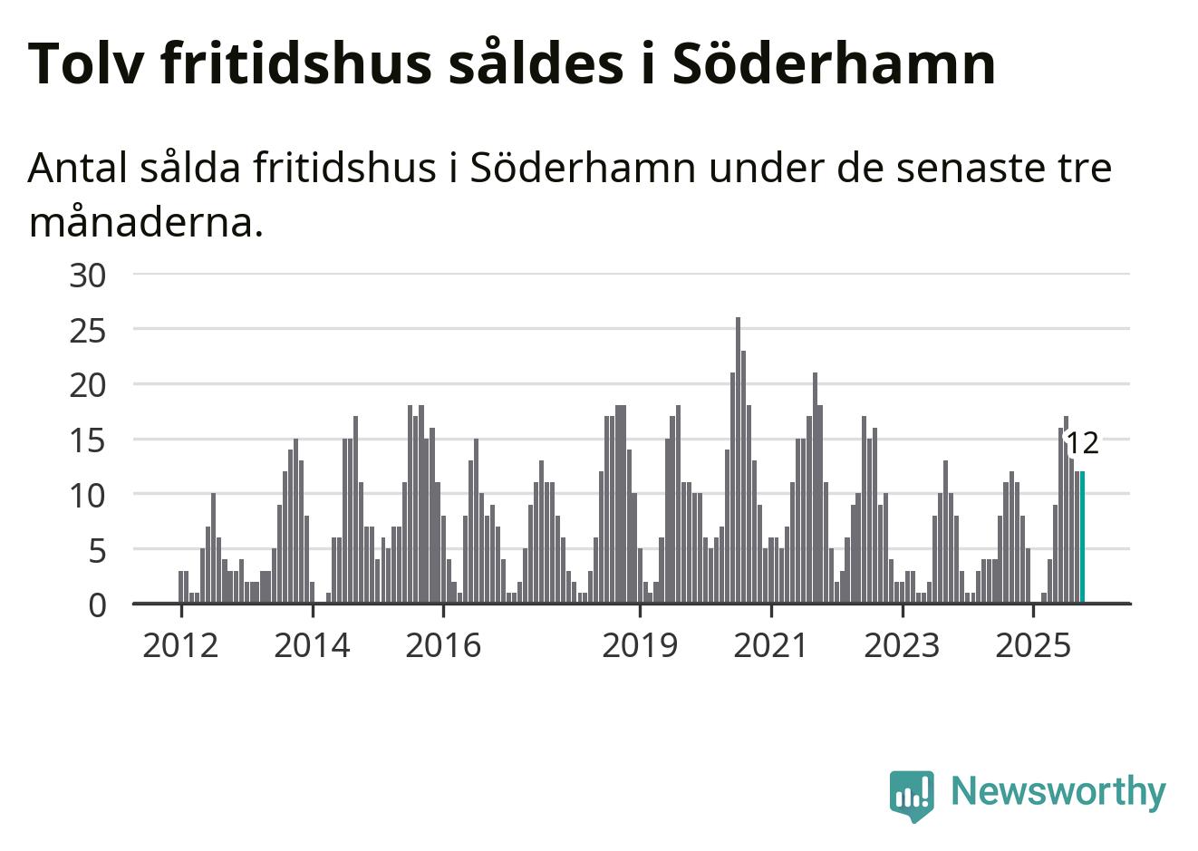 Sammanlagt såldes tolv fritidshus i Söderhamns kommun mellan augusti och oktober till ett genomsnittligt pris på 2,1 miljoner kronor. I fjol gjordes elva affärer vid den här tiden på året.