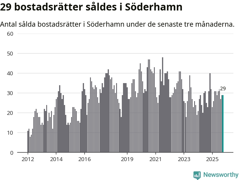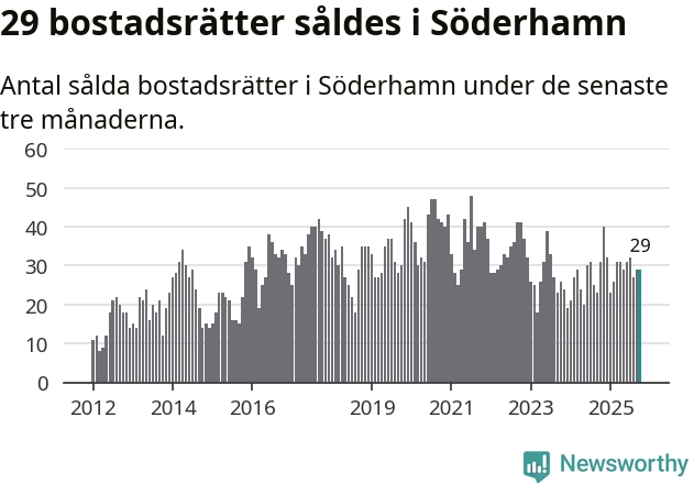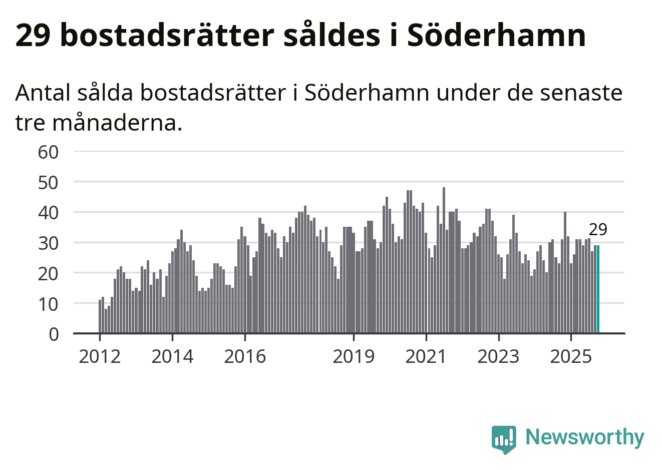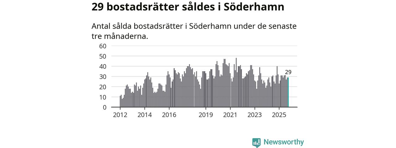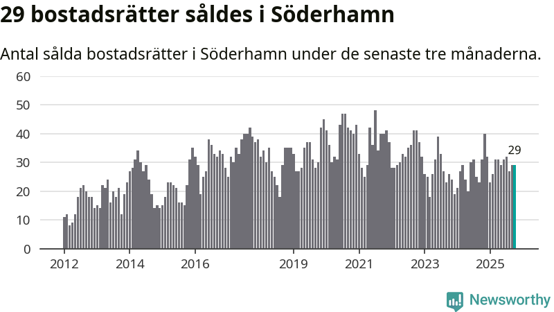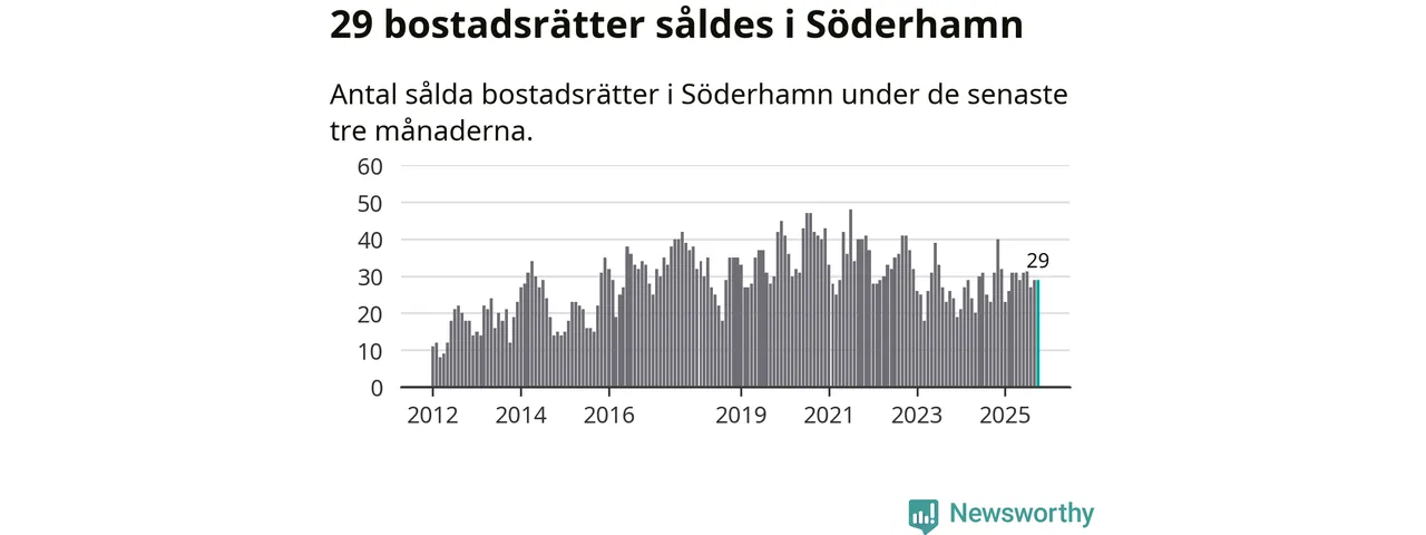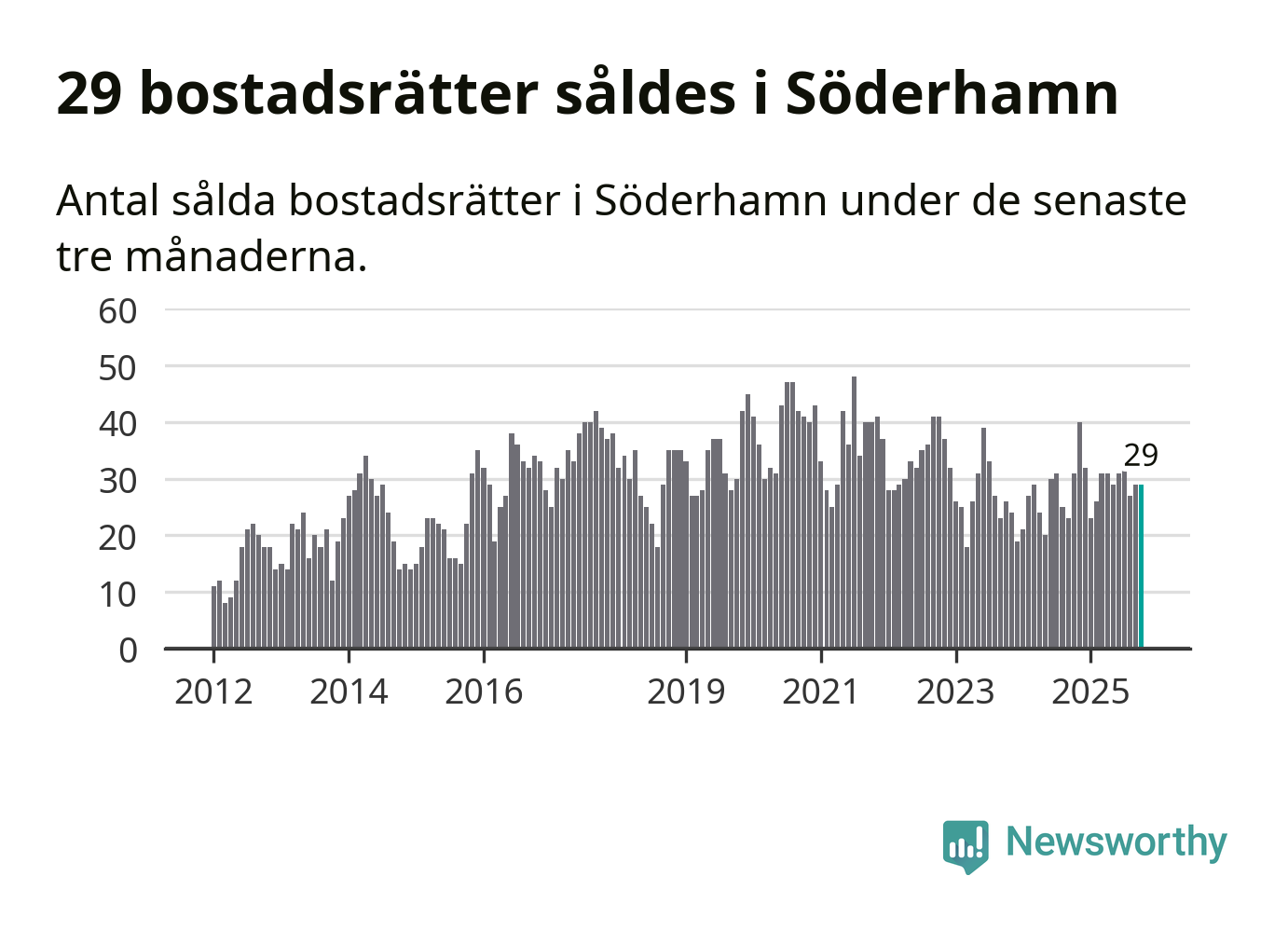 Sammanlagt såldes 29 bostadsrätter i Söderhamns kommun mellan augusti och oktober till ett genomsnittligt pris på 0,7 miljoner kronor. I fjol gjordes 31 affärer vid den här tiden på året.