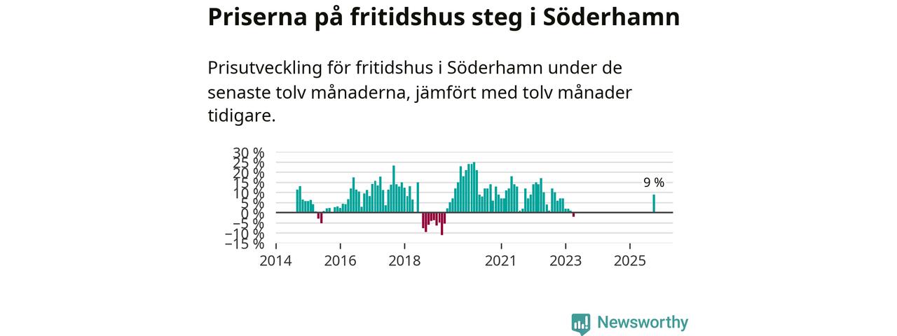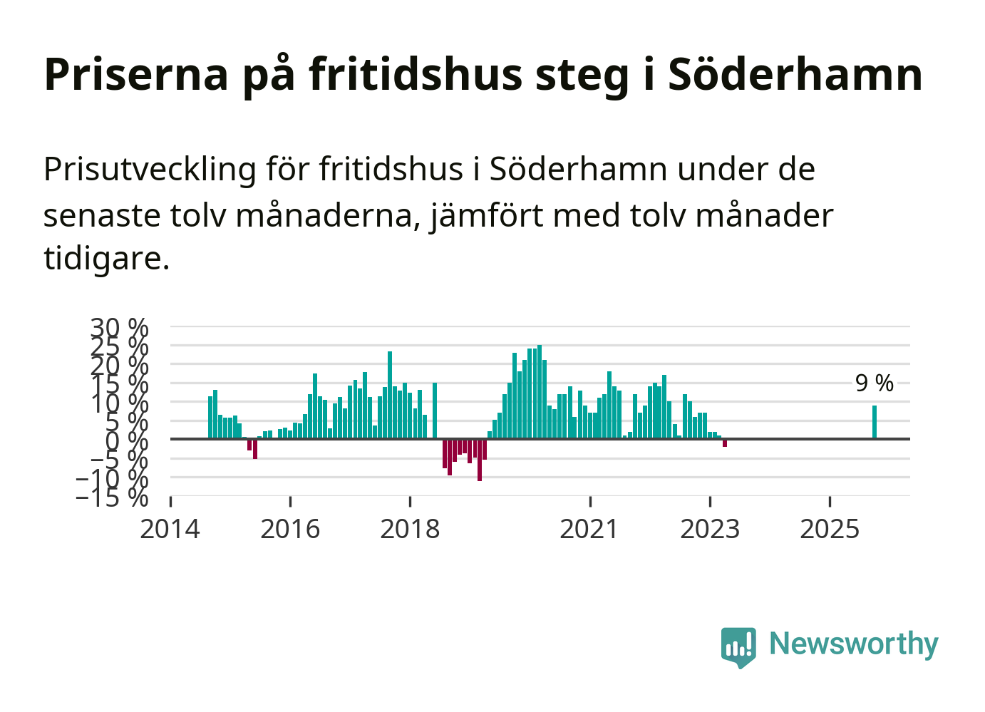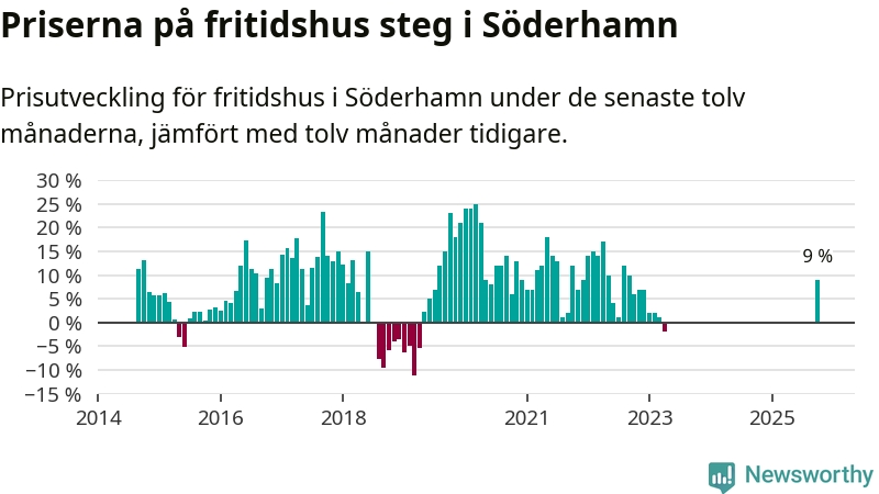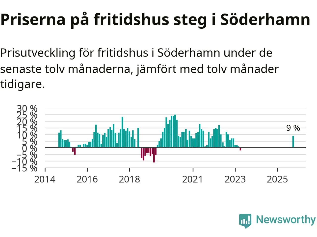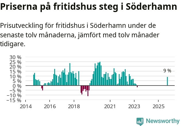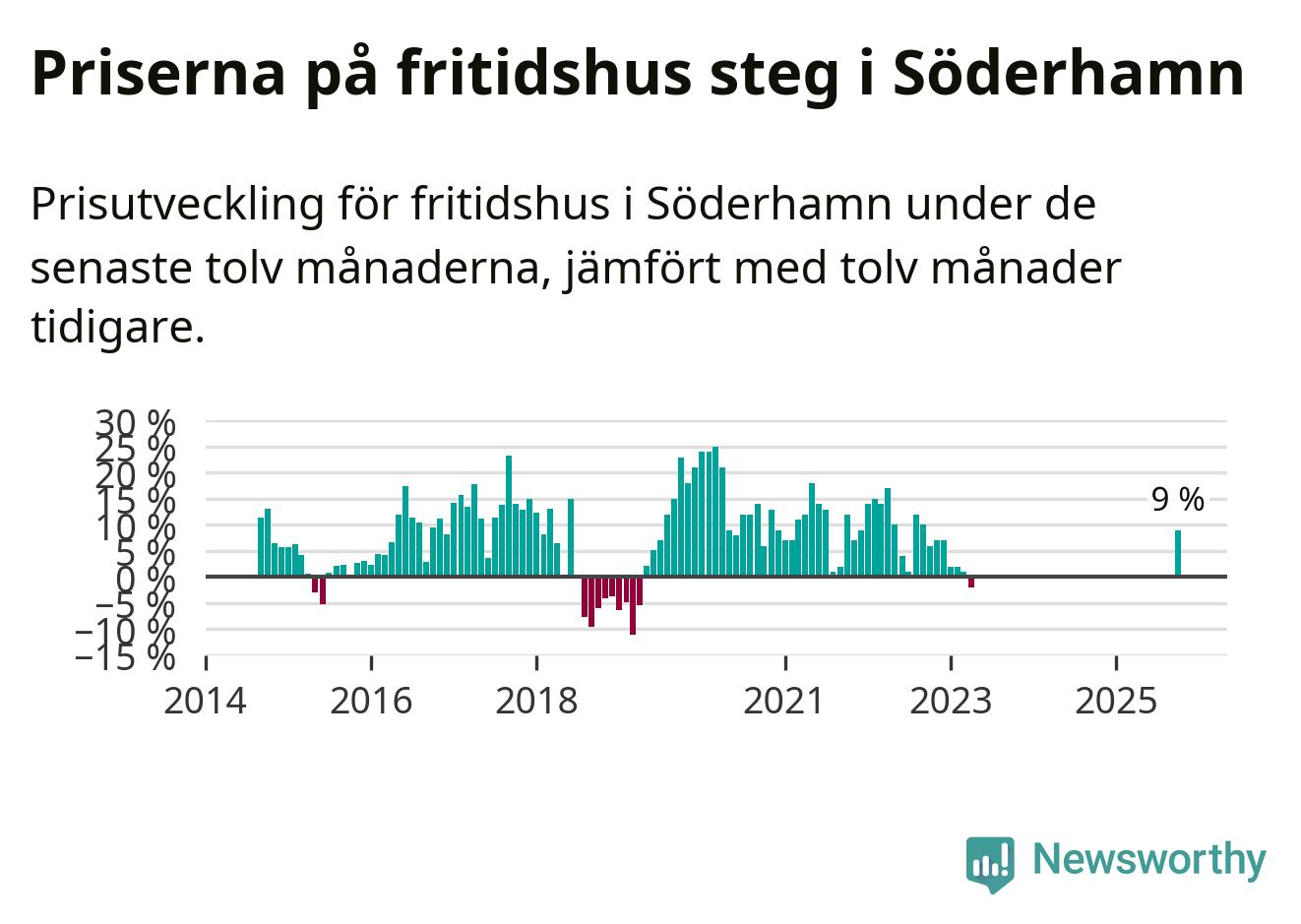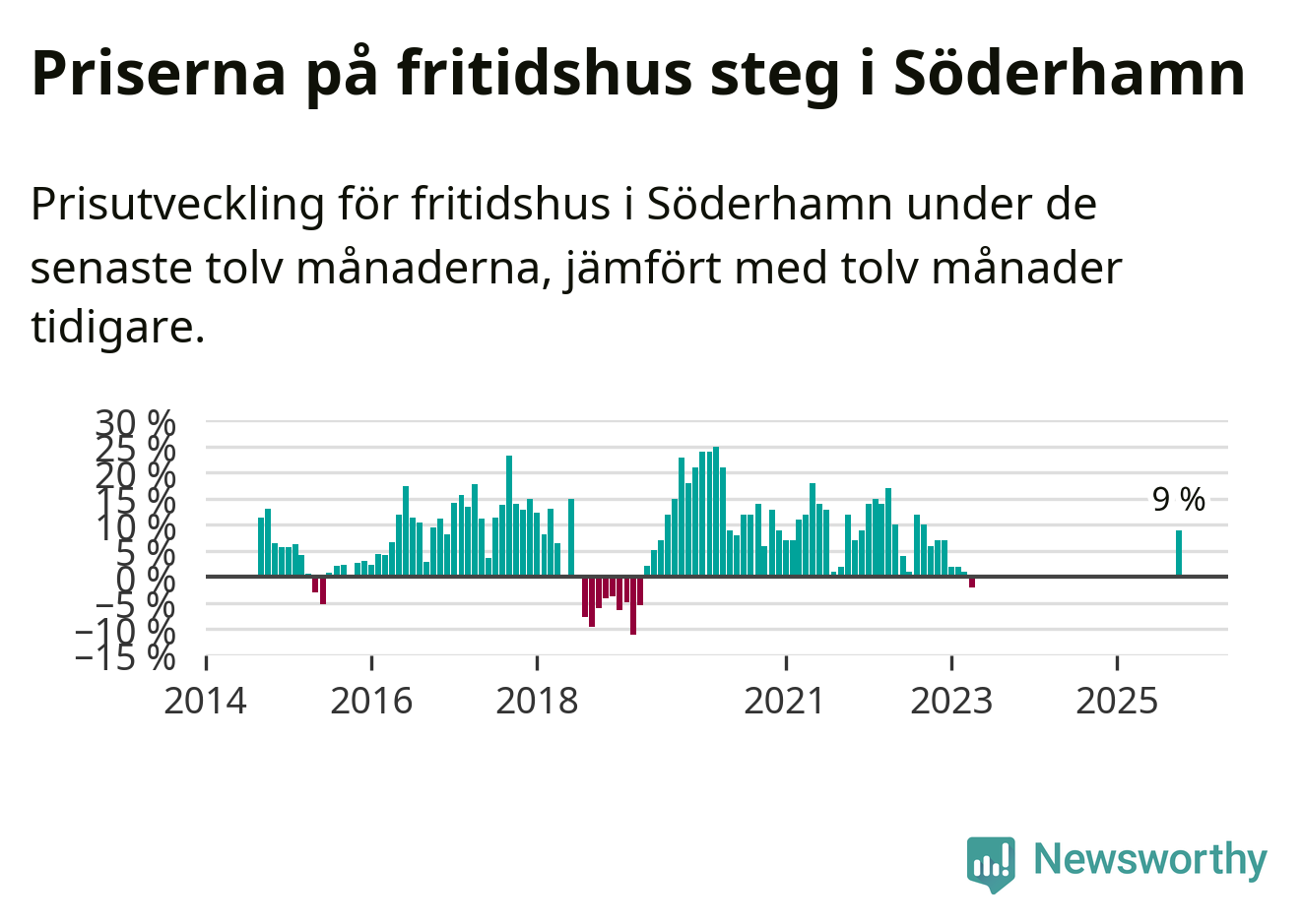 Priserna på fritidshus har gått upp i Söderhamns kommun. Medelpriset på försäljningarna under de senaste tolv månaderna visar på en uppgång med 9 procent.