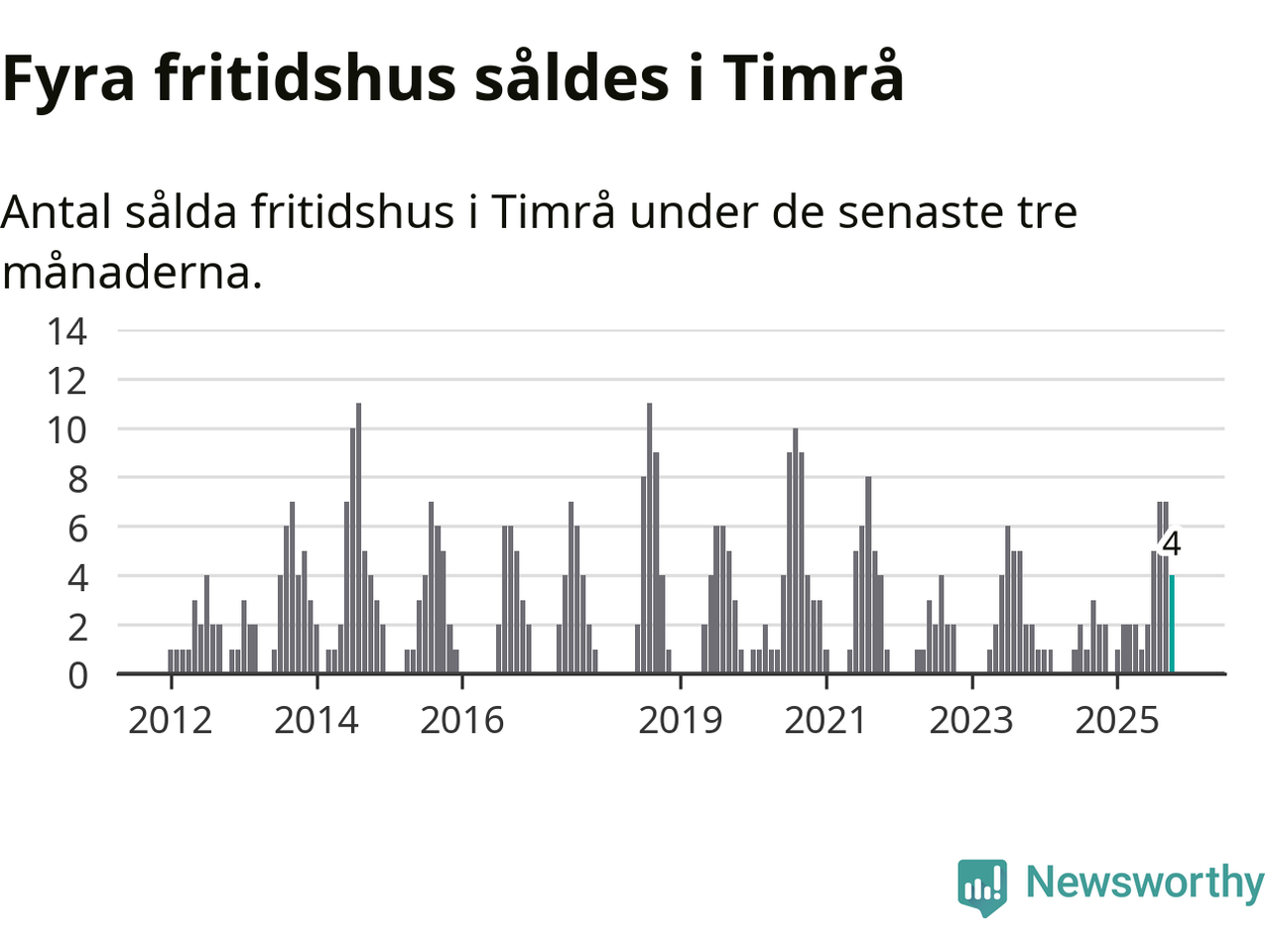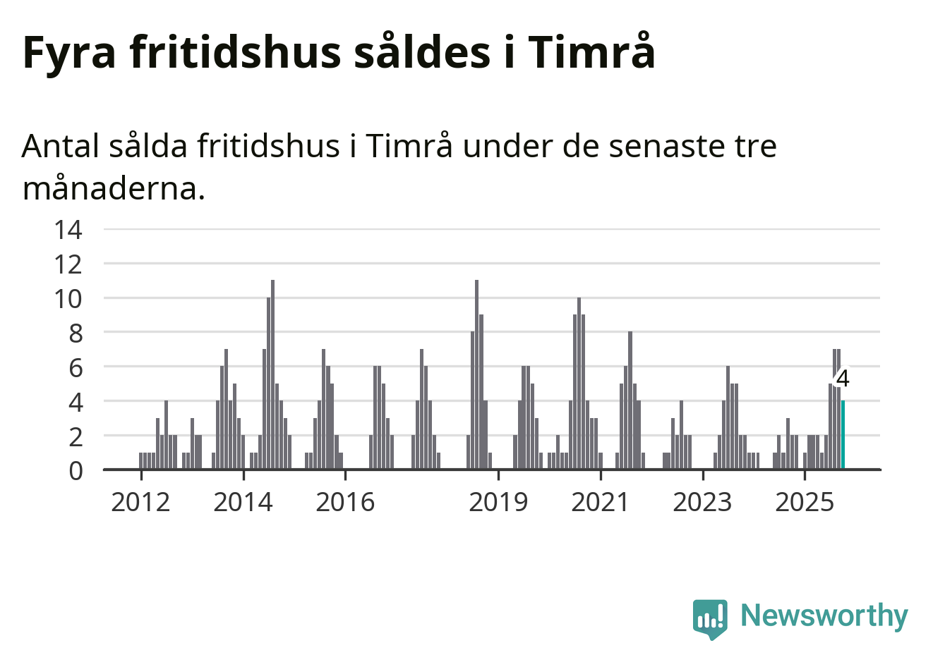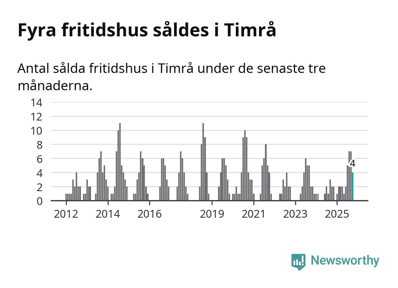 Mellan augusti och oktober gjordes sammanlagt fyra affärer med fritidshus i Timrå kommun. Det kan jämföras med två vid motsvarande tid i fjol.