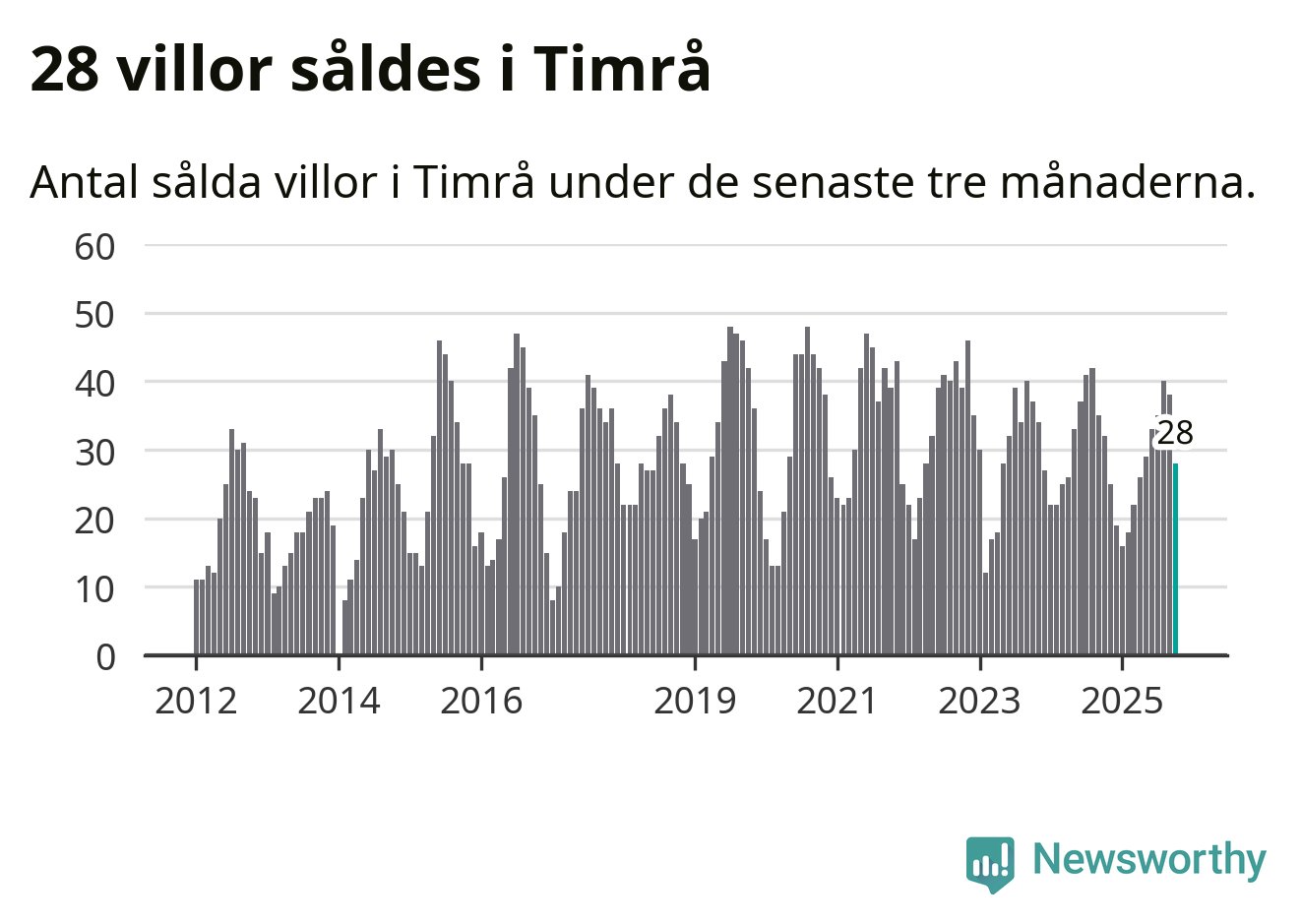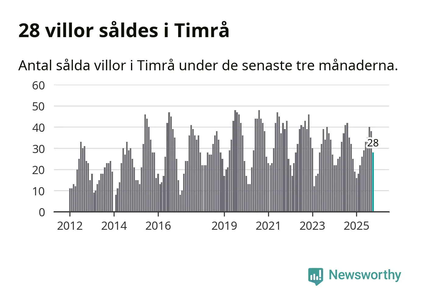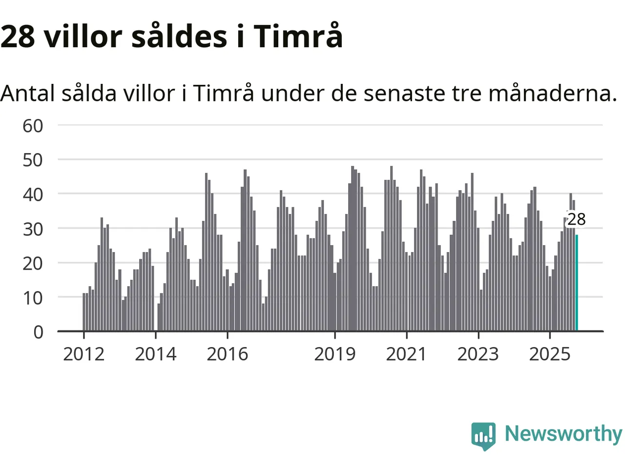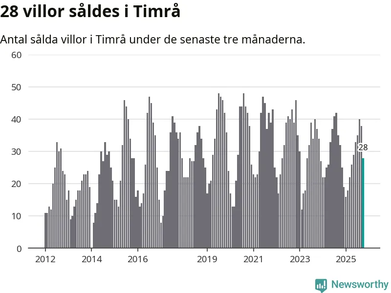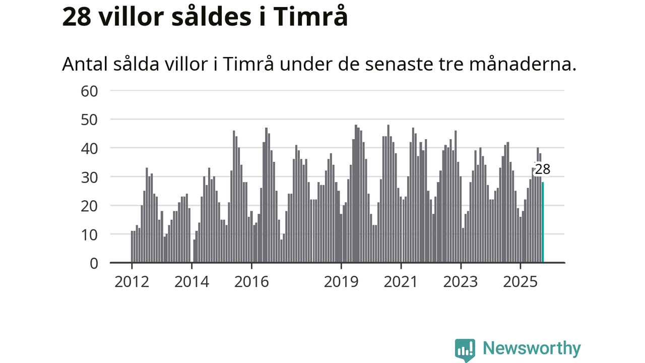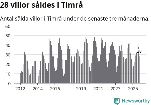 Mellan augusti och oktober gjordes sammanlagt 28 affärer med villor i Timrå kommun. Det kan jämföras med 32 vid motsvarande tid i fjol.