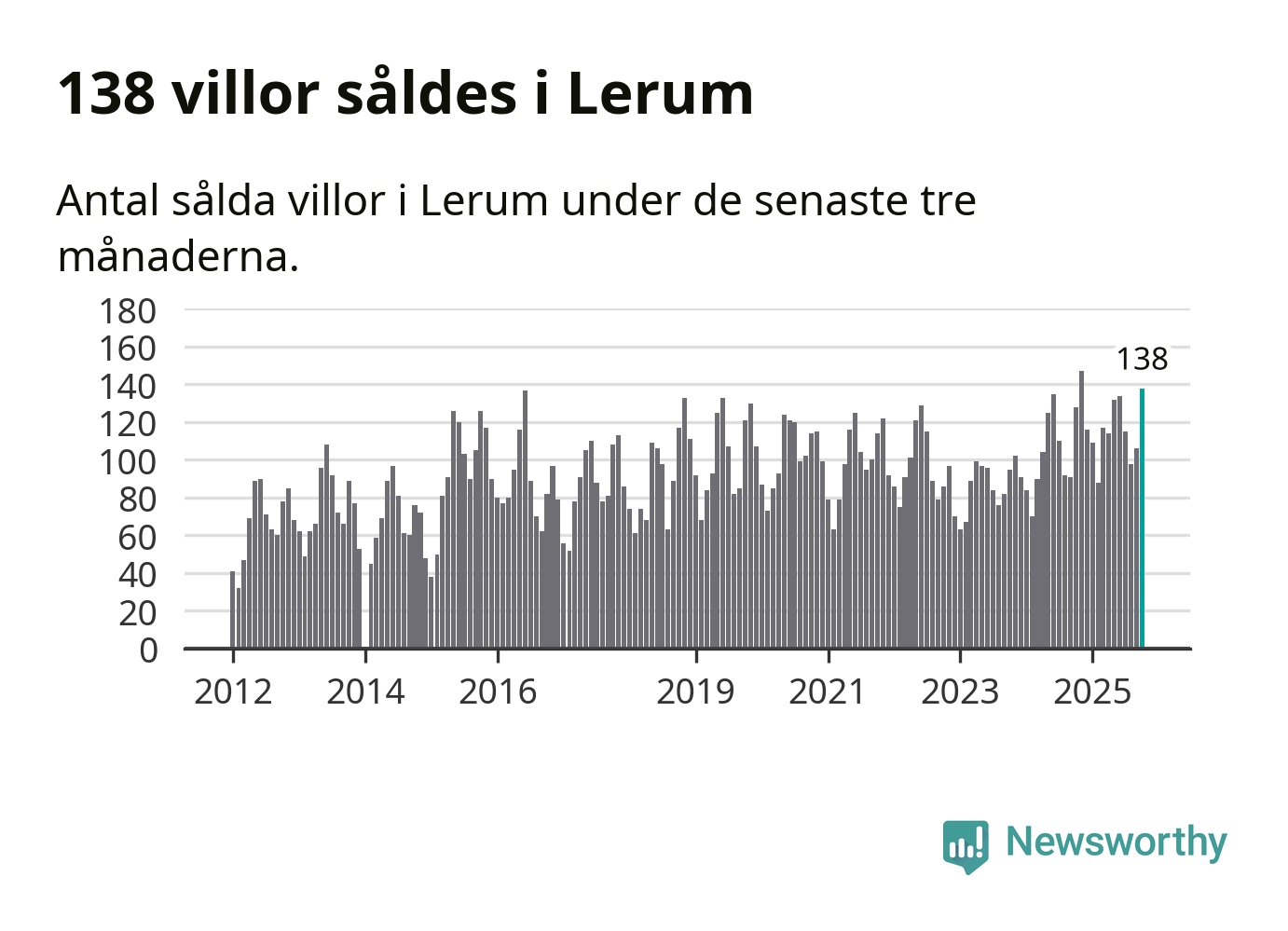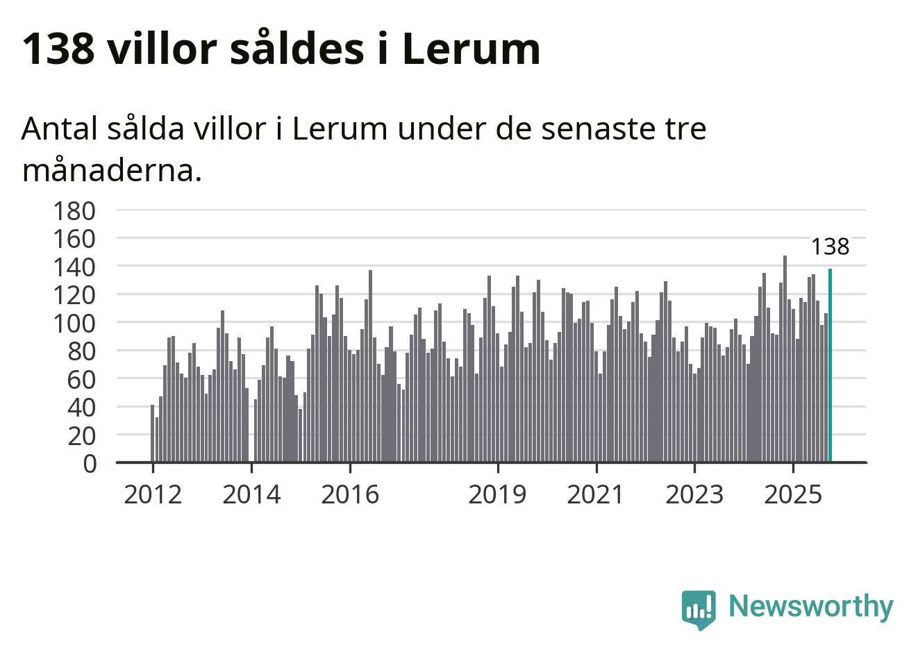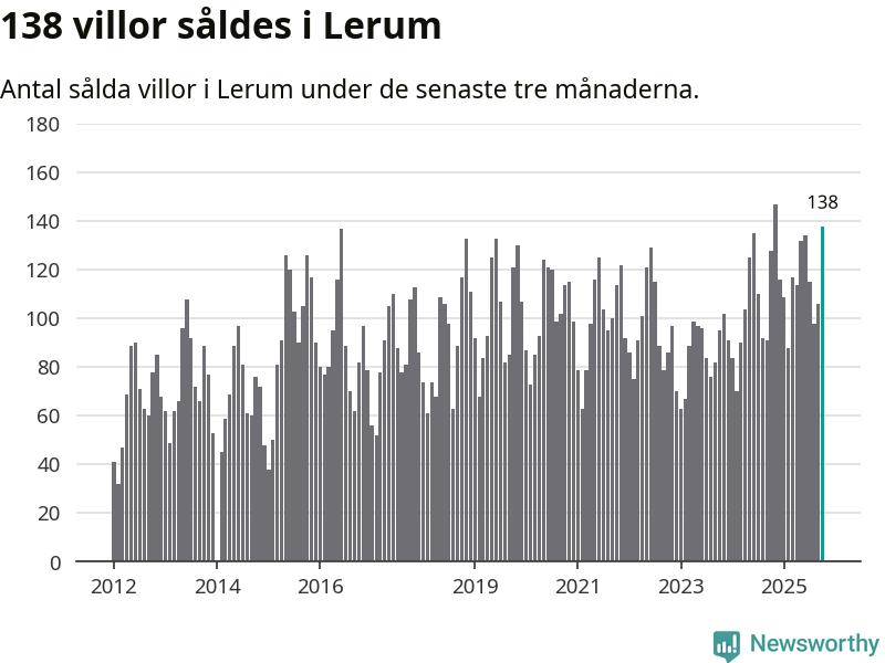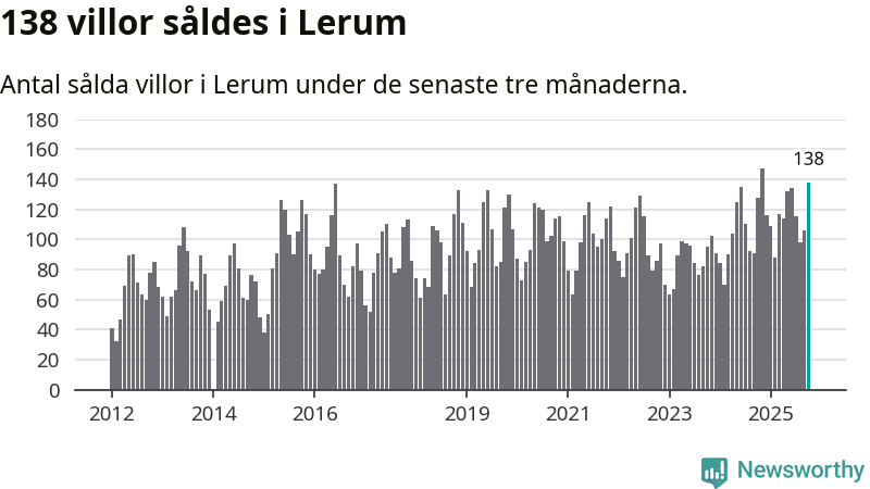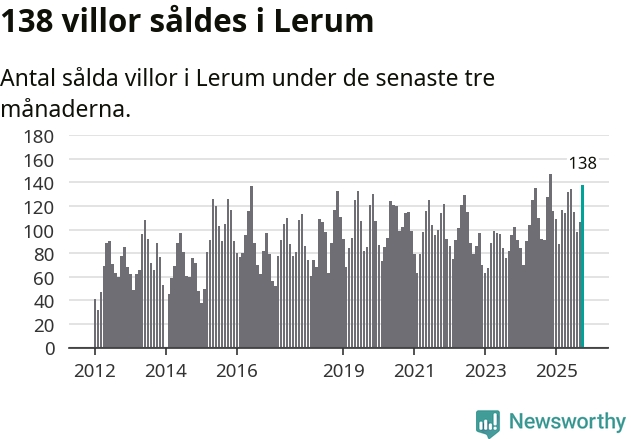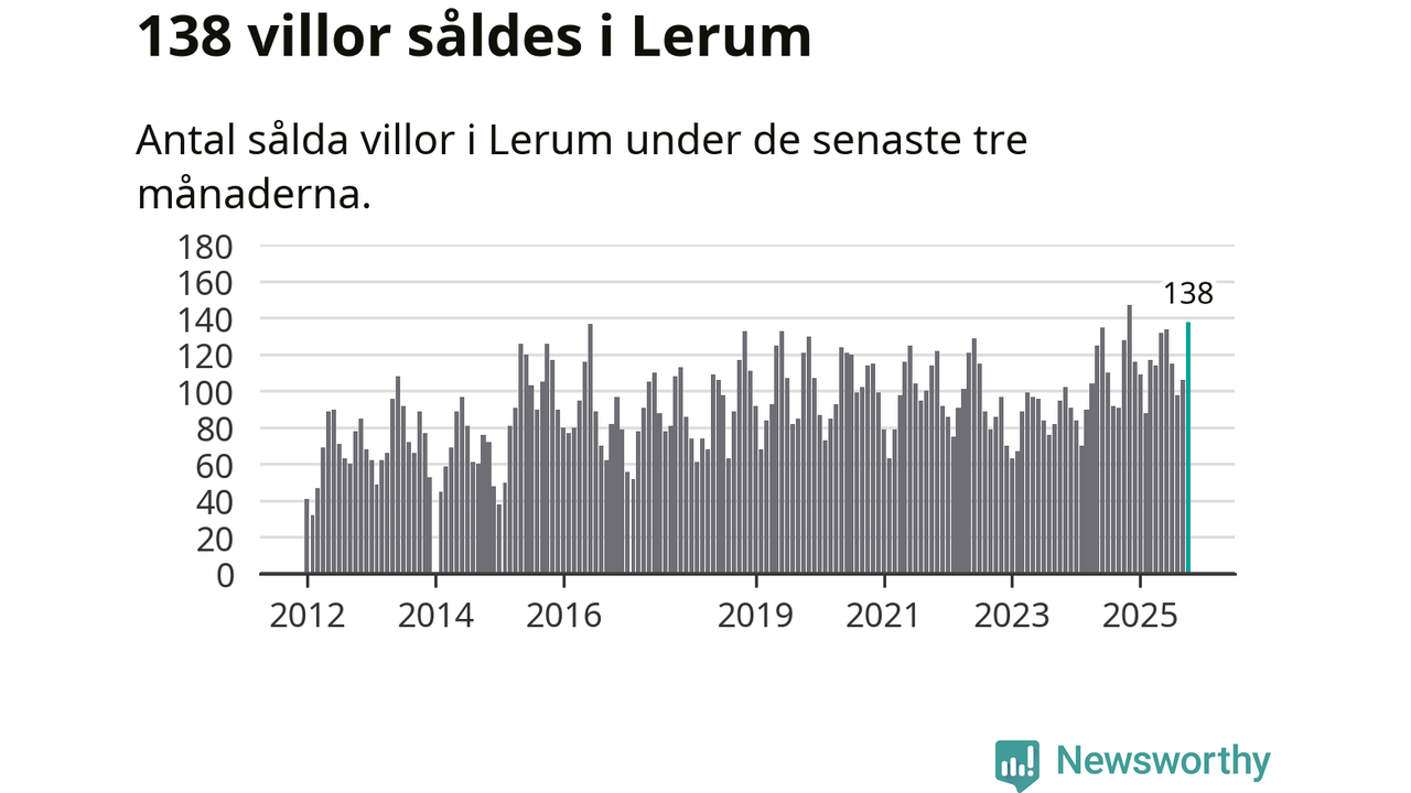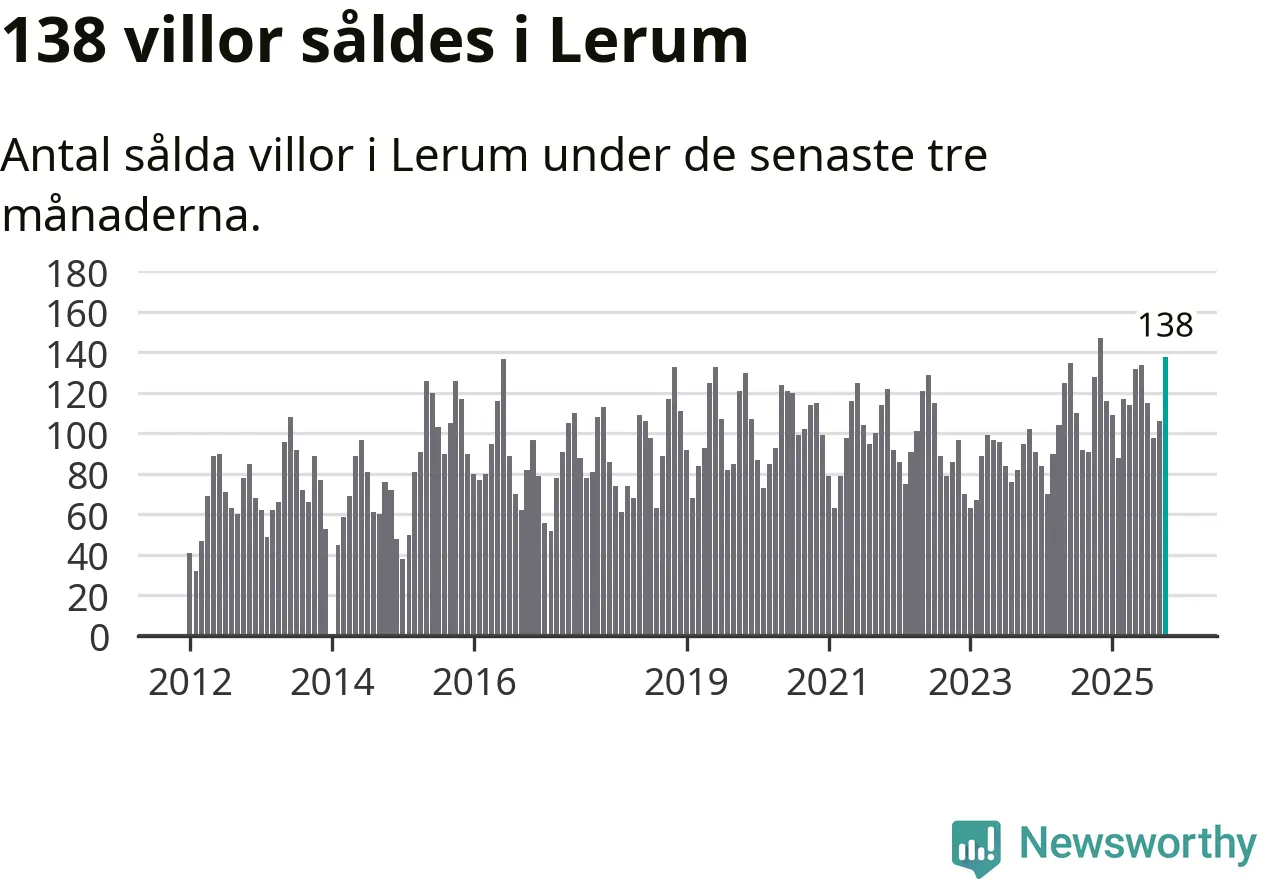 Sammanlagt såldes 138 villor i Lerums kommun mellan augusti och oktober till ett genomsnittligt pris på 4,6 miljoner kronor. I fjol gjordes 128 affärer vid den här tiden på året.
