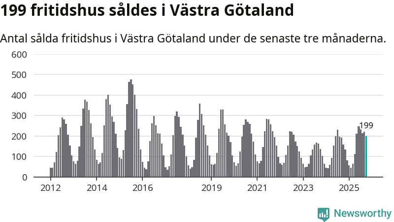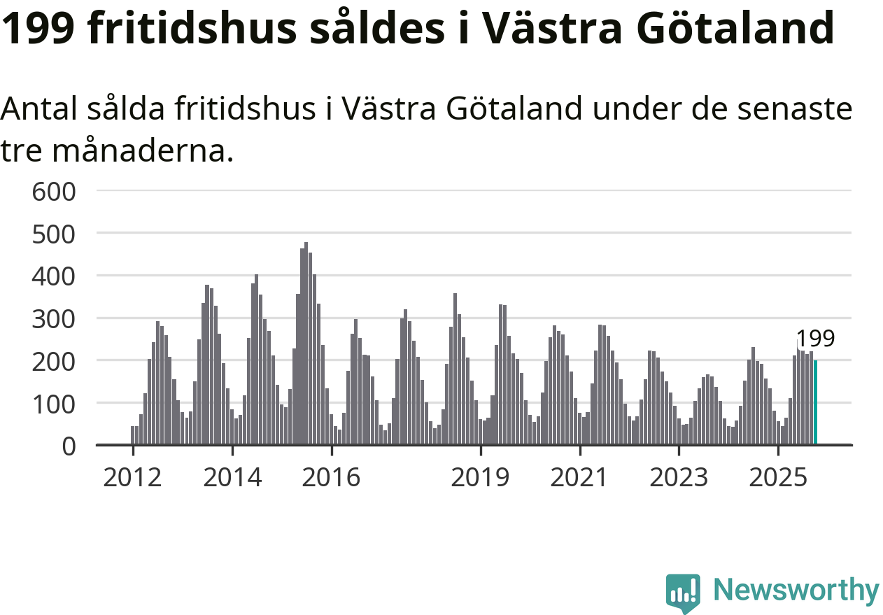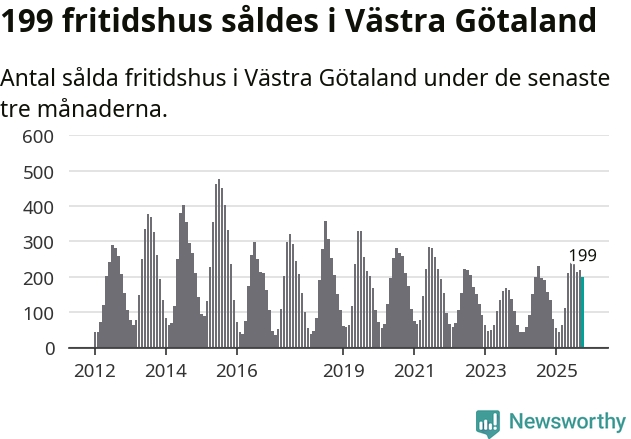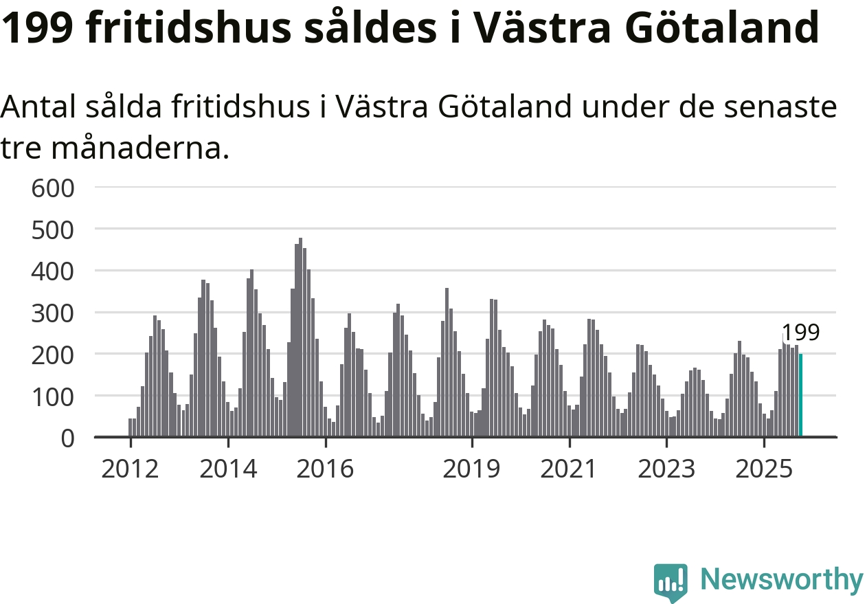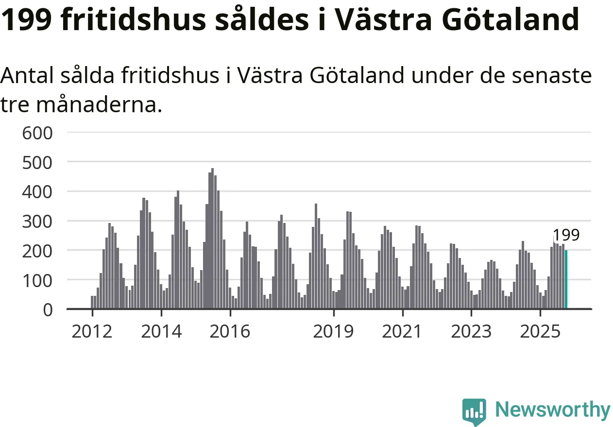 Sammanlagt såldes 199 fritidshus i Västra Götalands län mellan augusti och oktober till ett genomsnittligt pris på 3,0 miljoner kronor. I fjol gjordes 157 affärer vid den här tiden på året.