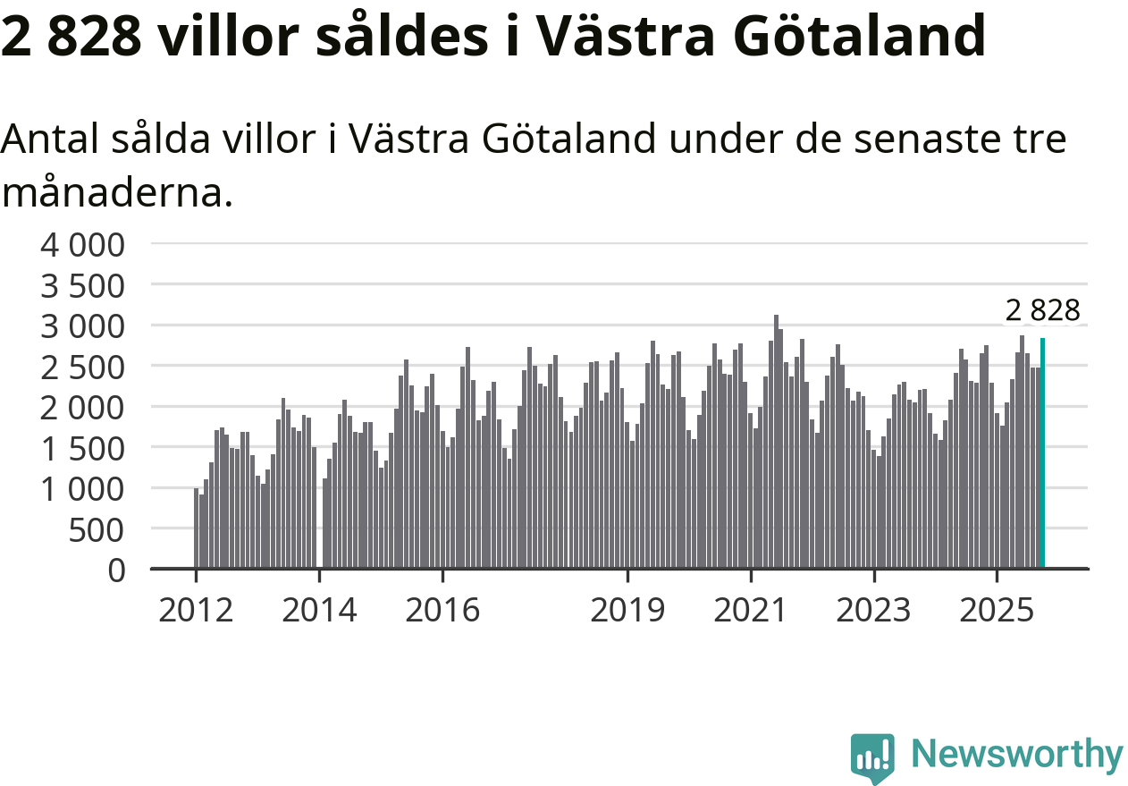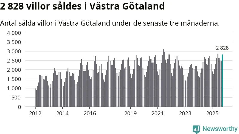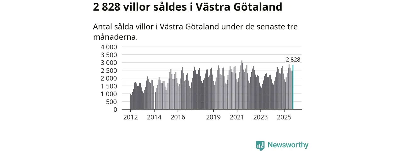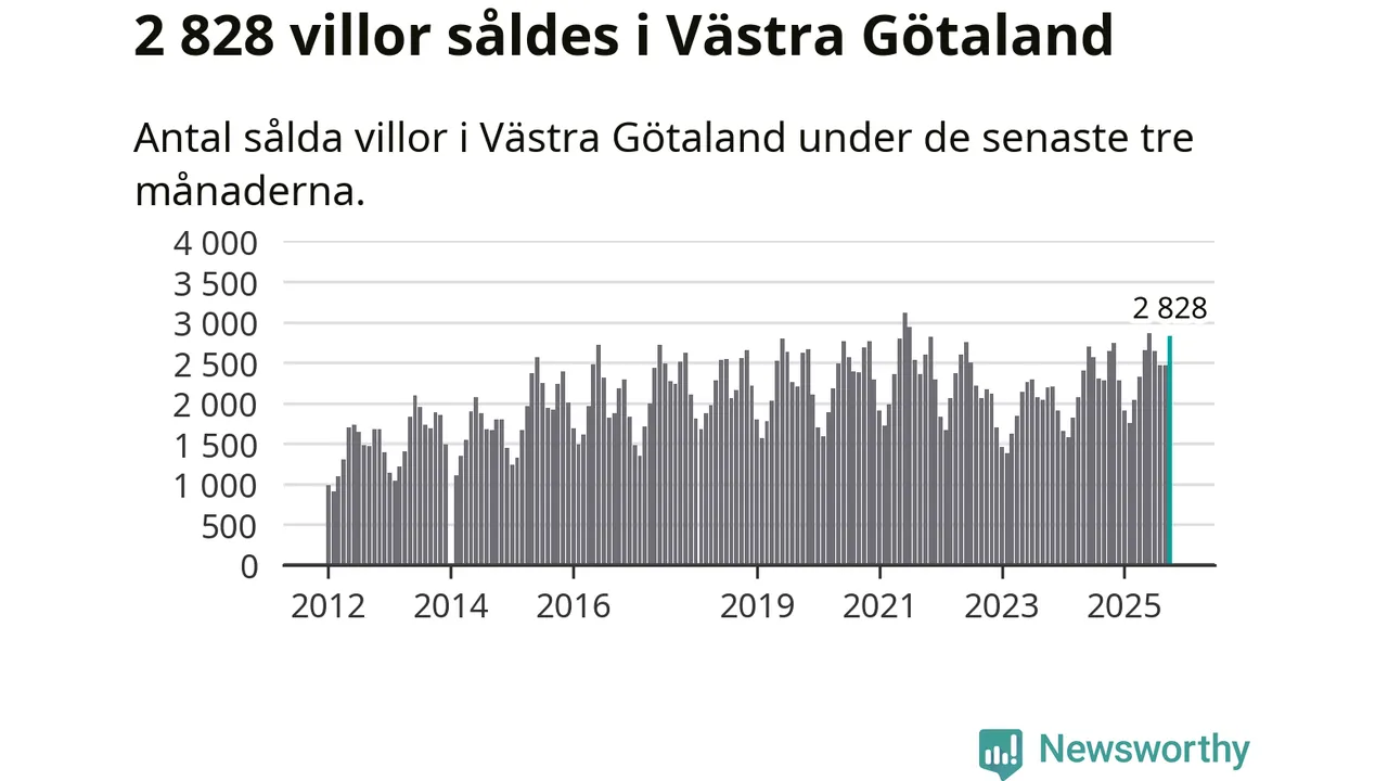 Sammanlagt såldes 2 828 villor i Västra Götalands län mellan augusti och oktober till ett genomsnittligt pris på 4,1 miljoner kronor. I fjol gjordes 2 641 affärer vid den här tiden på året.