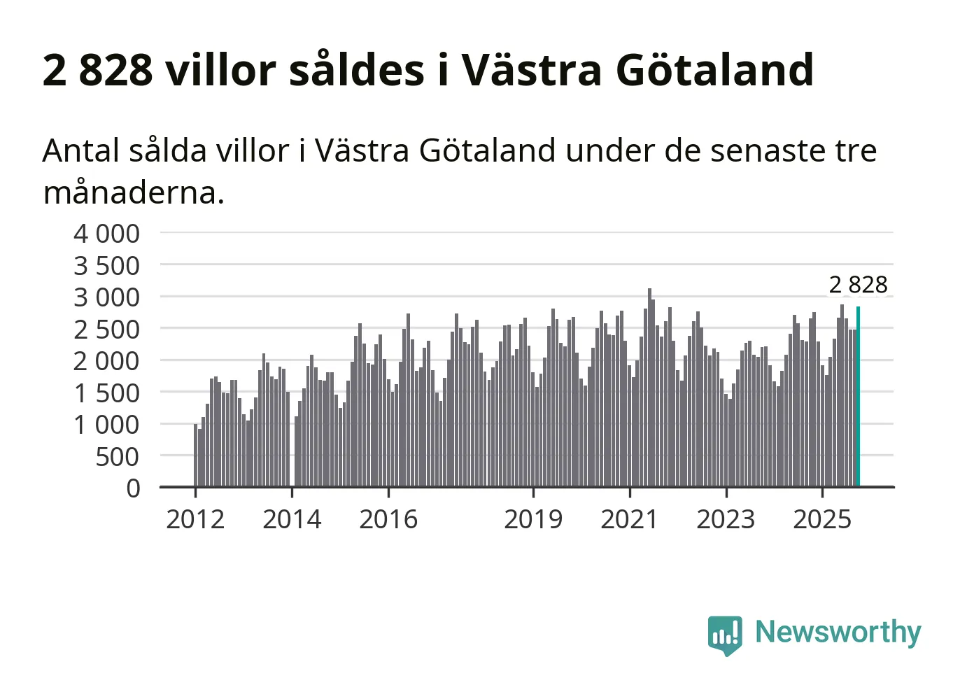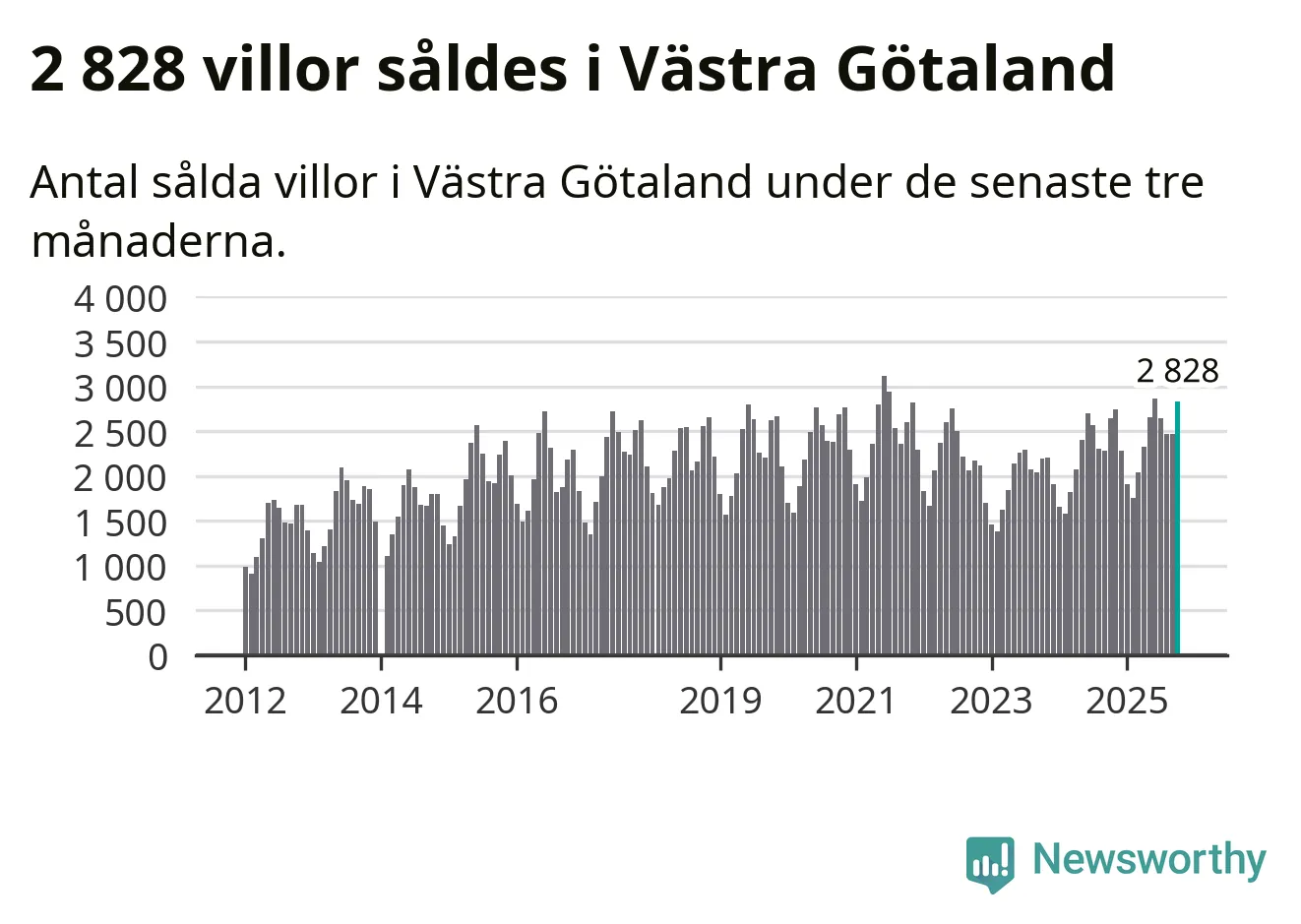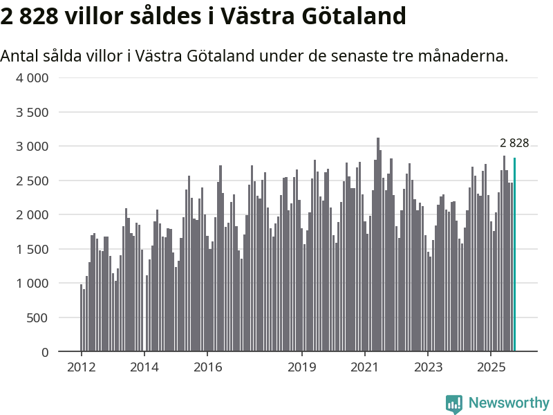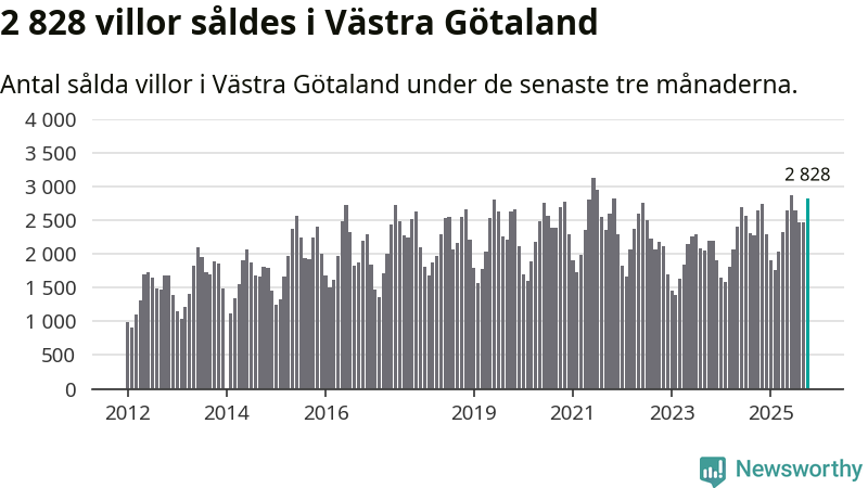 Sammanlagt såldes 2 828 villor i Västra Götalands län mellan augusti och oktober till ett genomsnittligt pris på 4,1 miljoner kronor. I fjol gjordes 2 641 affärer vid den här tiden på året.