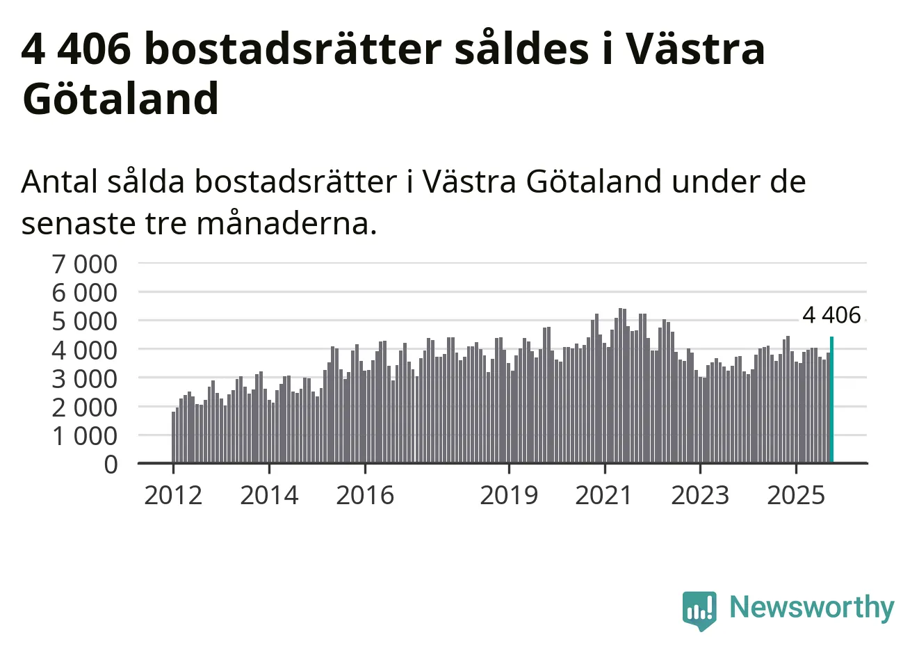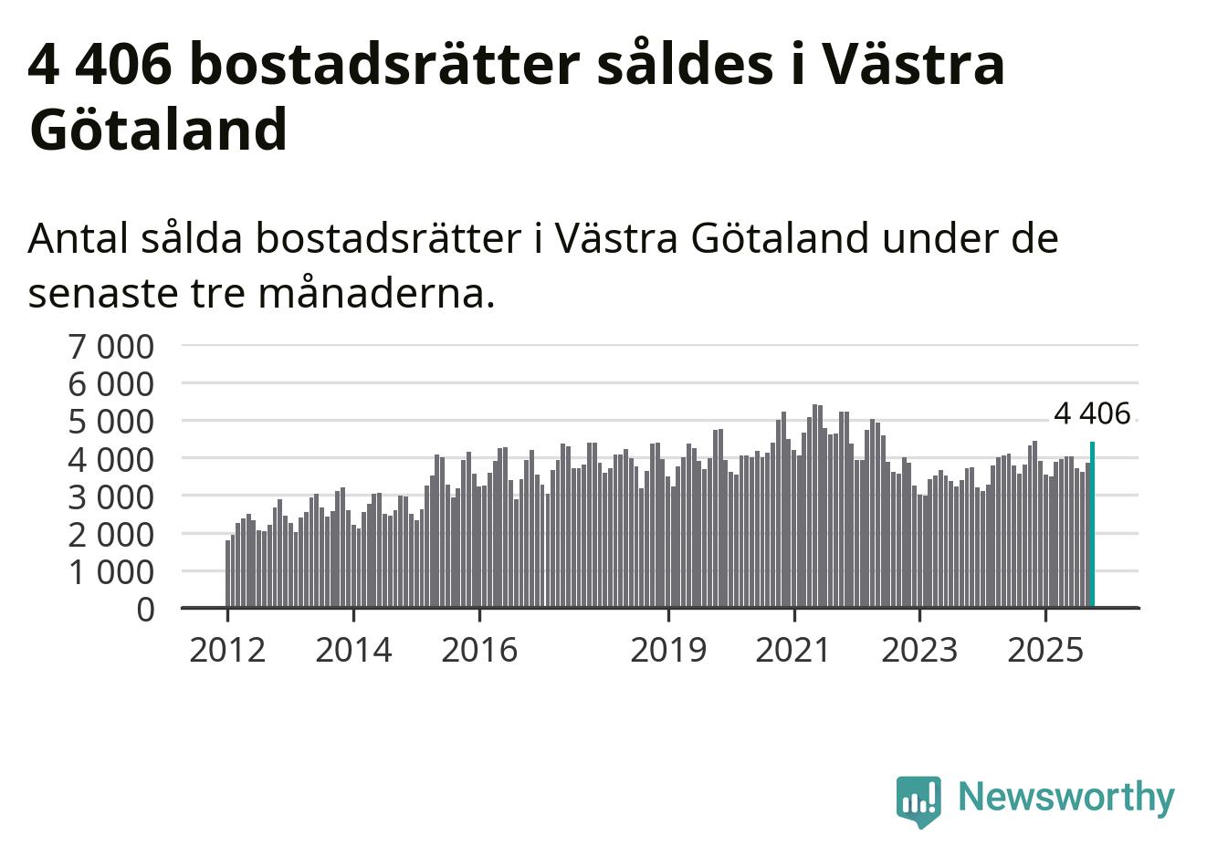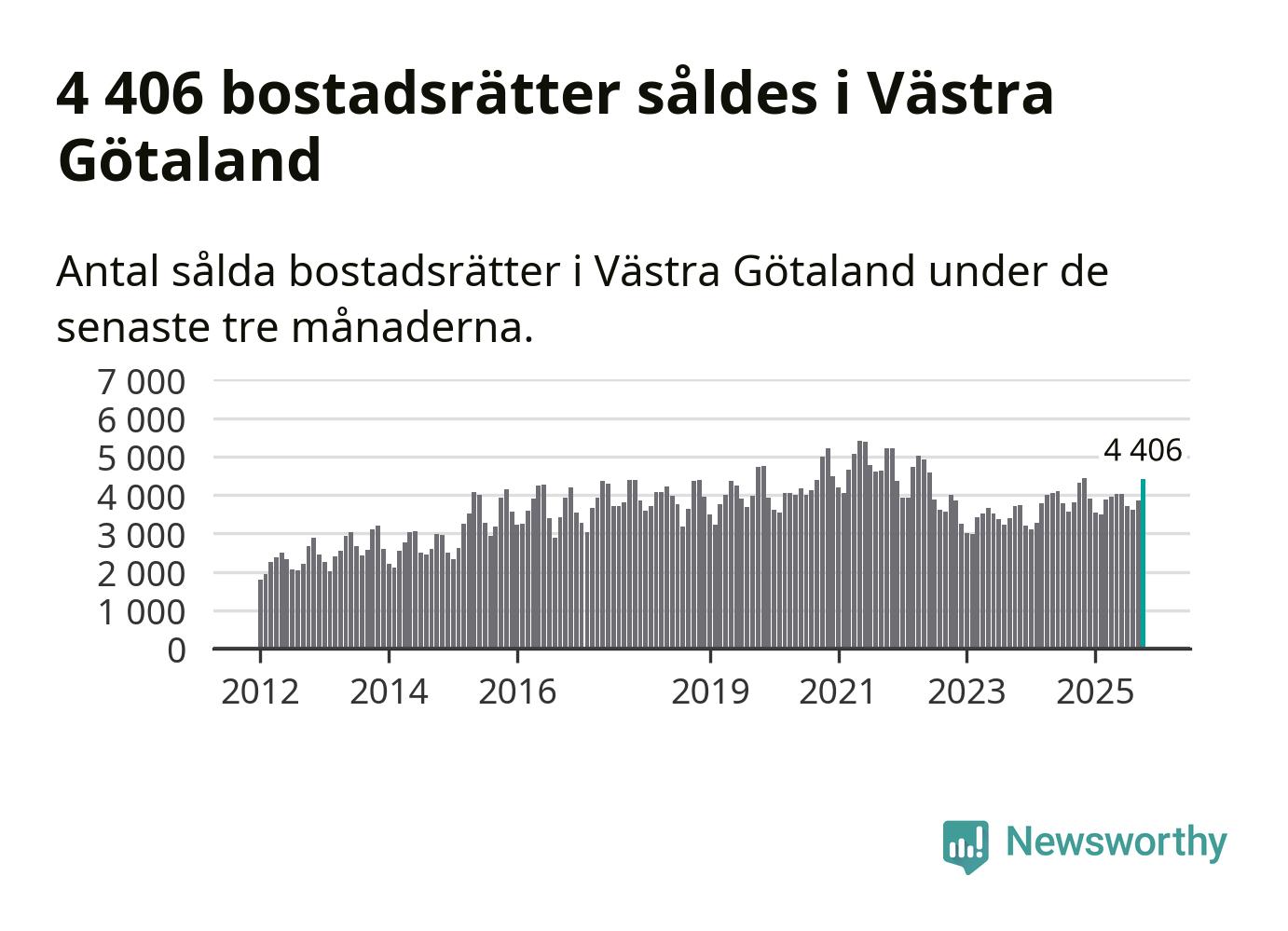 Sammanlagt såldes 4 406 bostadsrätter i Västra Götalands län mellan augusti och oktober till ett genomsnittligt pris på 2,5 miljoner kronor. I fjol gjordes 4 321 affärer vid den här tiden på året.