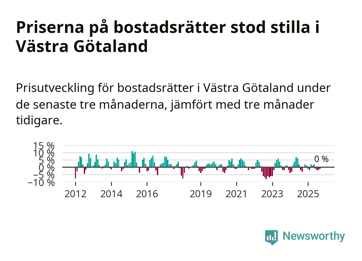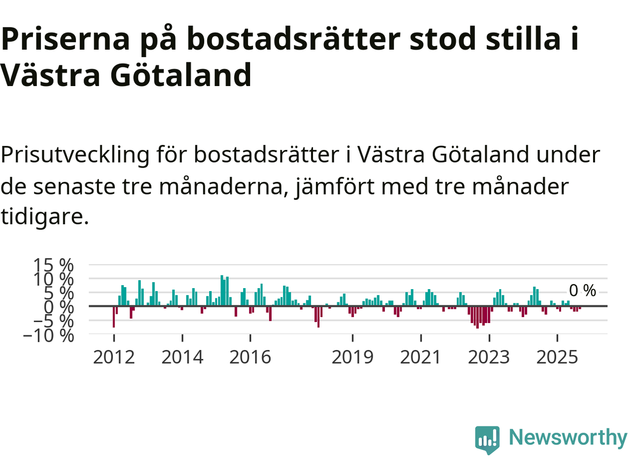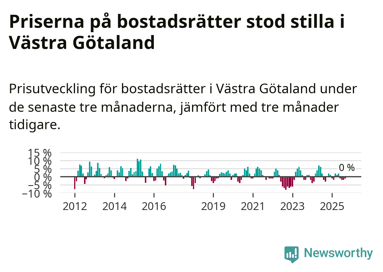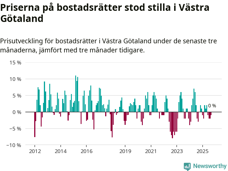 Priserna på bostadsrätter står i stort sett stilla i Västra Götalands län. Medelpriset på de på försäljningarna under de senaste tre månaderna låg på samma nivå som för tre månader sedan.
