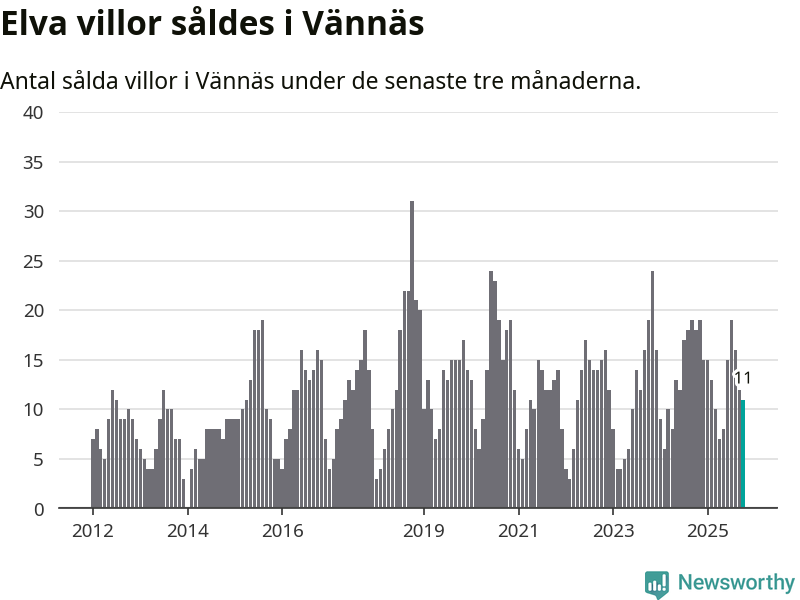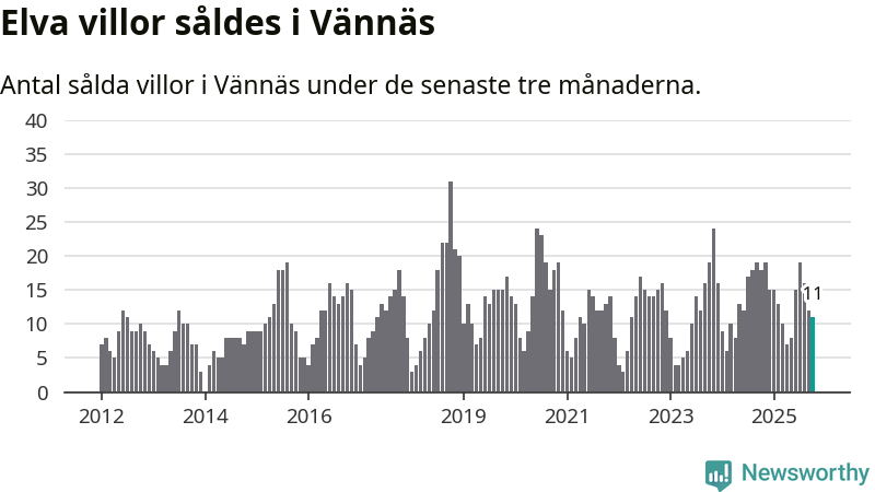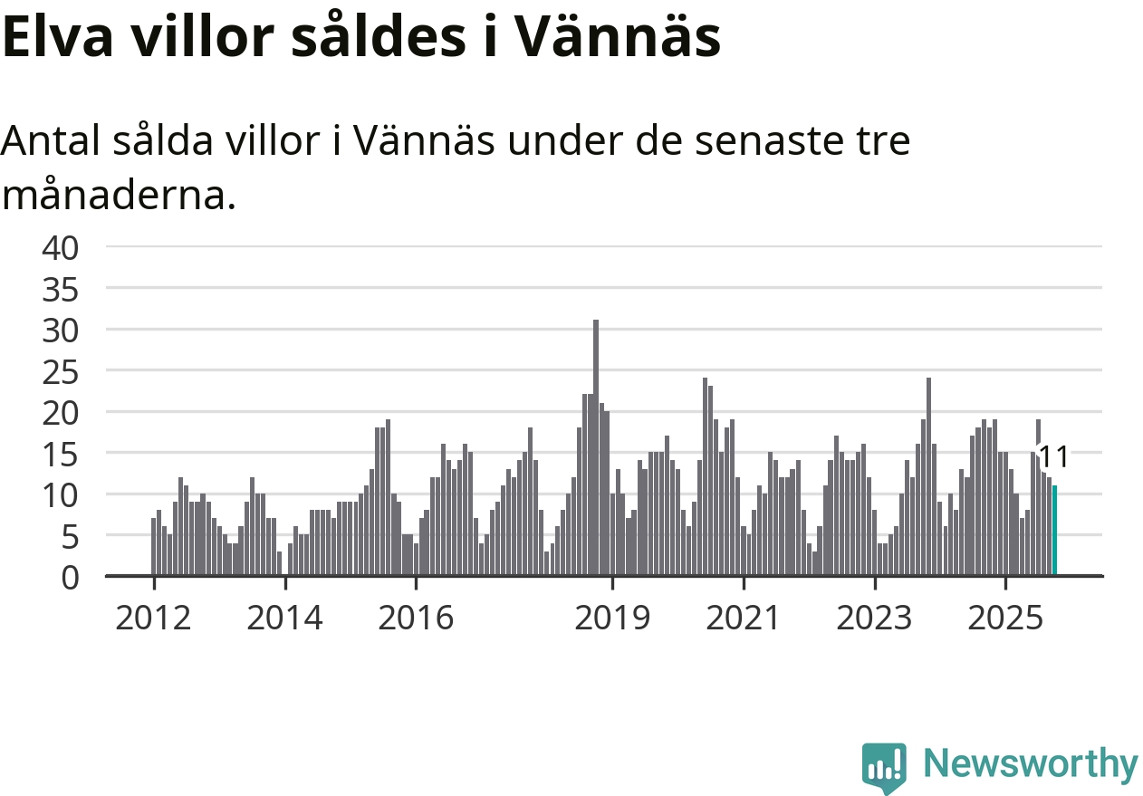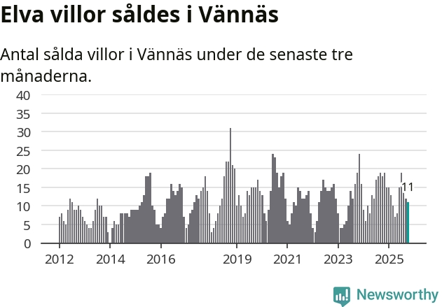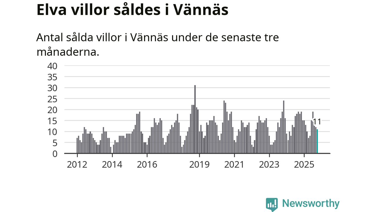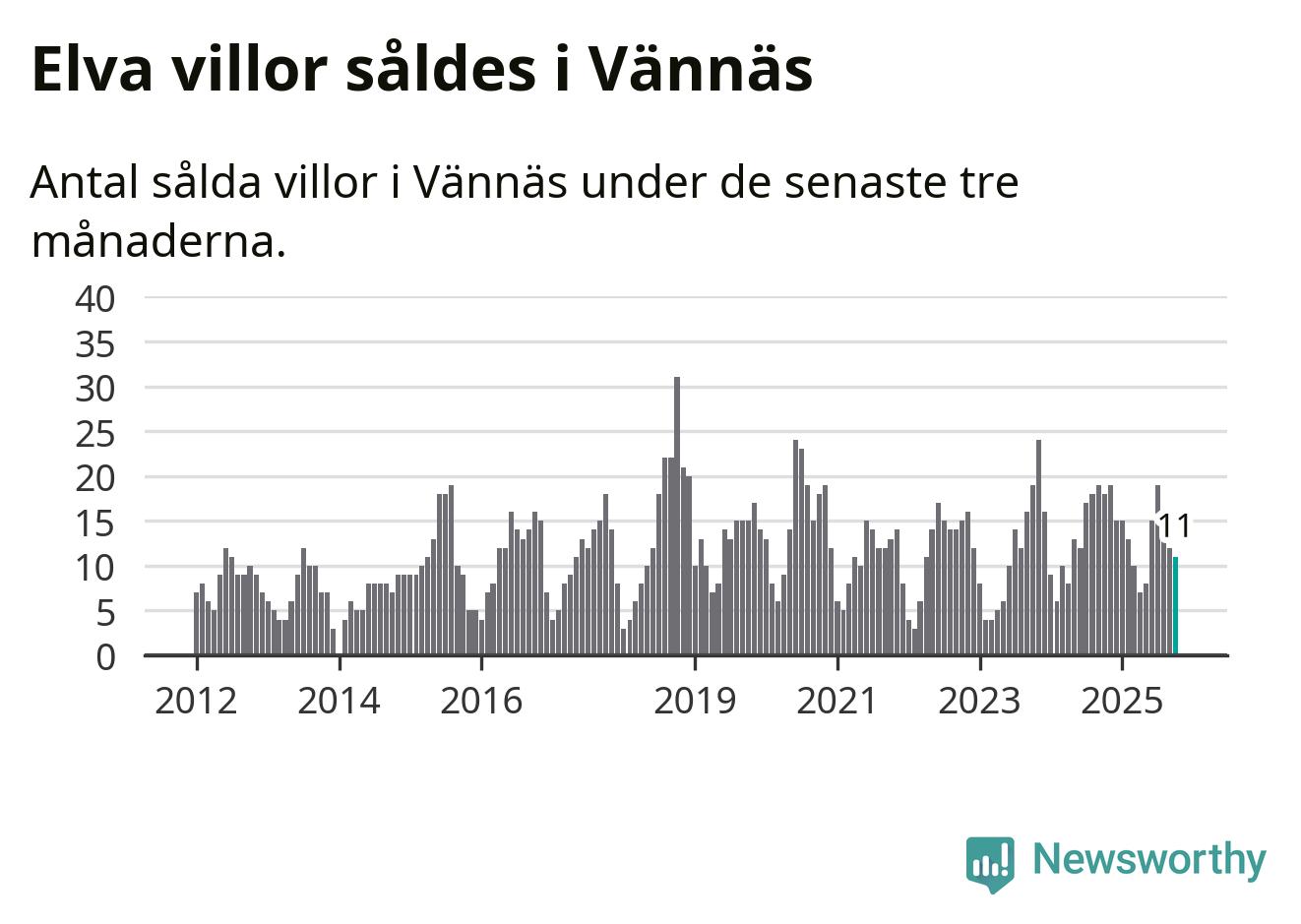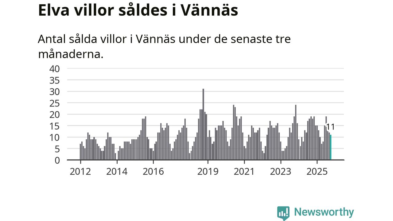 Mellan augusti och oktober gjordes sammanlagt elva affärer med villor i Vännäs kommun. Det kan jämföras med 18 vid motsvarande tid i fjol.