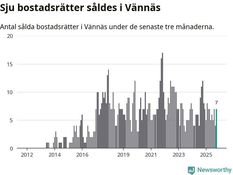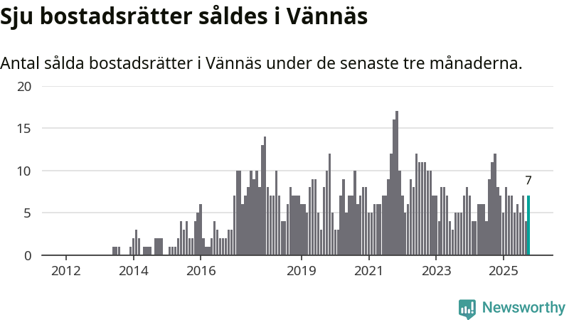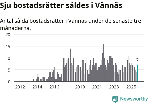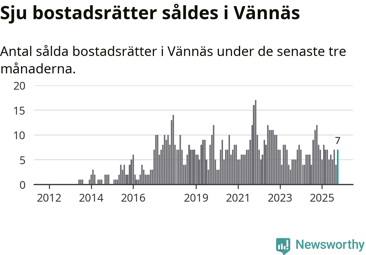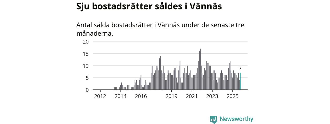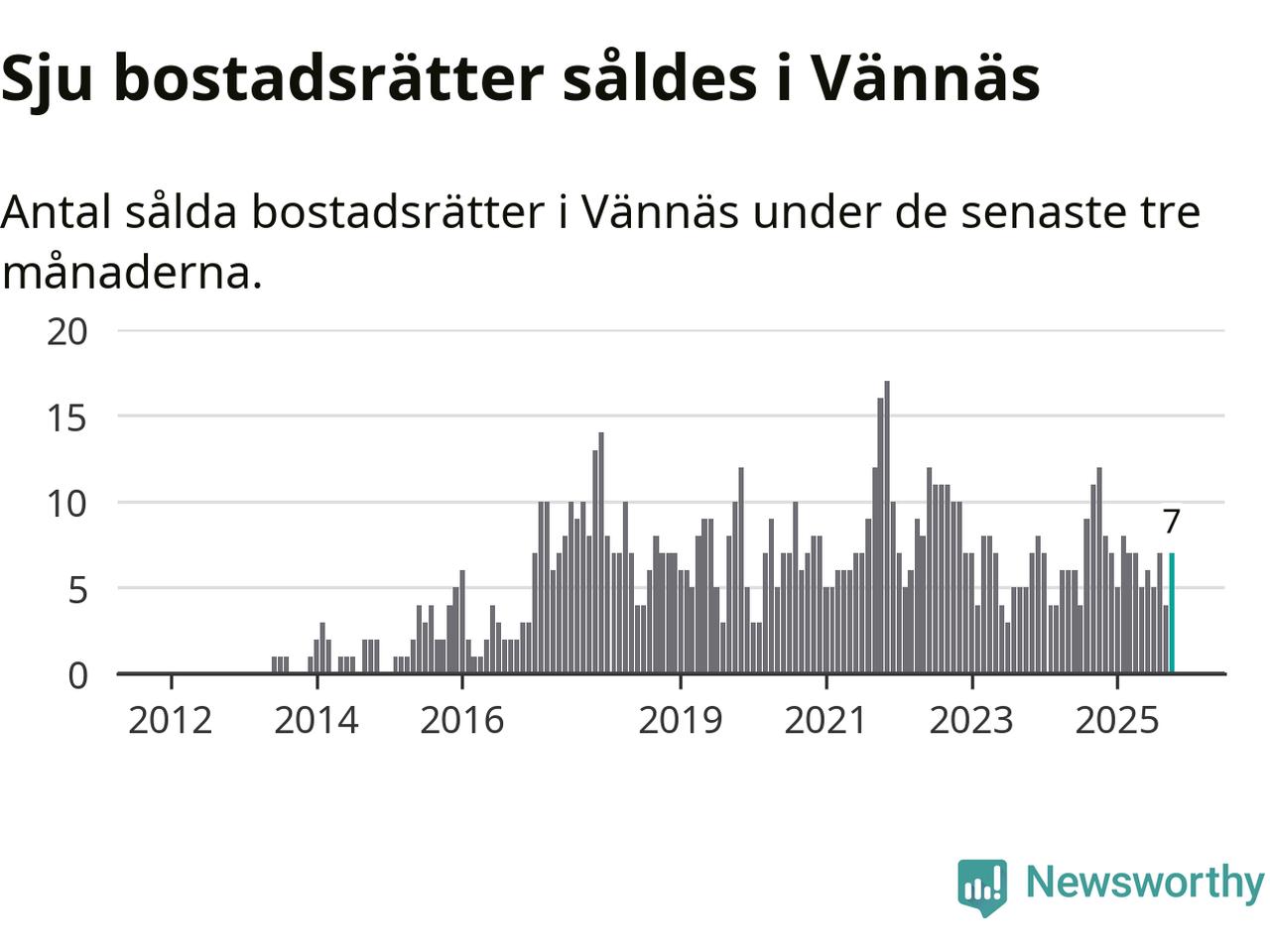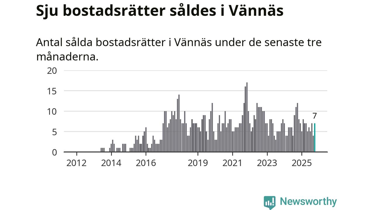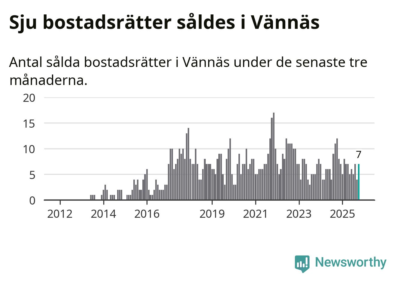 Mellan augusti och oktober gjordes sammanlagt sju affärer med bostadsrätter i Vännäs kommun. Det kan jämföras med tolv vid motsvarande tid i fjol.