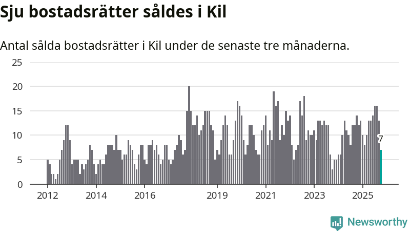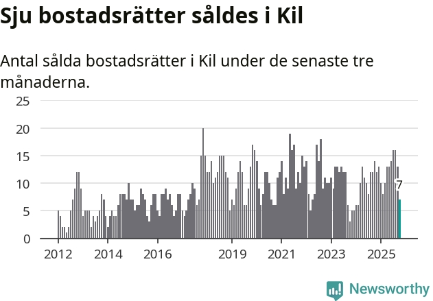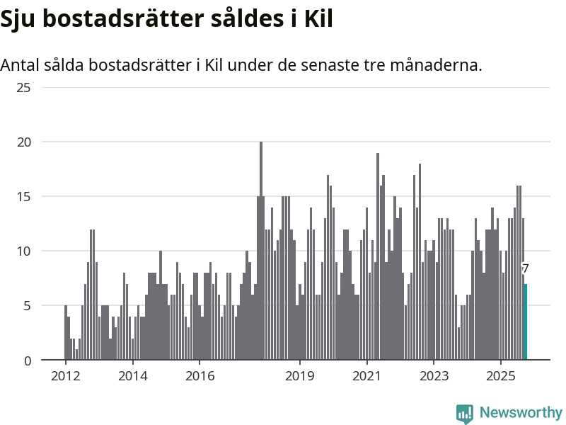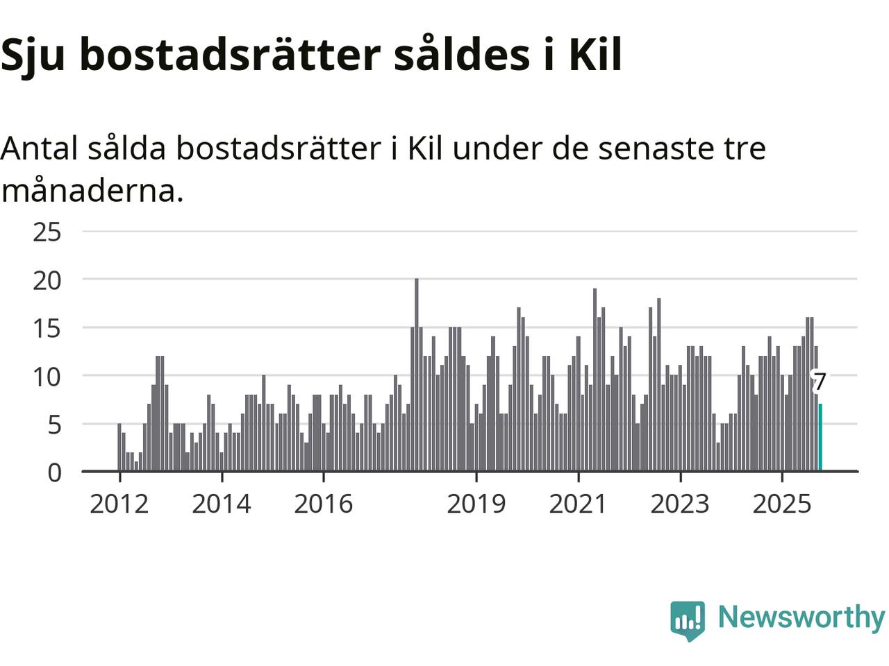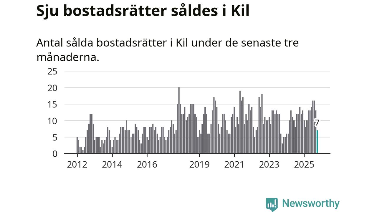 Mellan augusti och oktober gjordes sammanlagt sju affärer med bostadsrätter i Kils kommun. Det kan jämföras med 14 vid motsvarande tid i fjol.