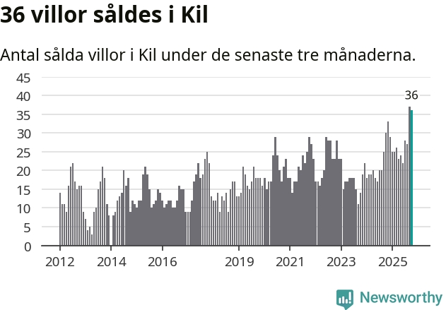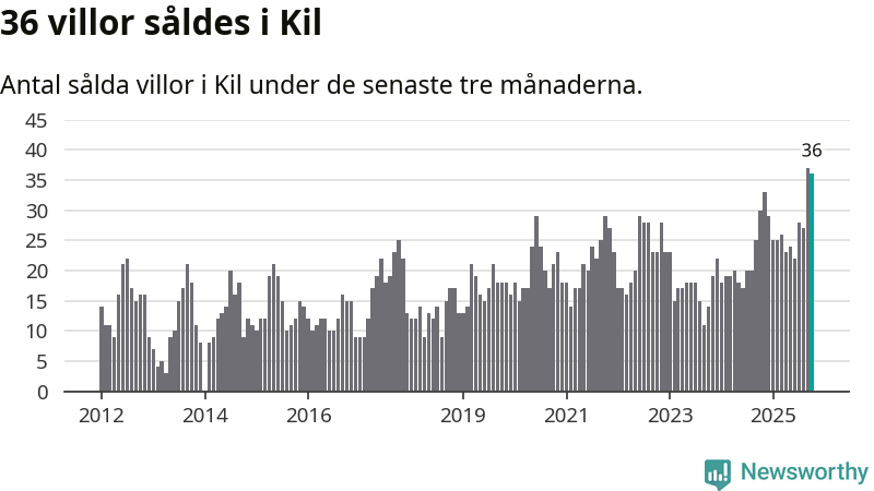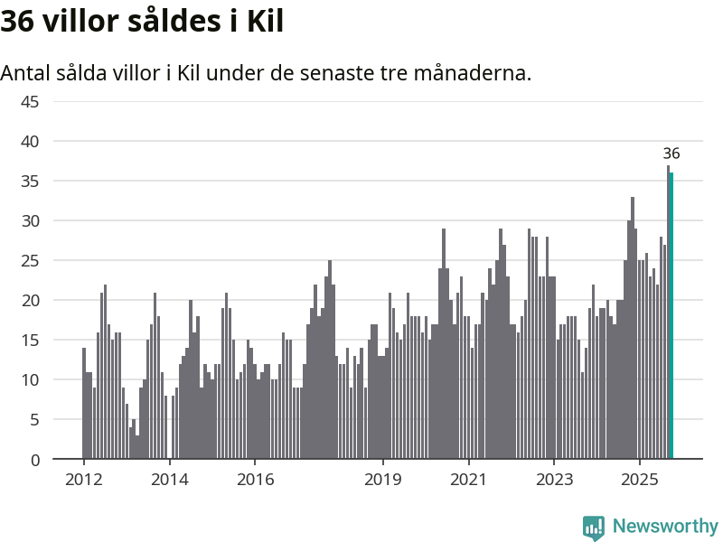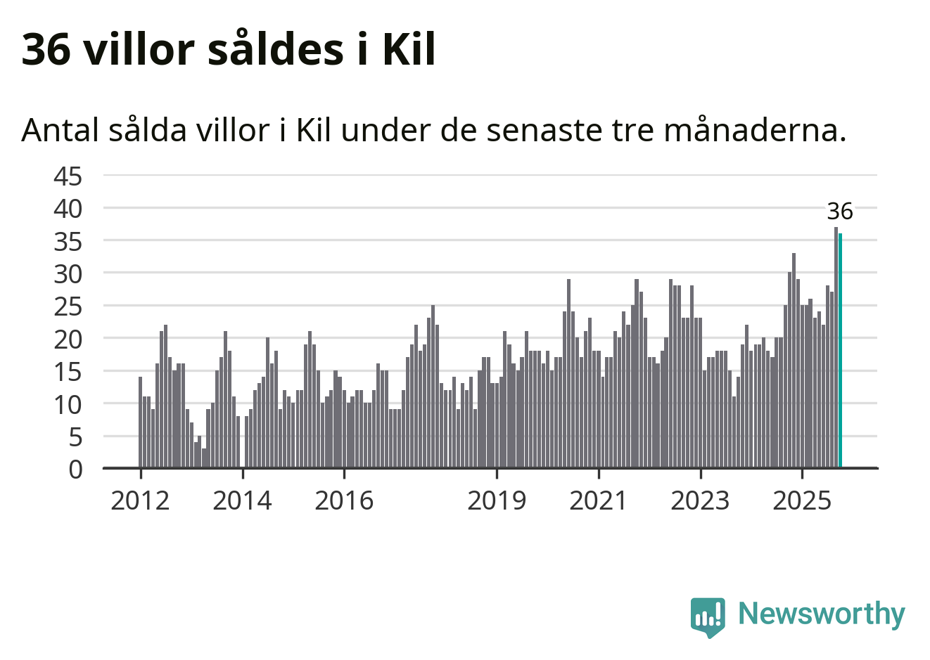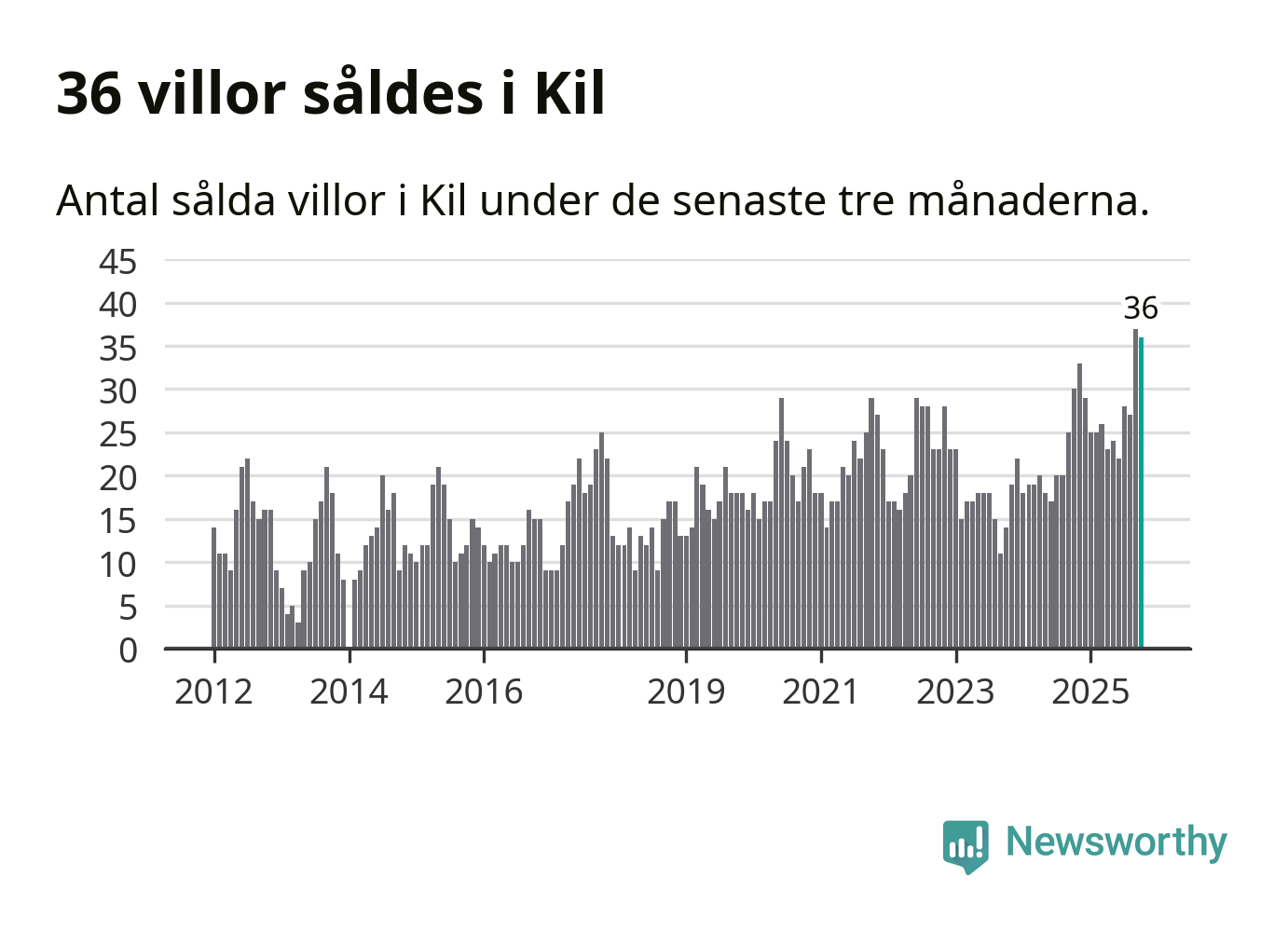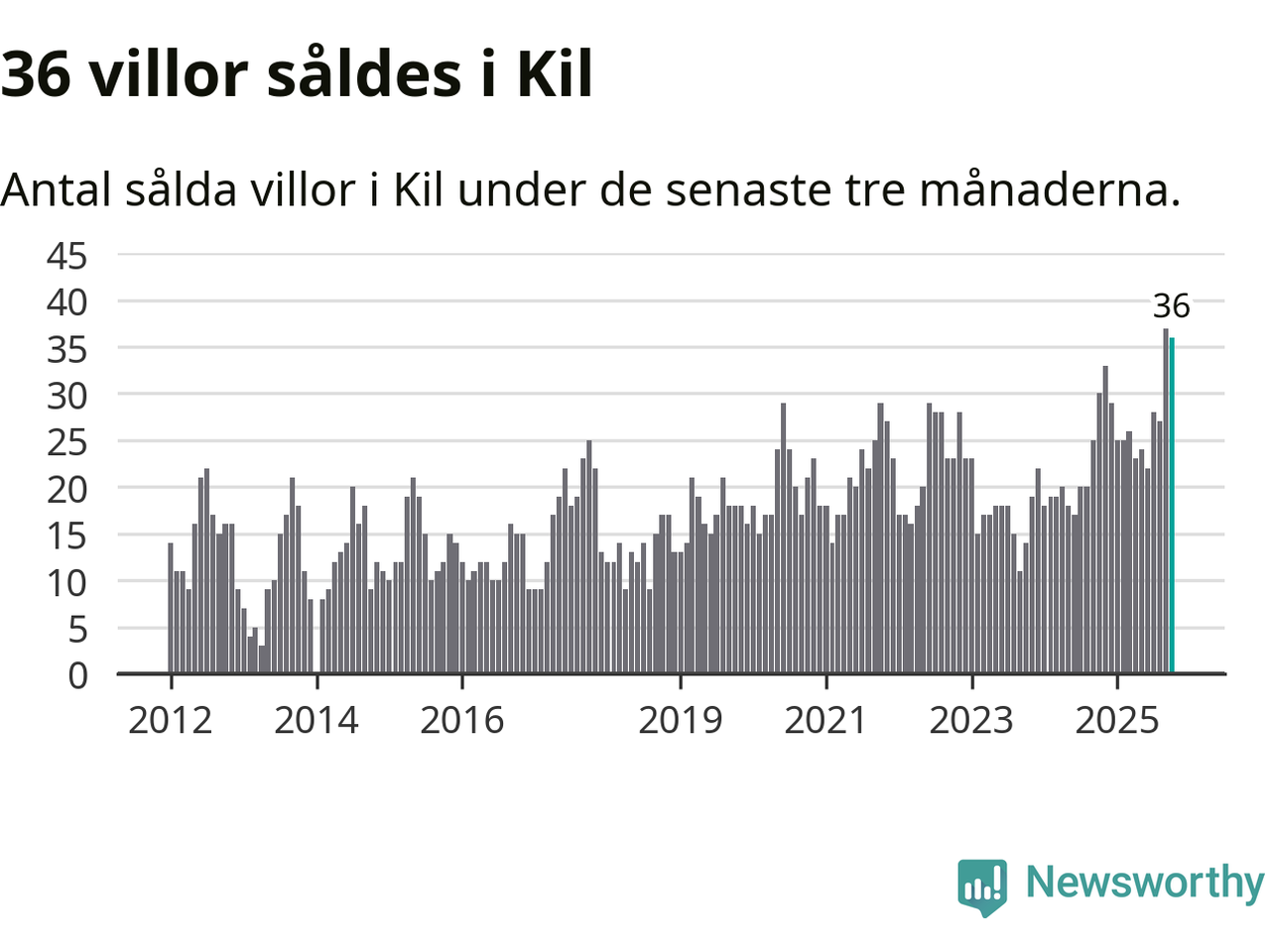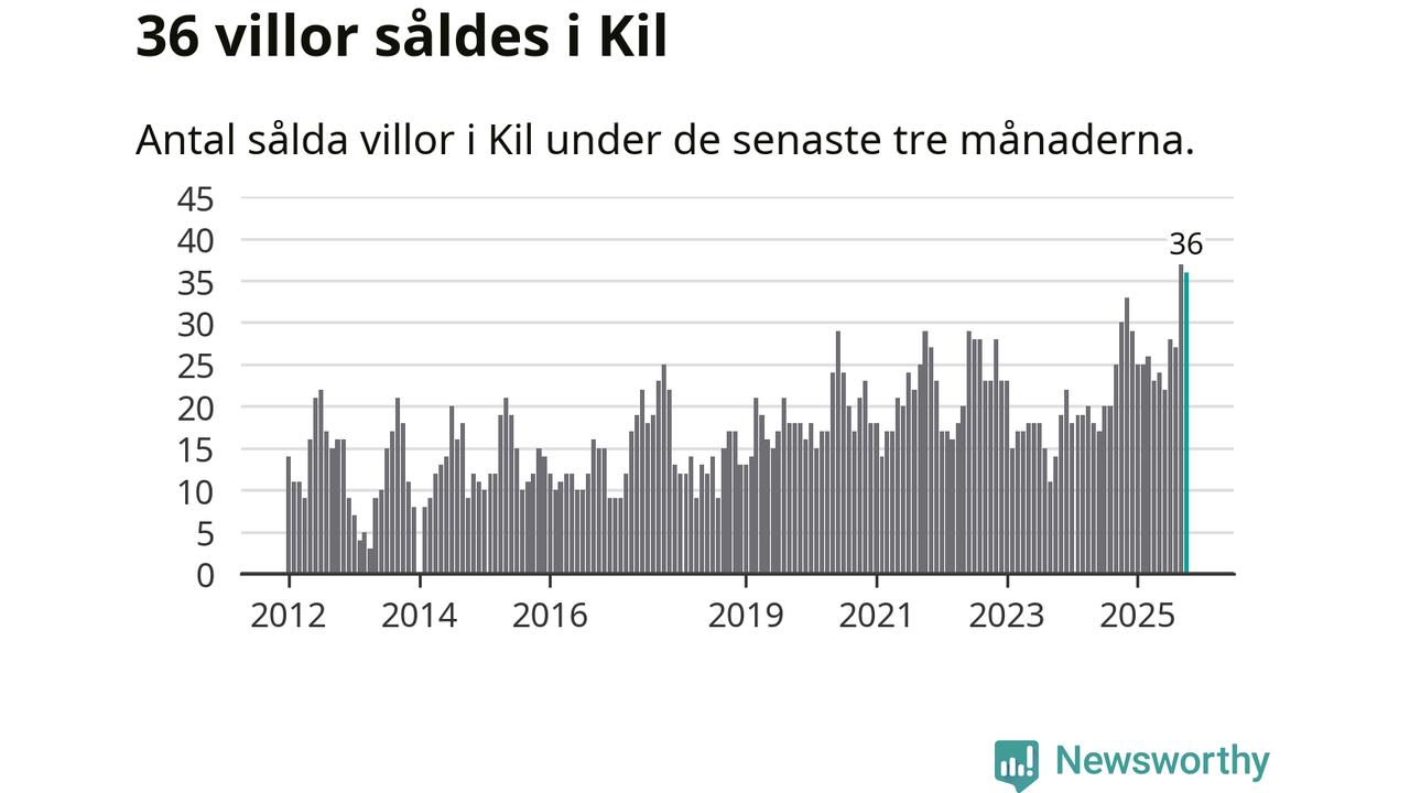 Mellan augusti och oktober gjordes sammanlagt 36 affärer med villor i Kils kommun. Det kan jämföras med 30 vid motsvarande tid i fjol.