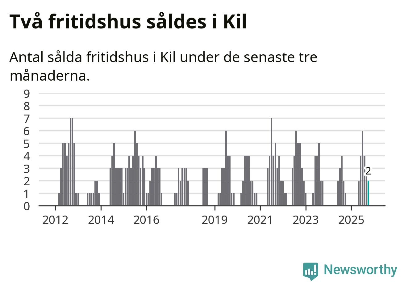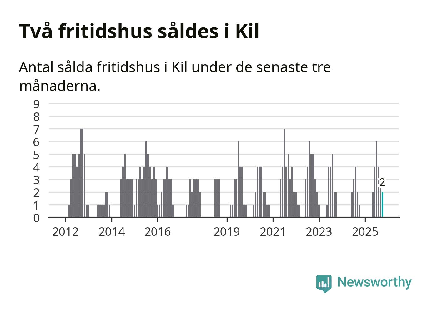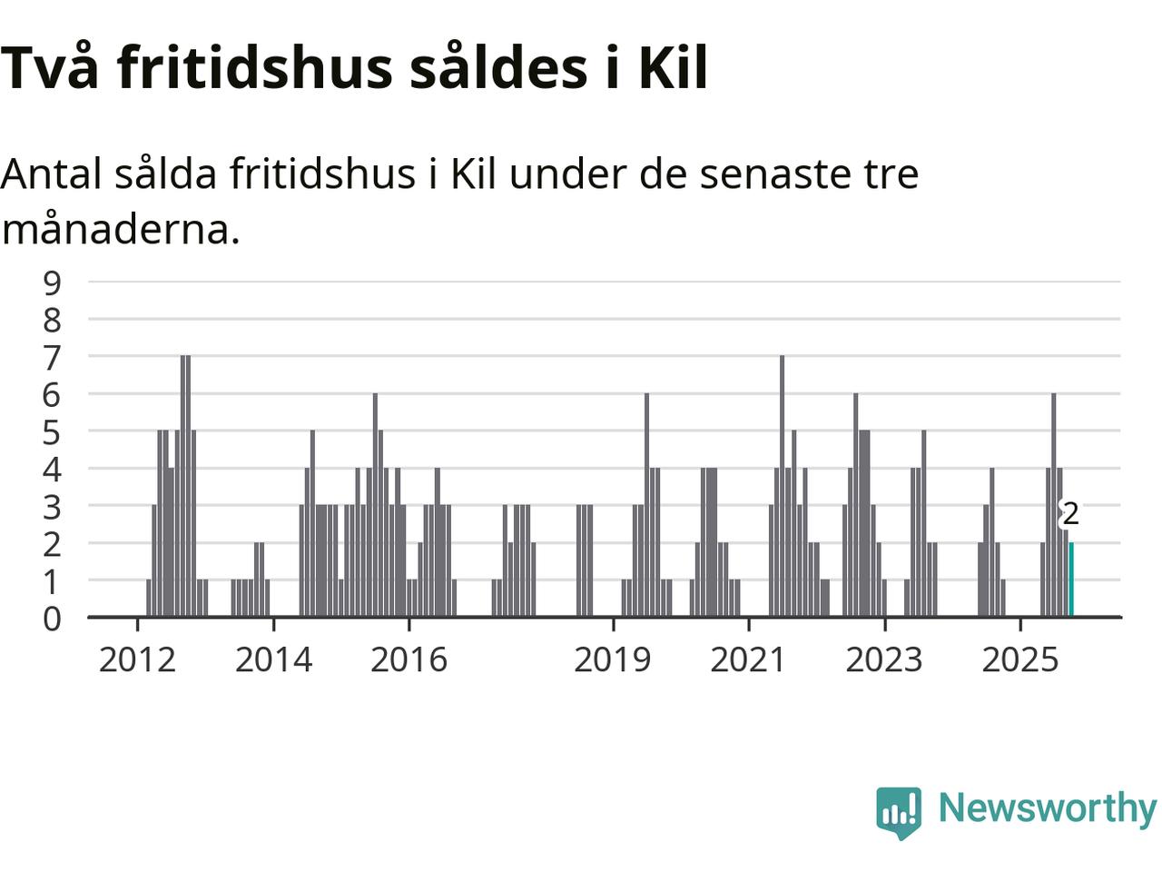Mellan augusti och oktober gjordes sammanlagt två affärer med fritidshus i Kils kommun. Det kan jämföras med ett vid motsvarande tid i fjol.