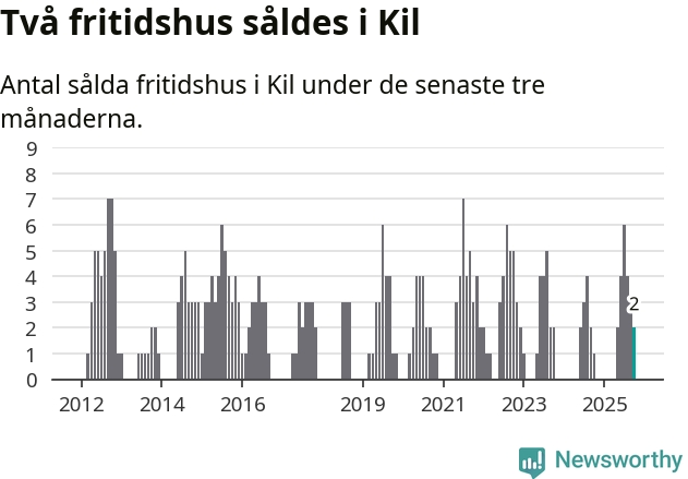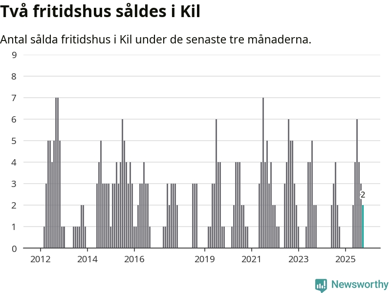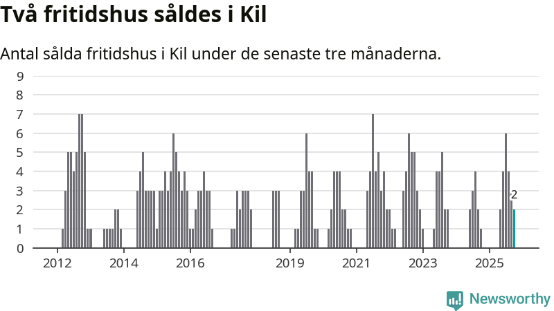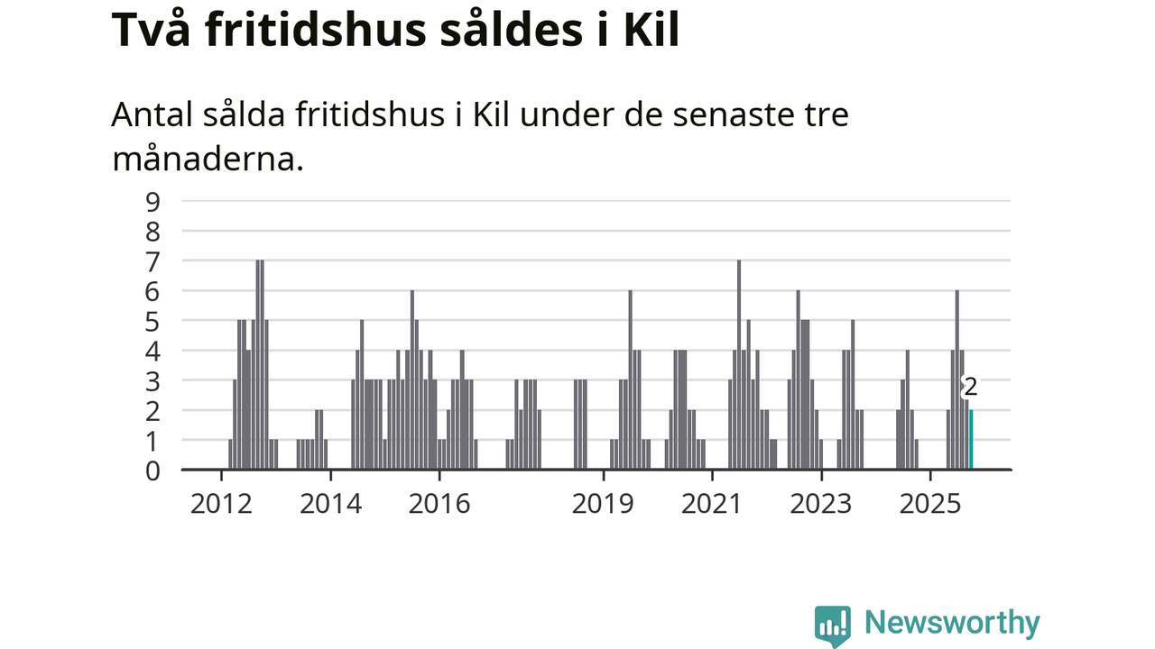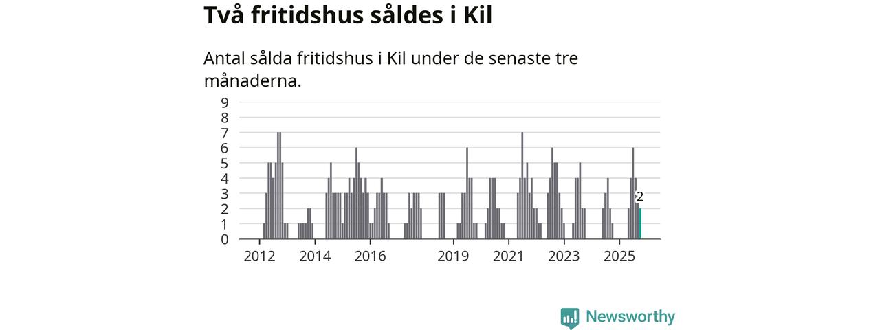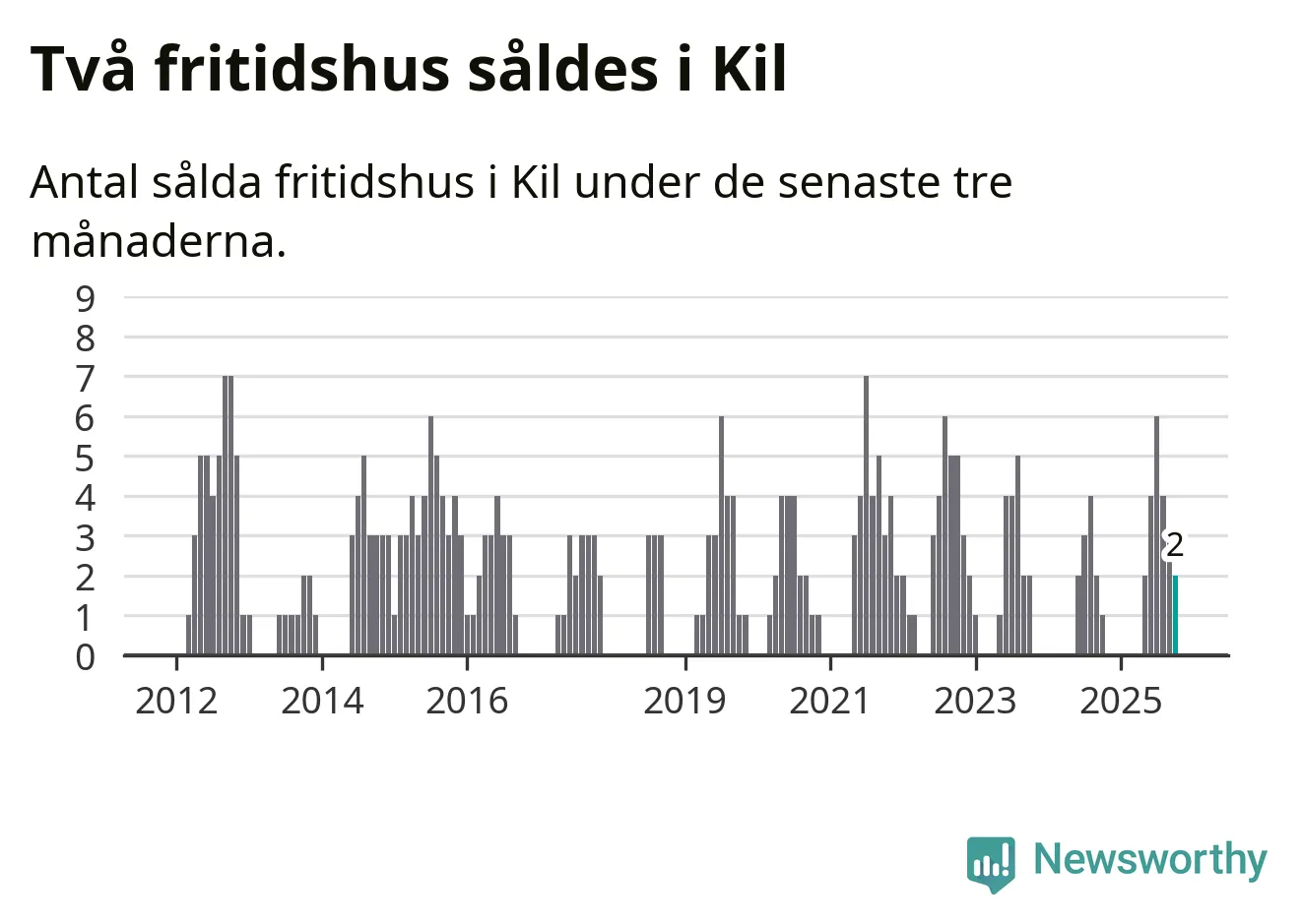Mellan augusti och oktober gjordes sammanlagt två affärer med fritidshus i Kils kommun. Det kan jämföras med ett vid motsvarande tid i fjol.
