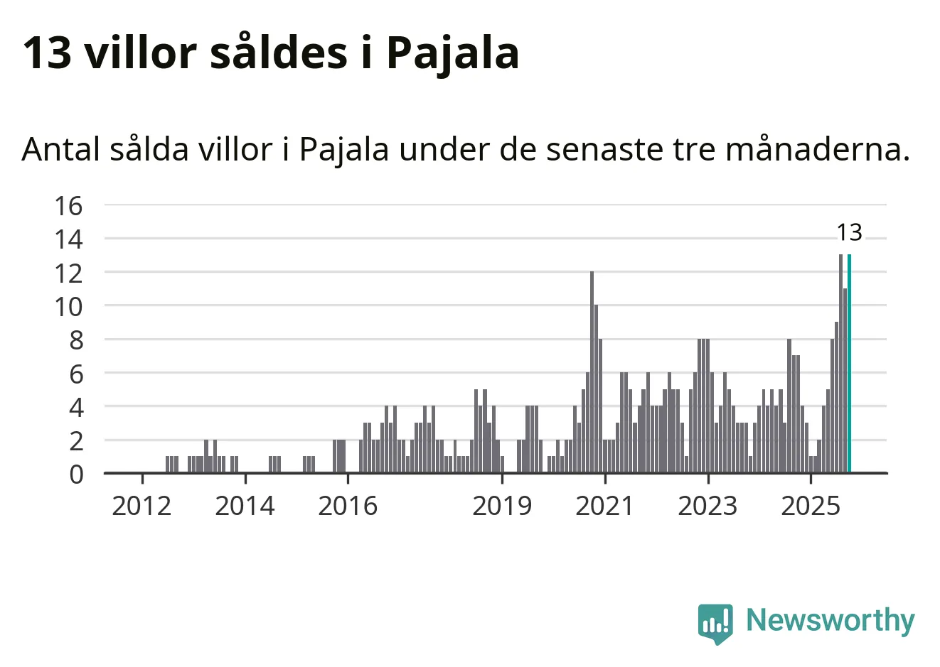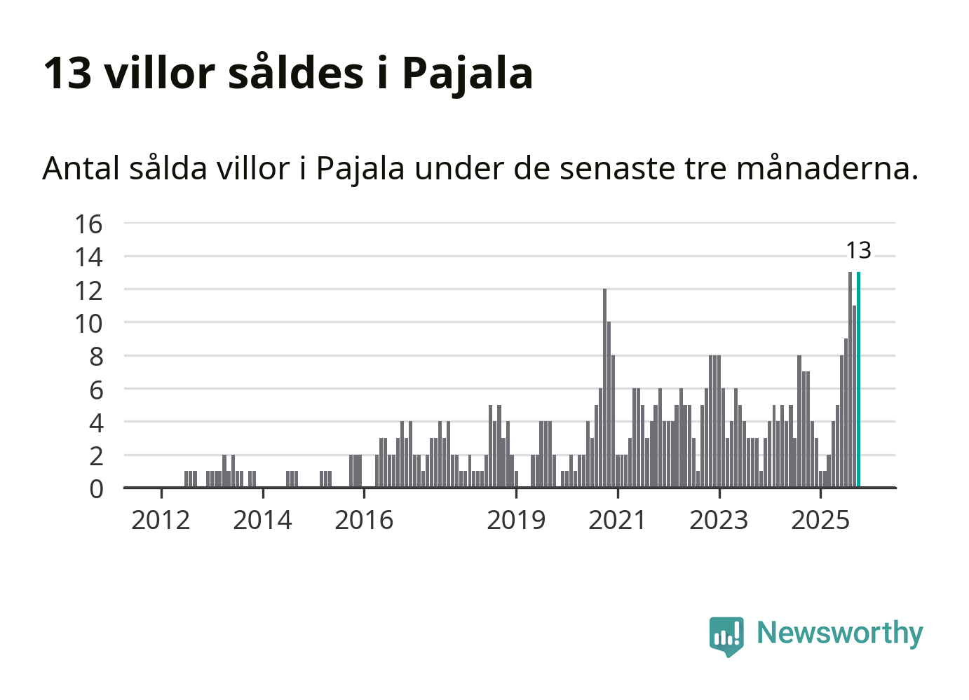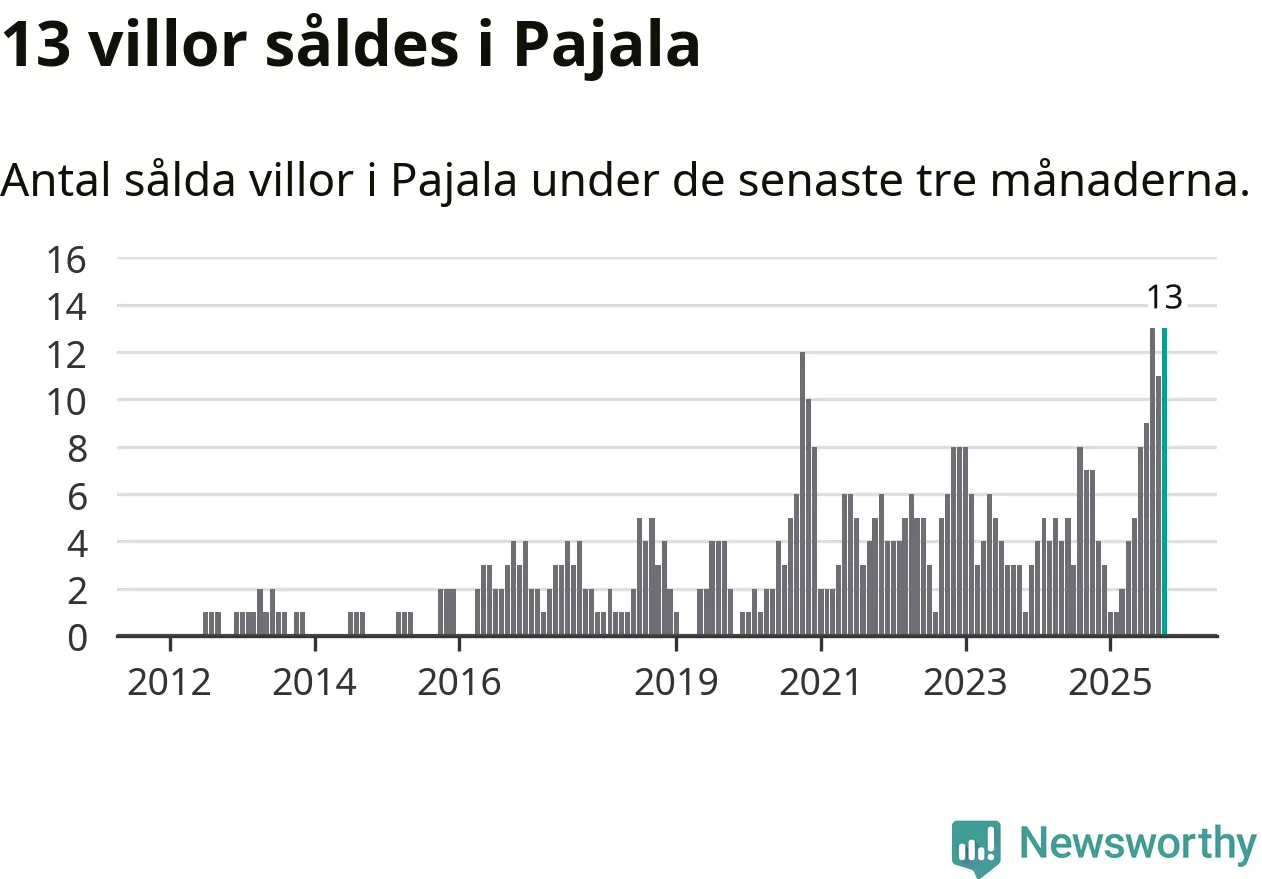 Mellan augusti och oktober gjordes sammanlagt 13 affärer med villor i Pajala kommun. Det kan jämföras med sju vid motsvarande tid i fjol.