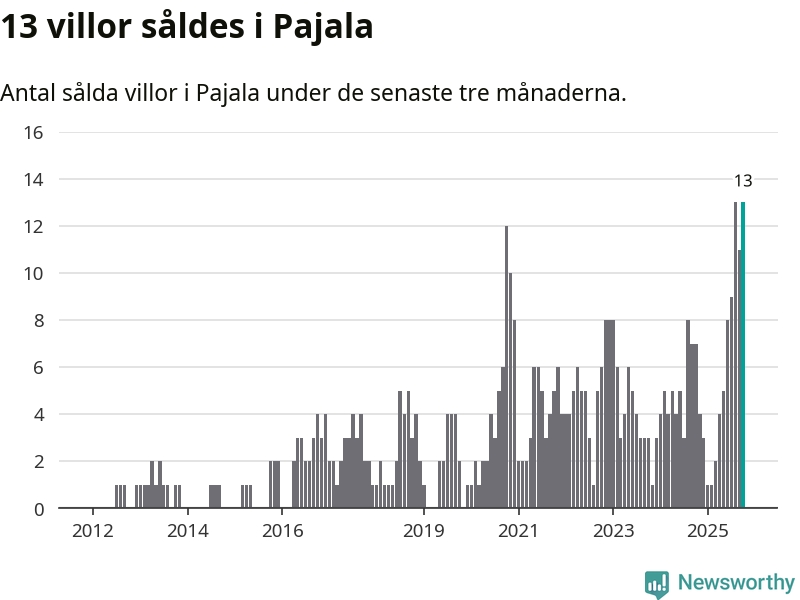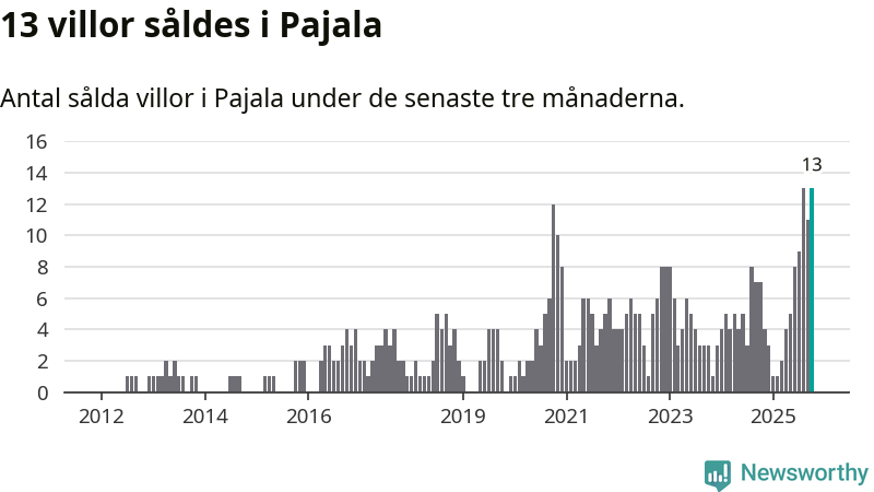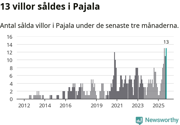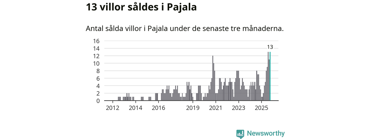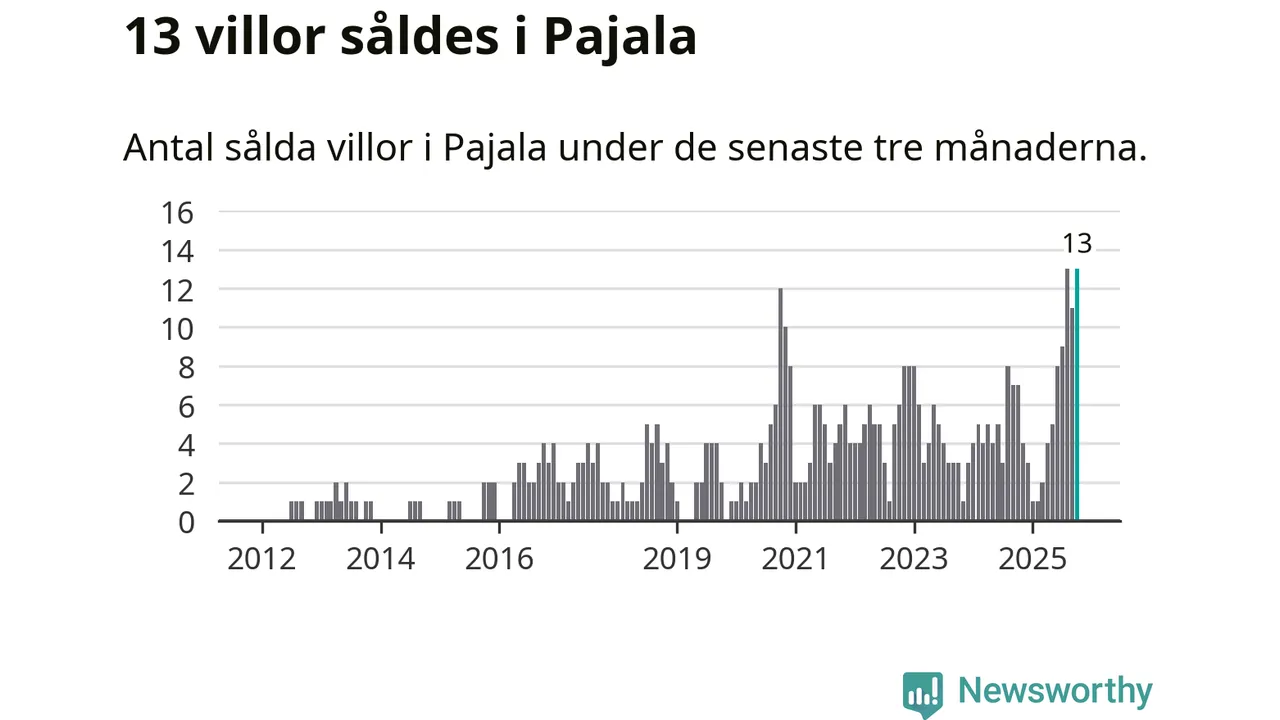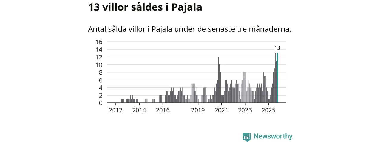 Mellan augusti och oktober gjordes sammanlagt 13 affärer med villor i Pajala kommun. Det kan jämföras med sju vid motsvarande tid i fjol.