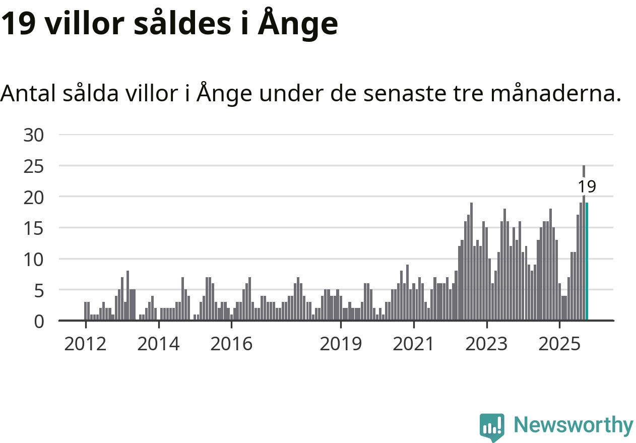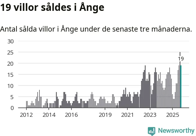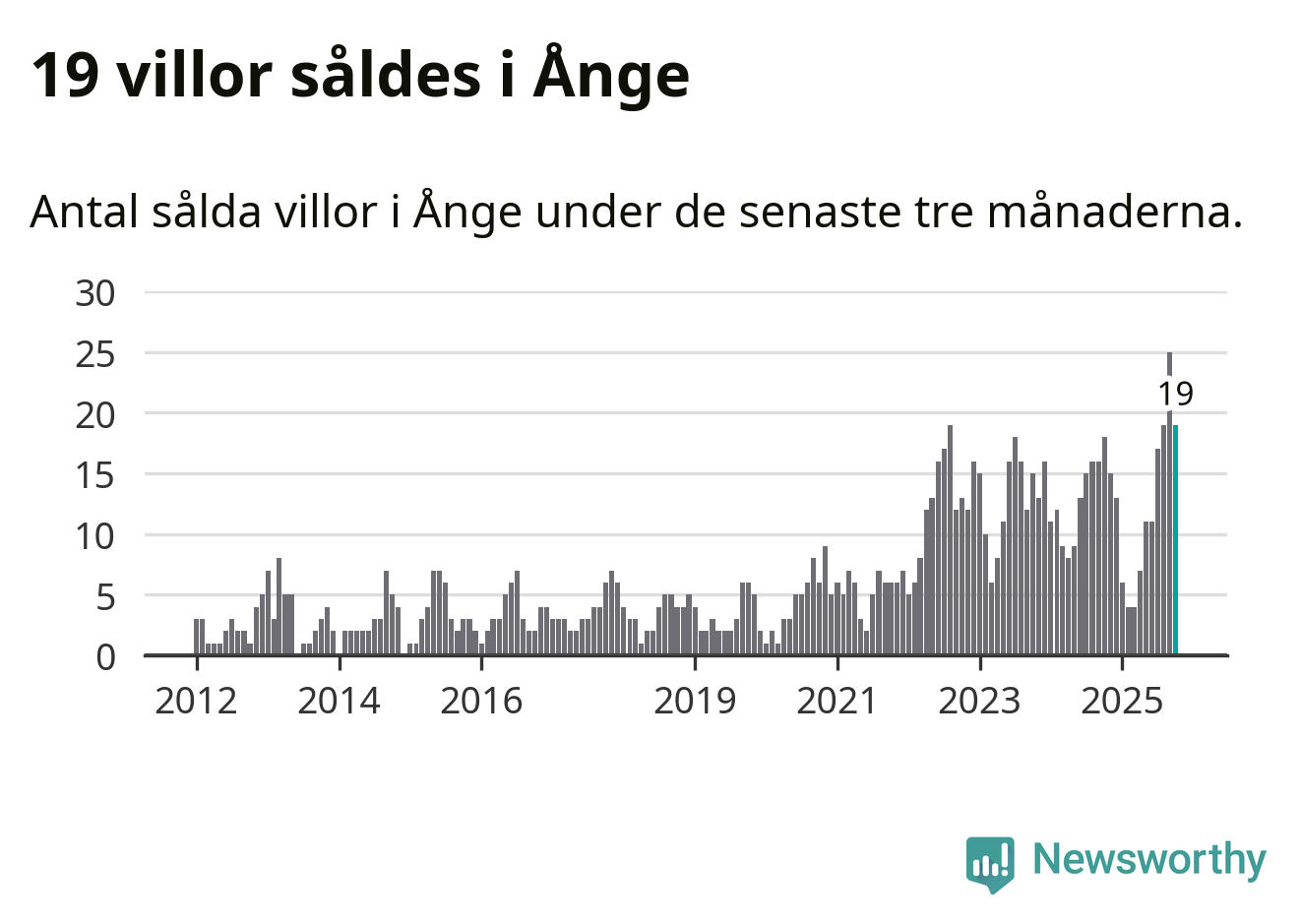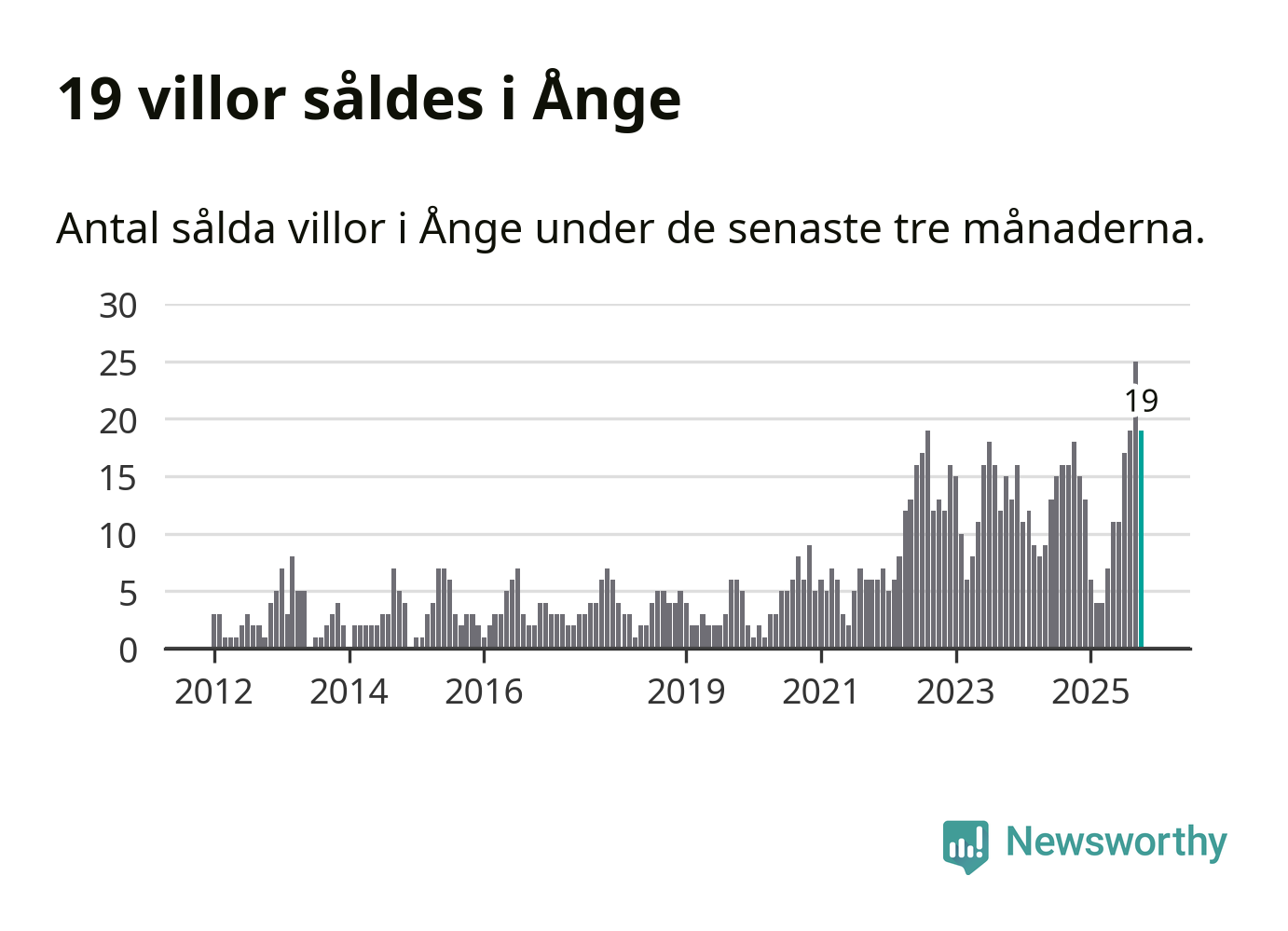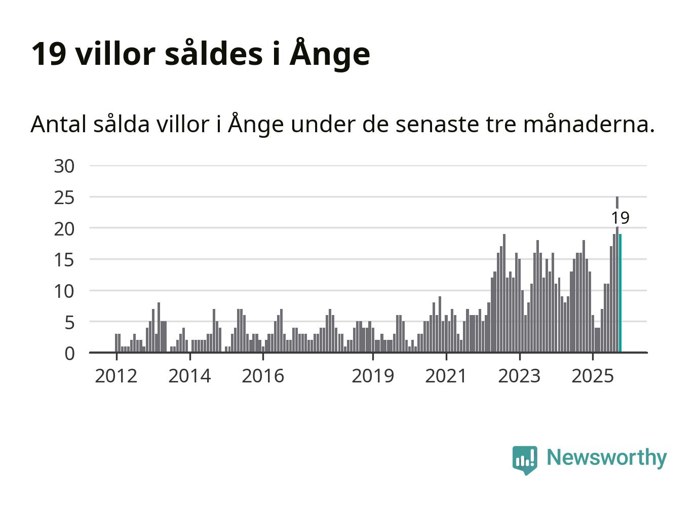 Mellan augusti och oktober gjordes sammanlagt 19 affärer med villor i Ånge kommun. Det kan jämföras med 18 vid motsvarande tid i fjol.
