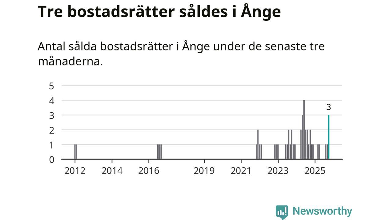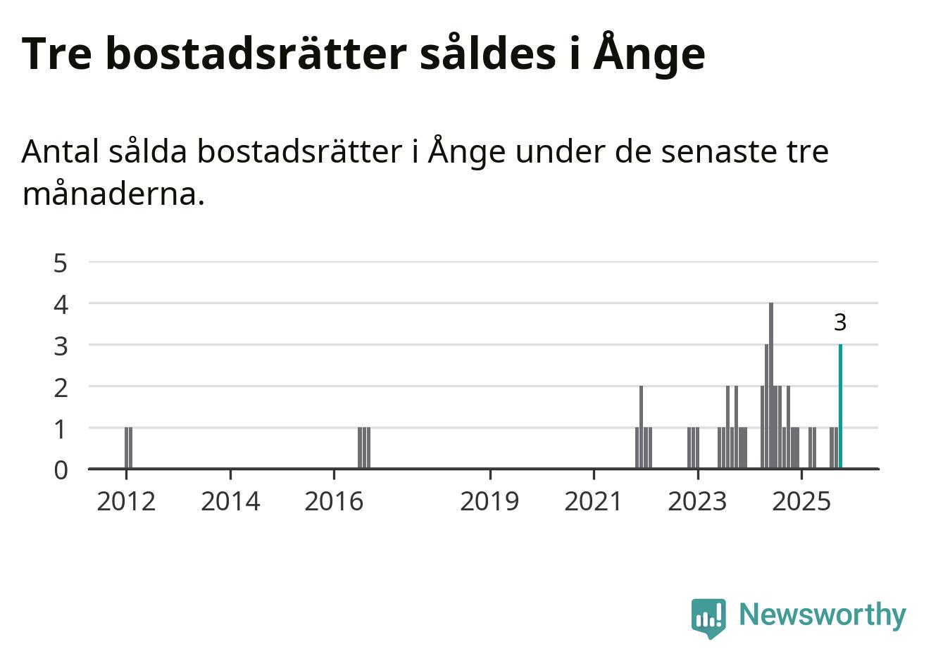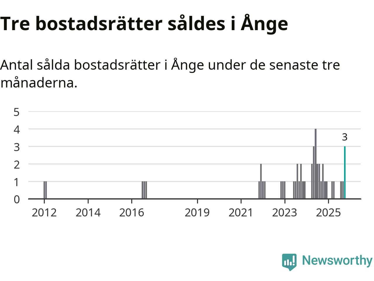 Mellan augusti och oktober gjordes sammanlagt tre affärer med bostadsrätter i Ånge kommun. Det kan jämföras med två vid motsvarande tid i fjol.