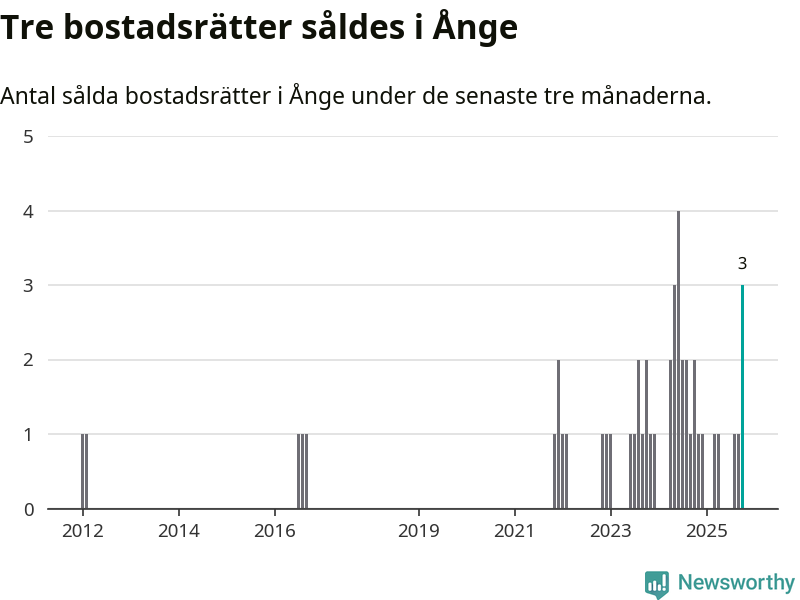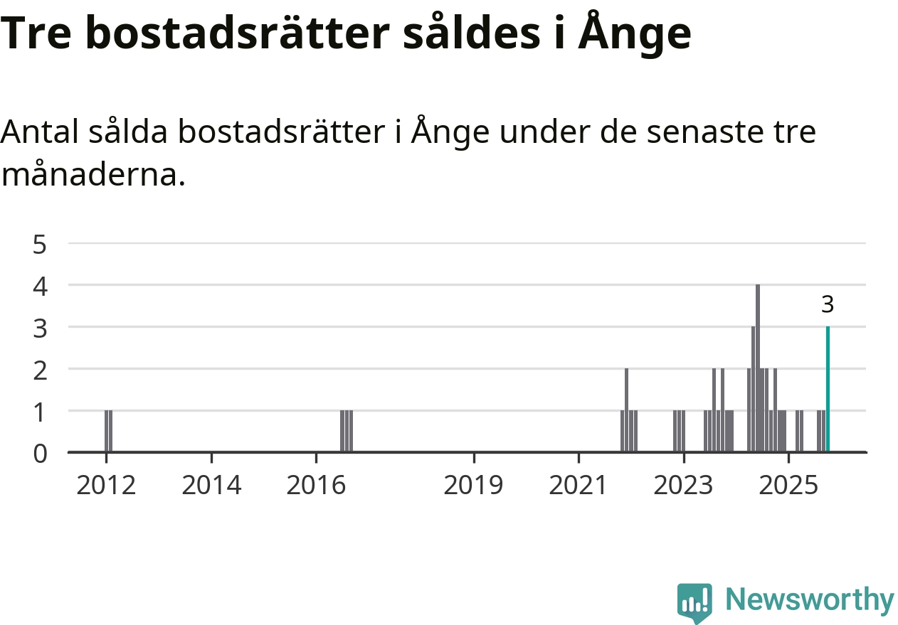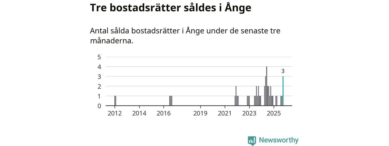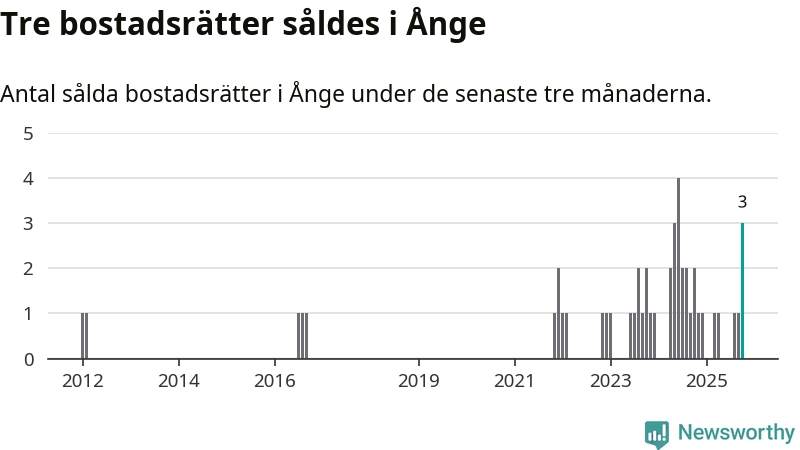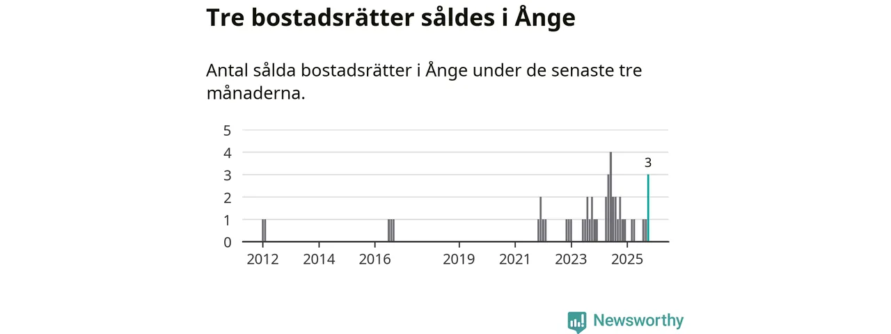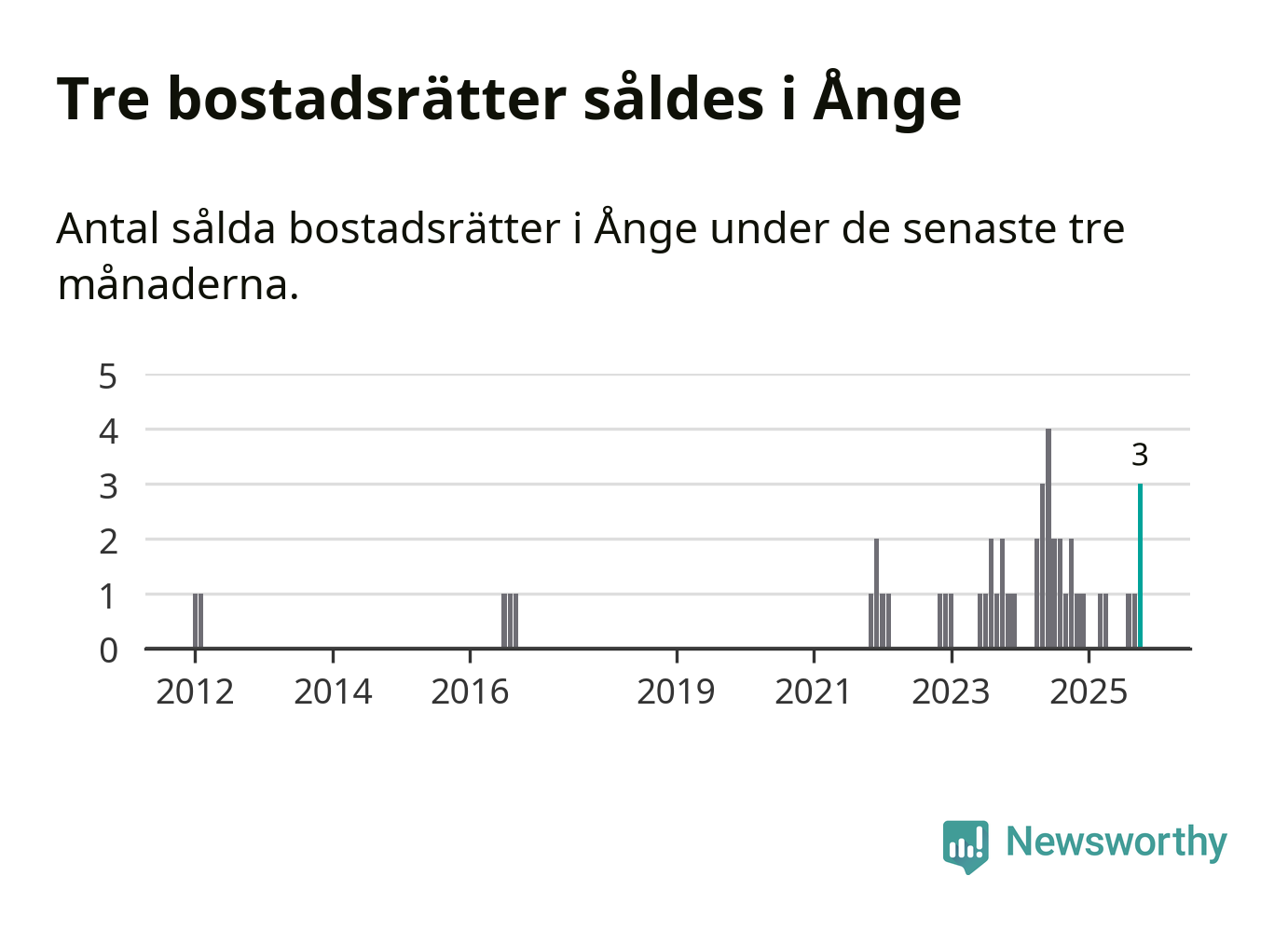 Mellan augusti och oktober gjordes sammanlagt tre affärer med bostadsrätter i Ånge kommun. Det kan jämföras med två vid motsvarande tid i fjol.