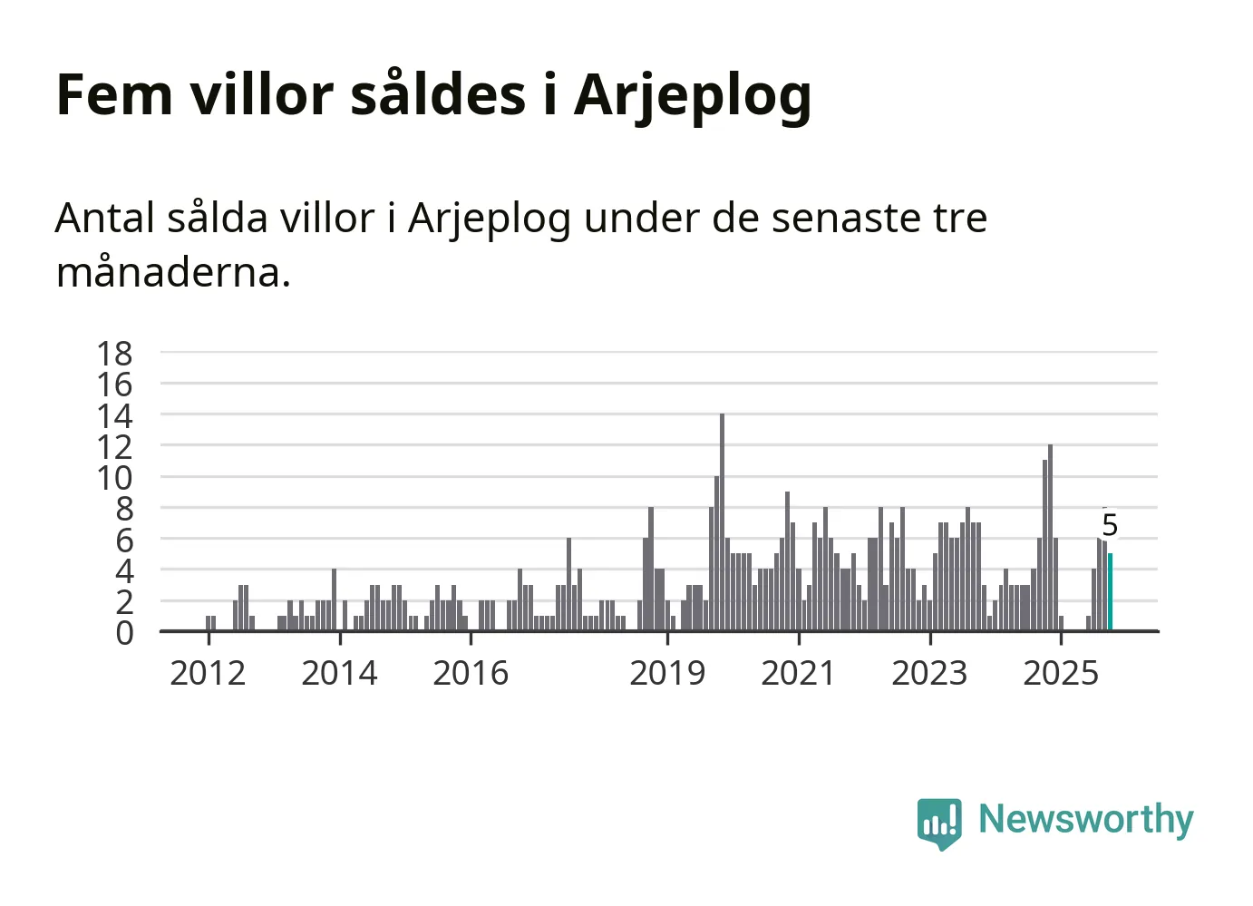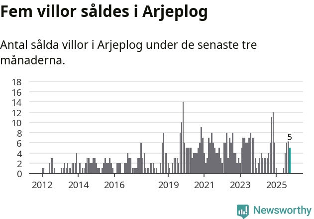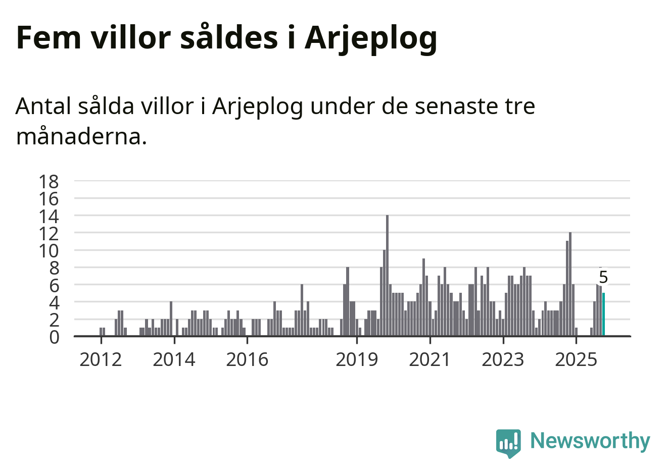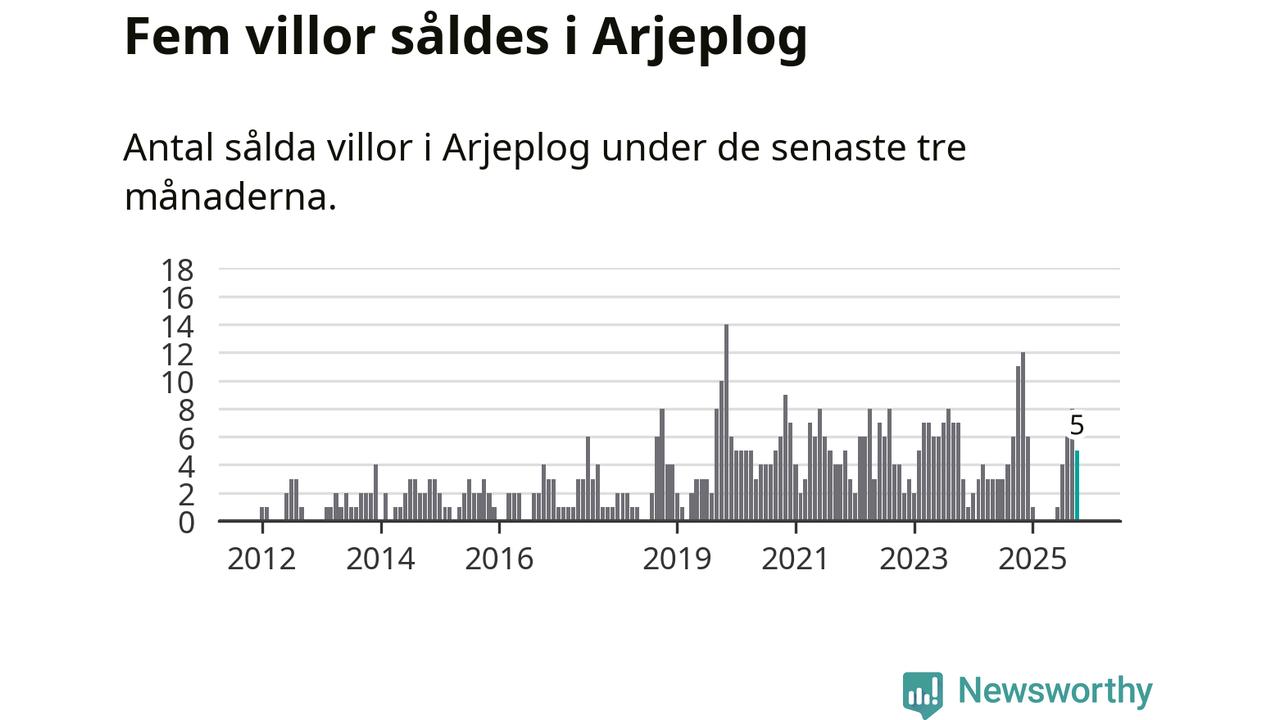 Mellan augusti och oktober gjordes sammanlagt fem affärer med villor i Arjeplogs kommun. Det kan jämföras med elva vid motsvarande tid i fjol.