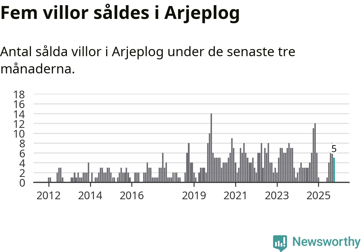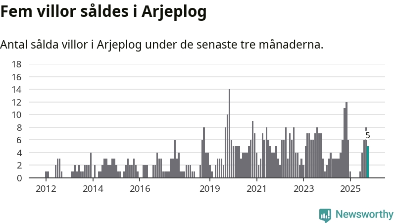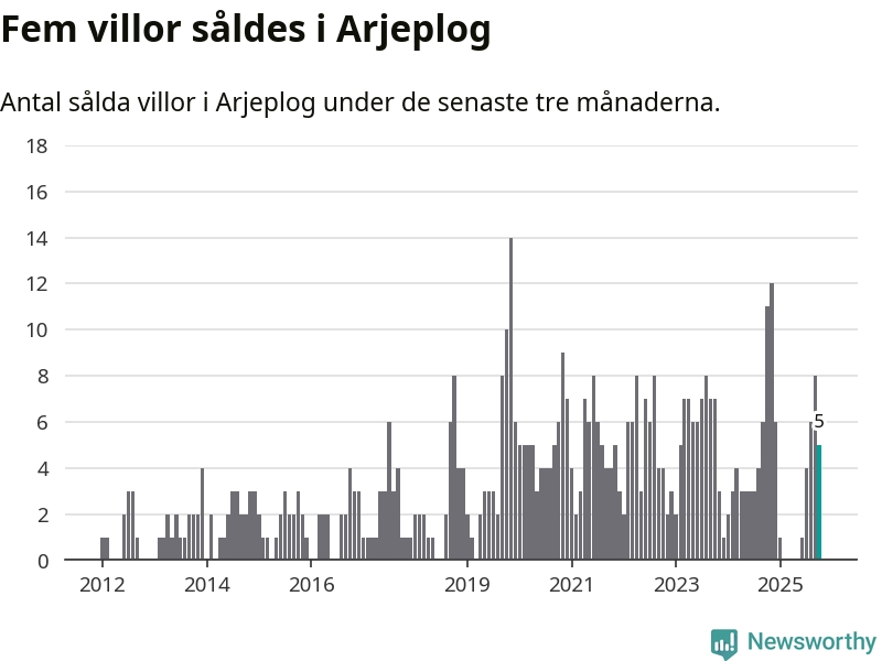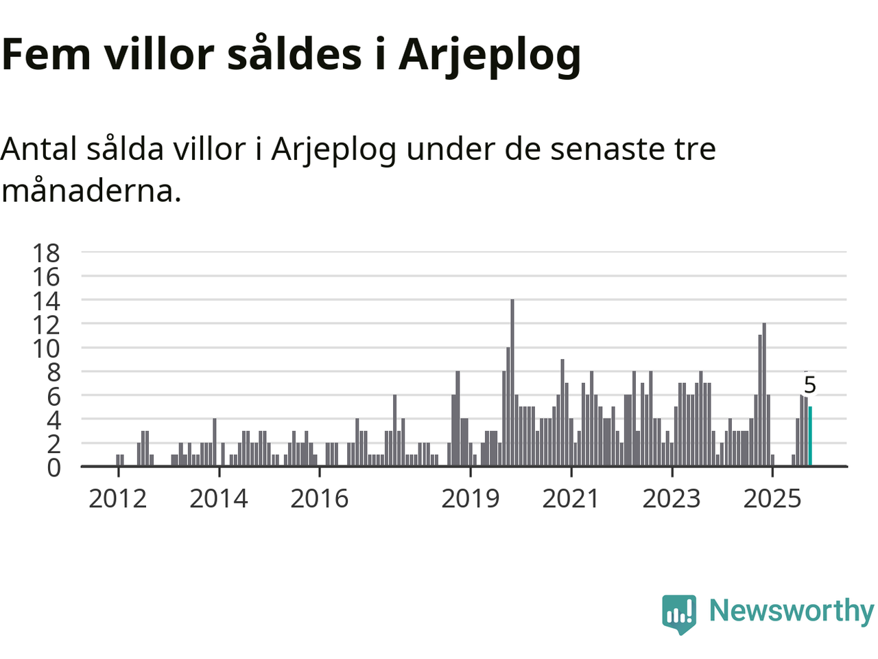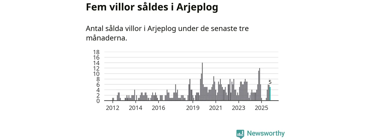 Mellan augusti och oktober gjordes sammanlagt fem affärer med villor i Arjeplogs kommun. Det kan jämföras med elva vid motsvarande tid i fjol.