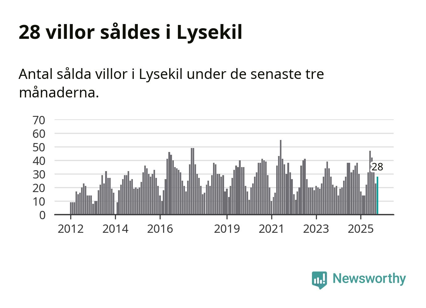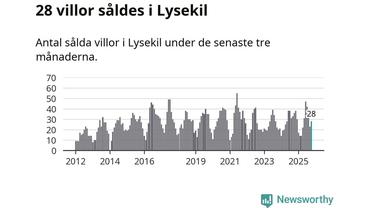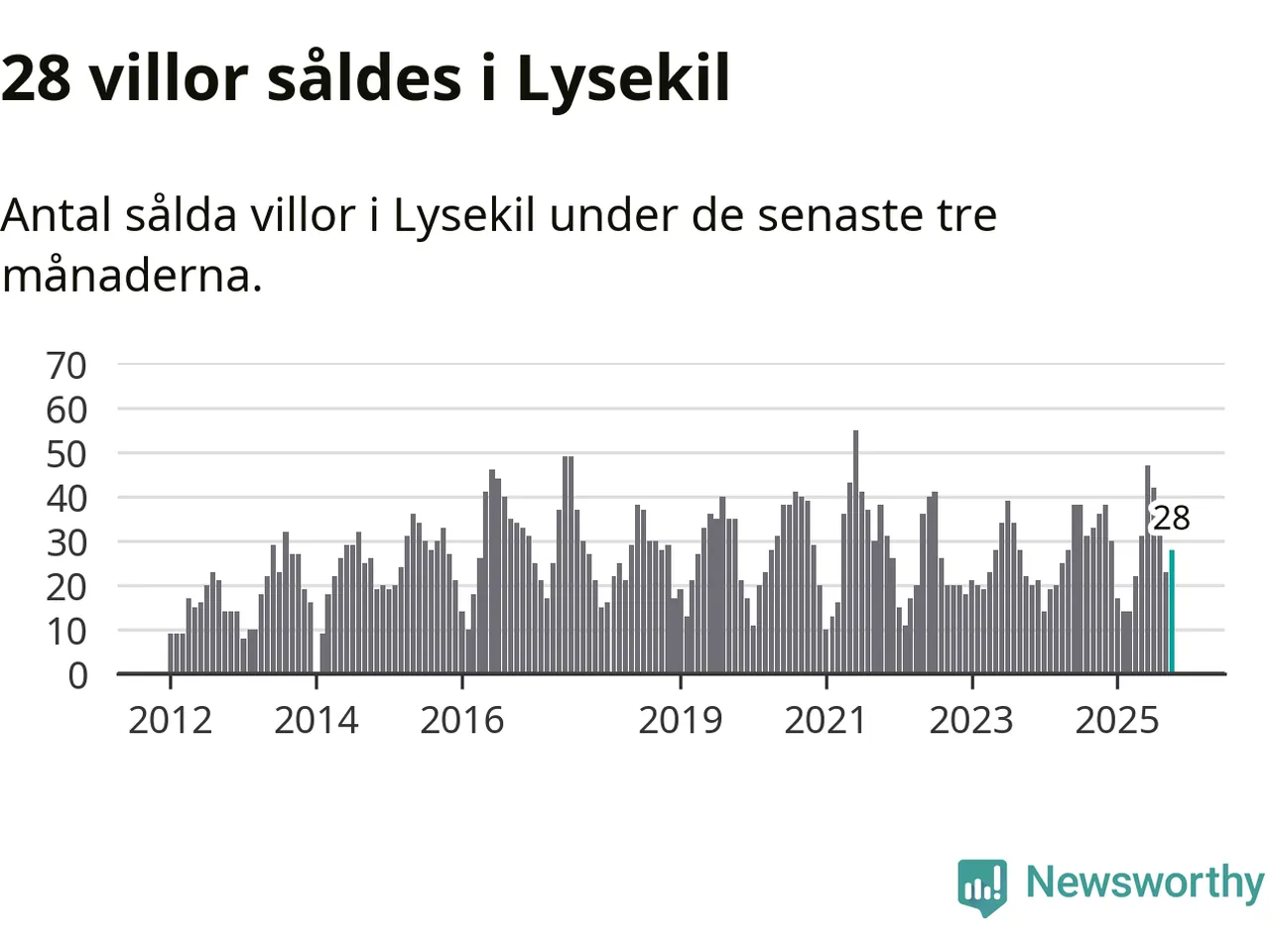 Mellan augusti och oktober gjordes sammanlagt 28 affärer med villor i Lysekils kommun. Det kan jämföras med 36 vid motsvarande tid i fjol.