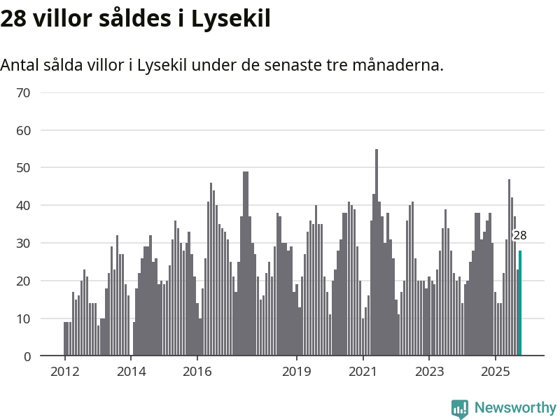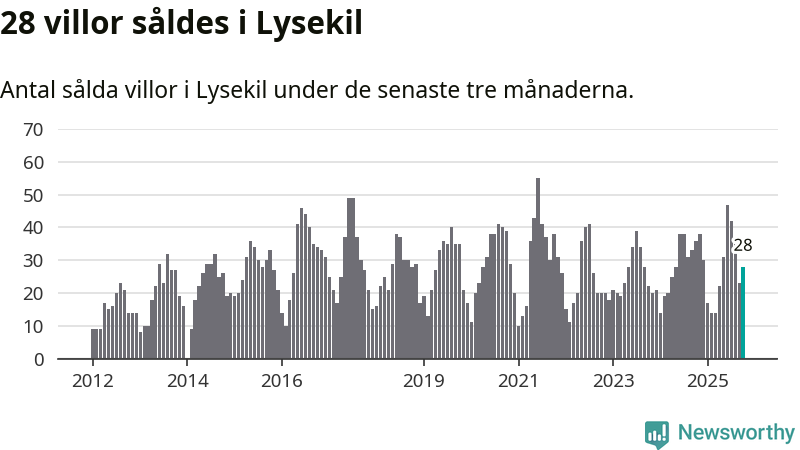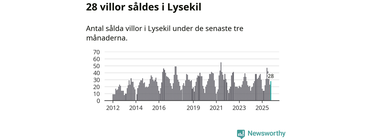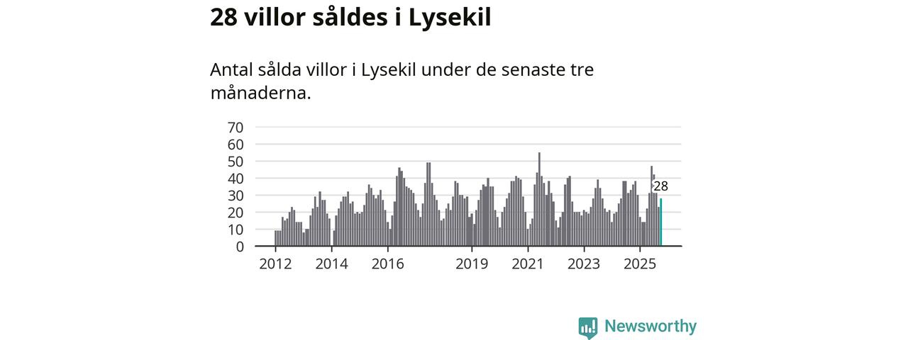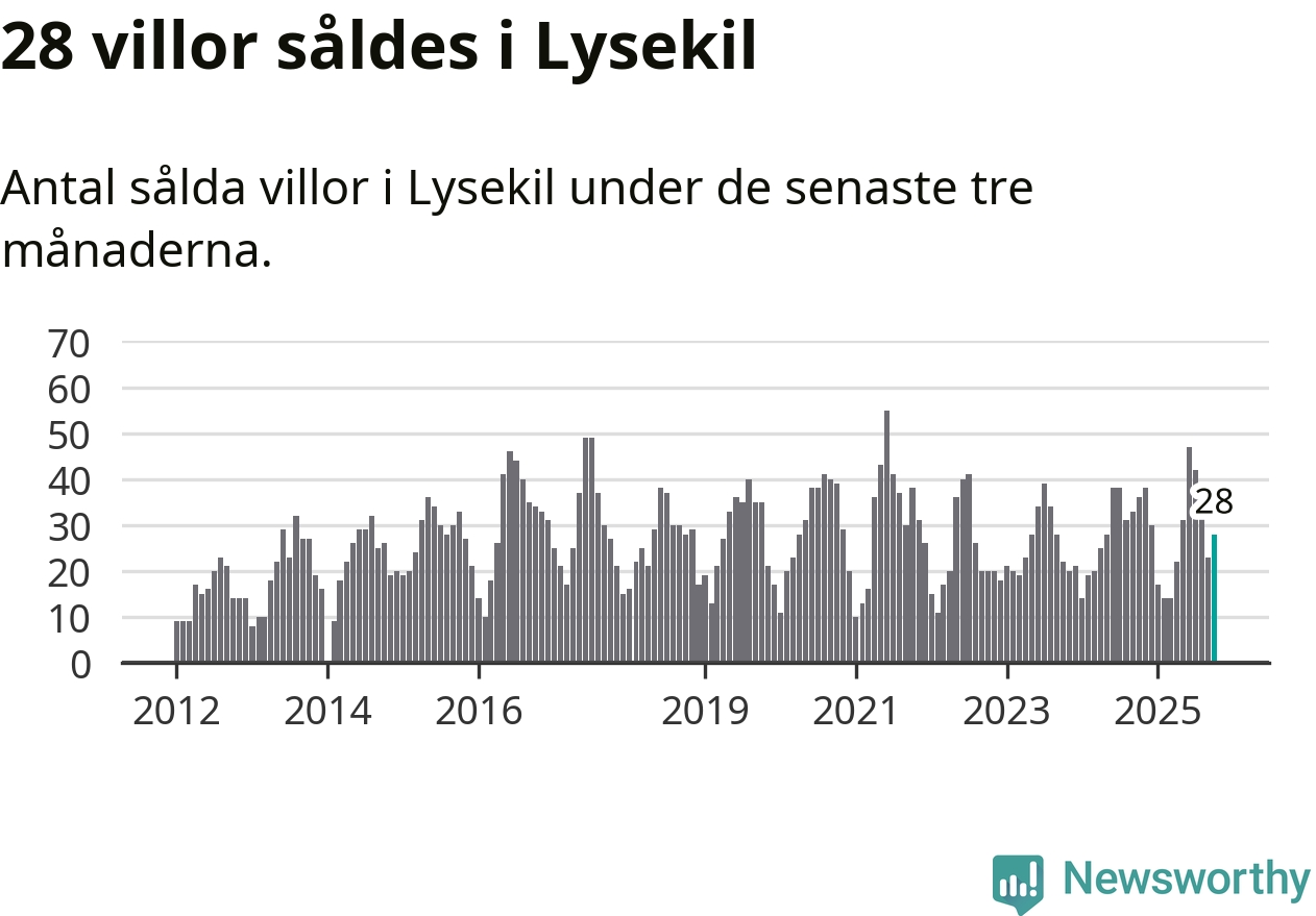 Mellan augusti och oktober gjordes sammanlagt 28 affärer med villor i Lysekils kommun. Det kan jämföras med 36 vid motsvarande tid i fjol.