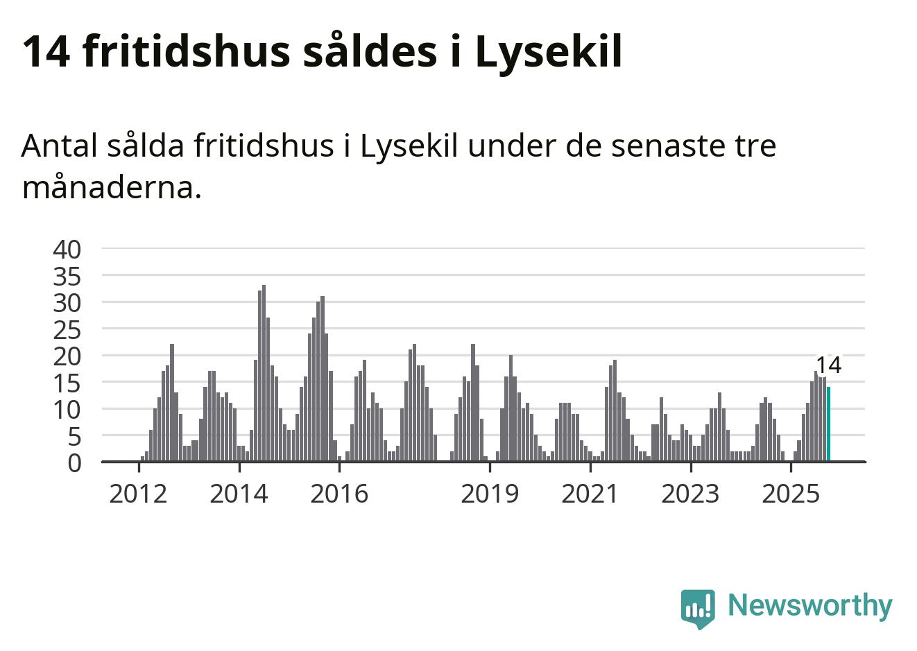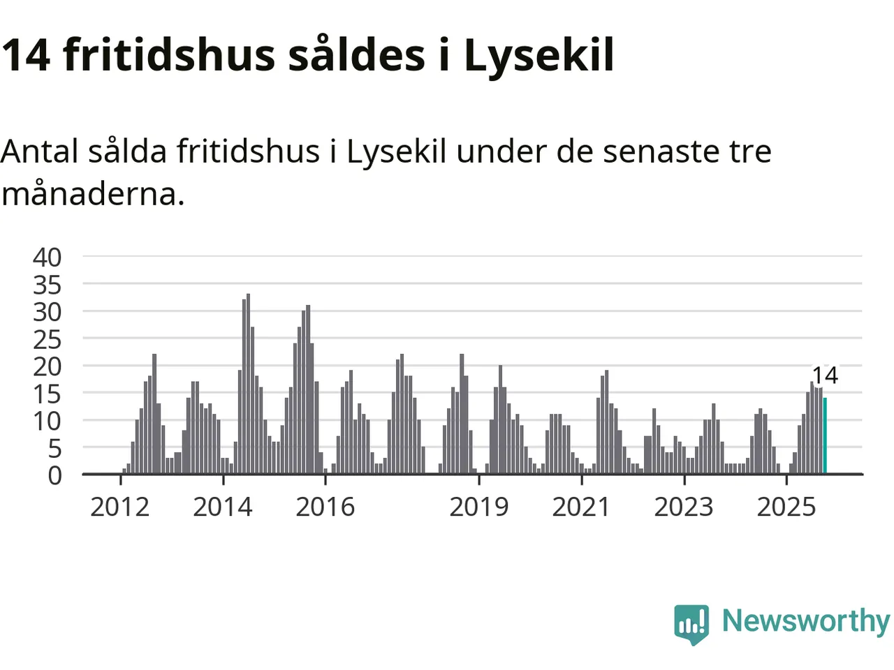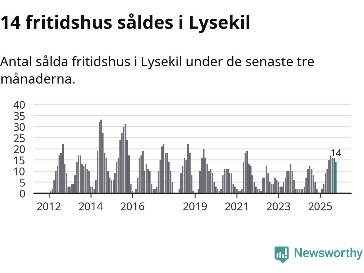 Mellan augusti och oktober gjordes sammanlagt 14 affärer med fritidshus i Lysekils kommun. Det kan jämföras med fem vid motsvarande tid i fjol.
