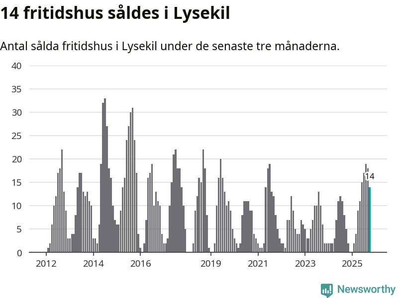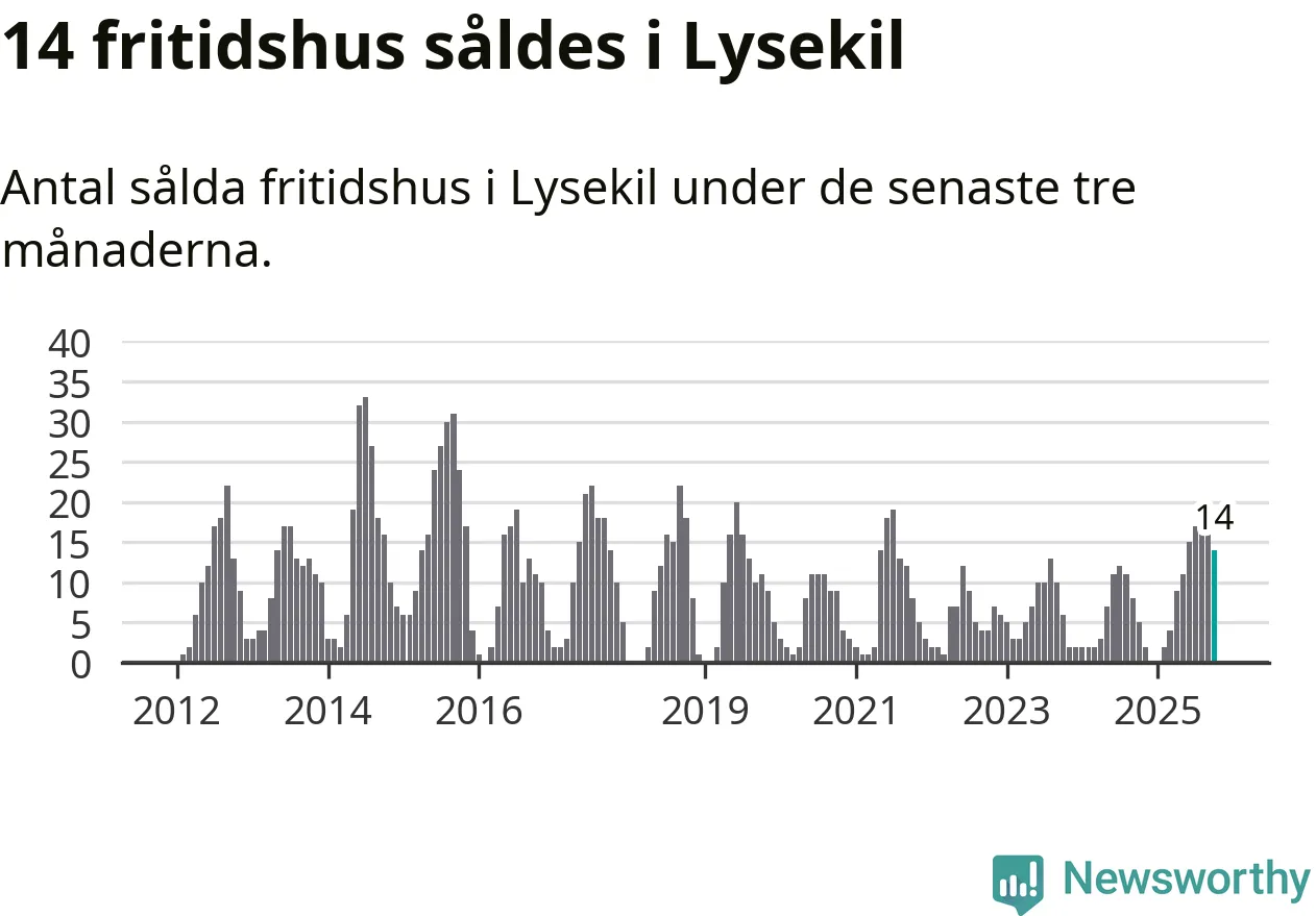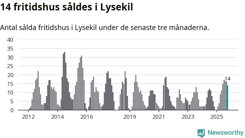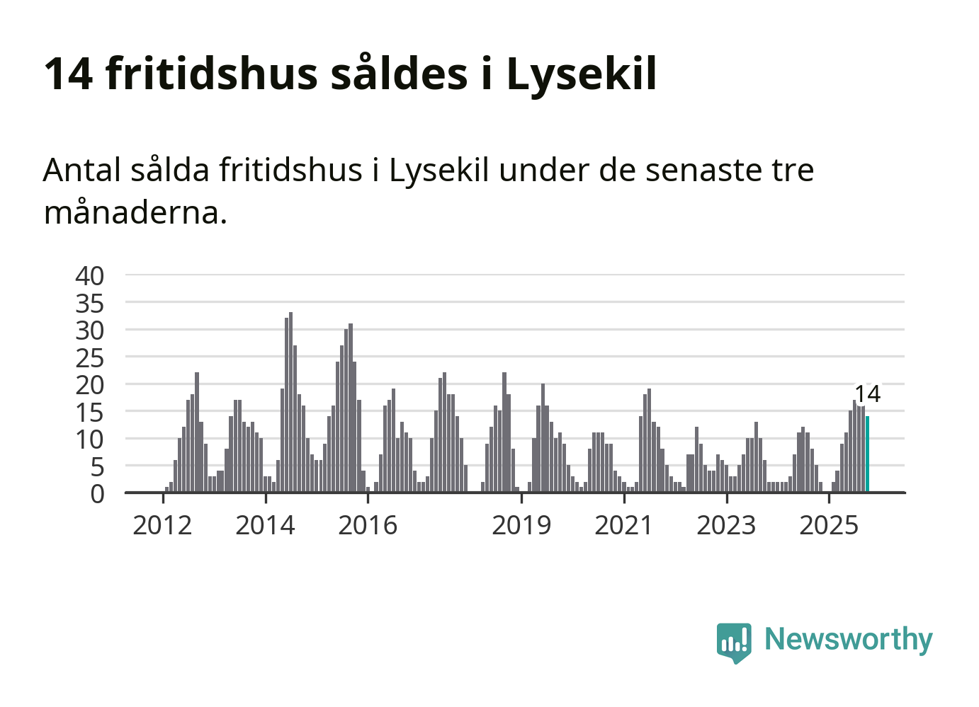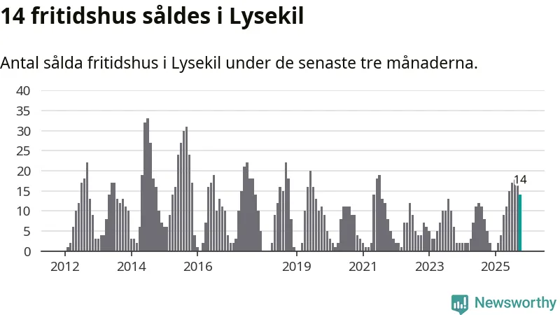 Mellan augusti och oktober gjordes sammanlagt 14 affärer med fritidshus i Lysekils kommun. Det kan jämföras med fem vid motsvarande tid i fjol.