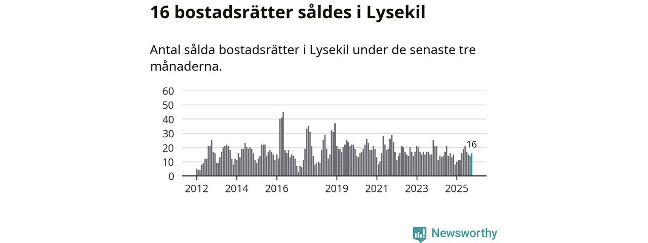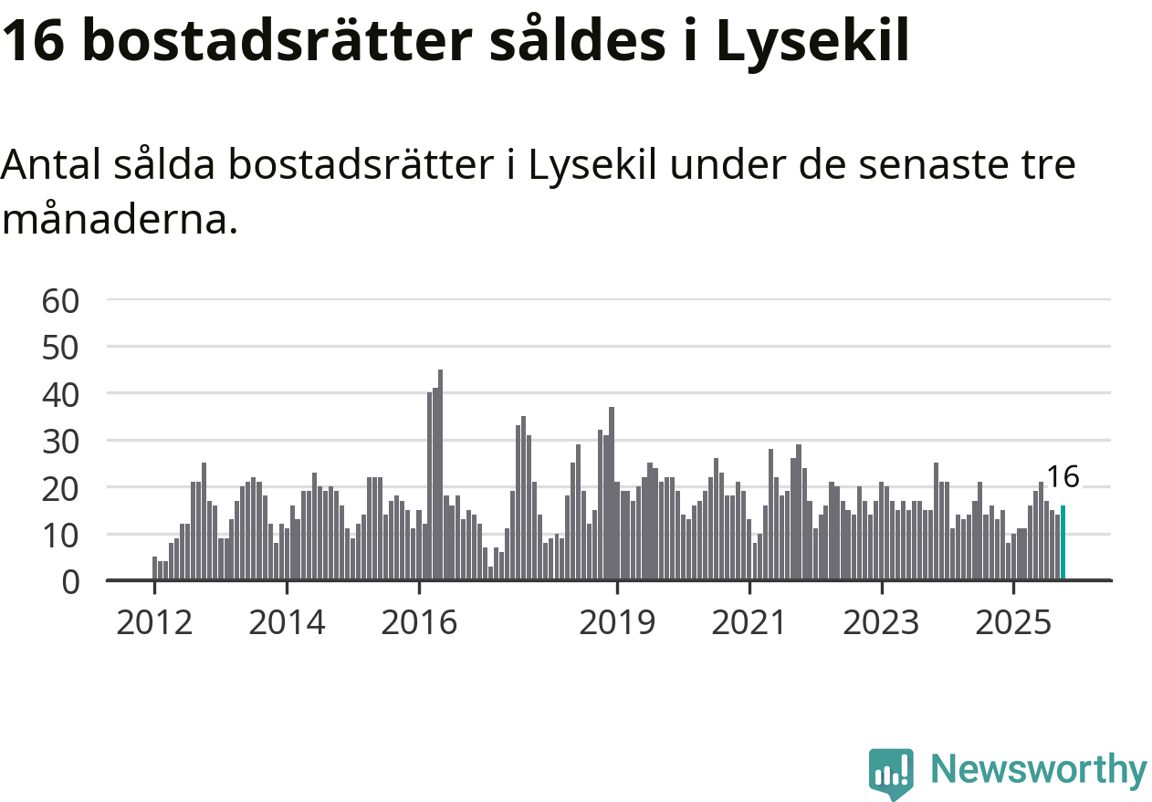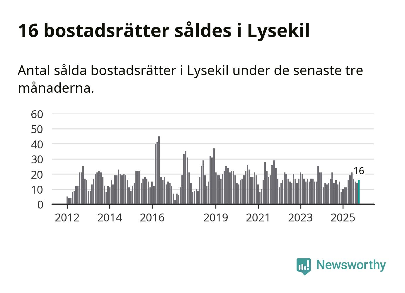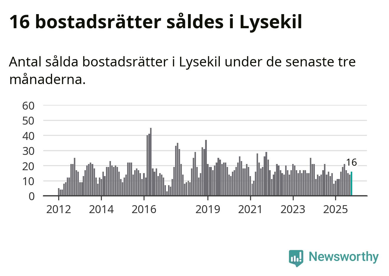 Mellan augusti och oktober gjordes sammanlagt 16 affärer med bostadsrätter i Lysekils kommun. Det kan jämföras med 13 vid motsvarande tid i fjol.