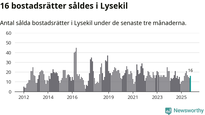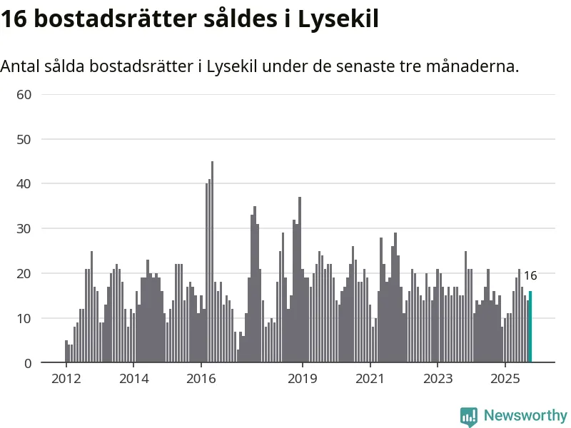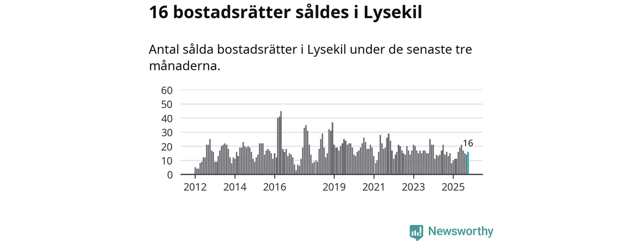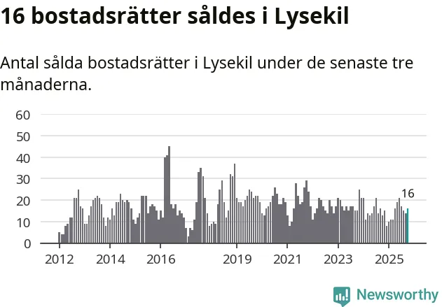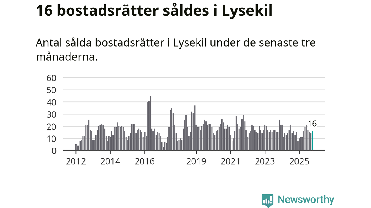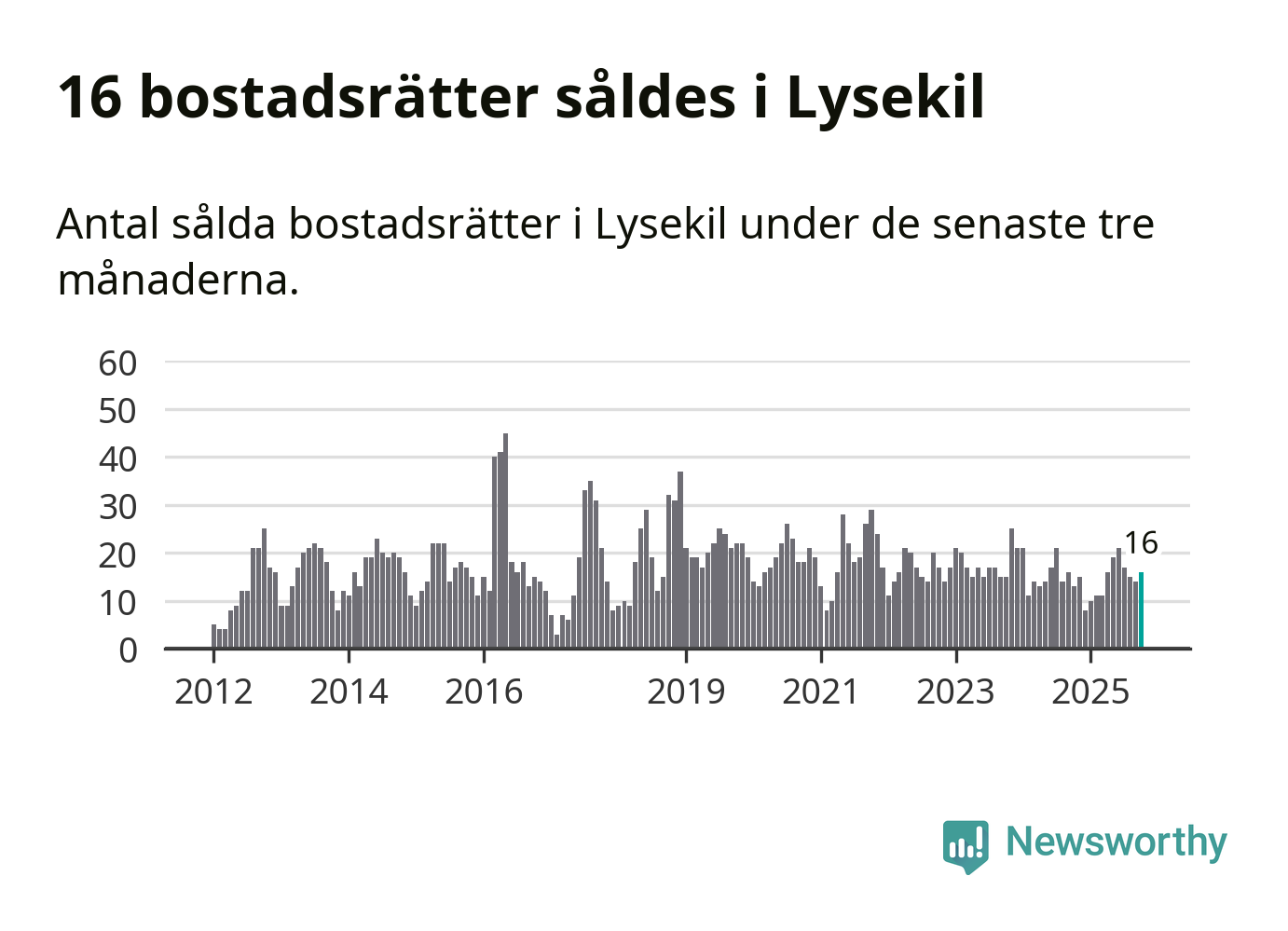 Mellan augusti och oktober gjordes sammanlagt 16 affärer med bostadsrätter i Lysekils kommun. Det kan jämföras med 13 vid motsvarande tid i fjol.