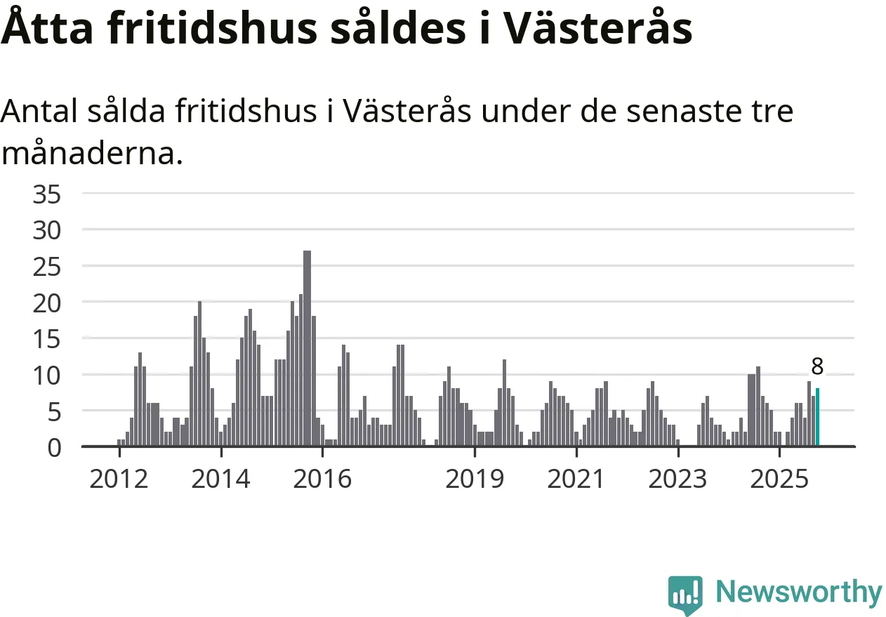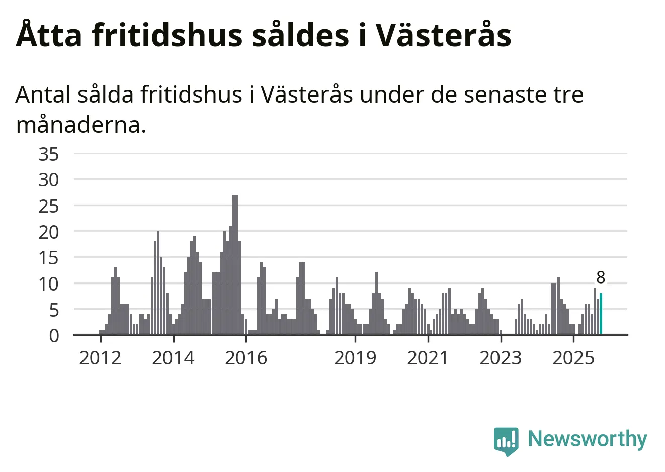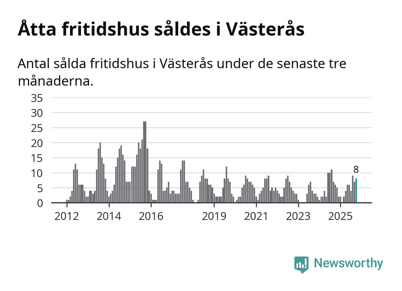 Mellan augusti och oktober gjordes sammanlagt åtta affärer med fritidshus i Västerås kommun. Det kan jämföras med sex vid motsvarande tid i fjol.