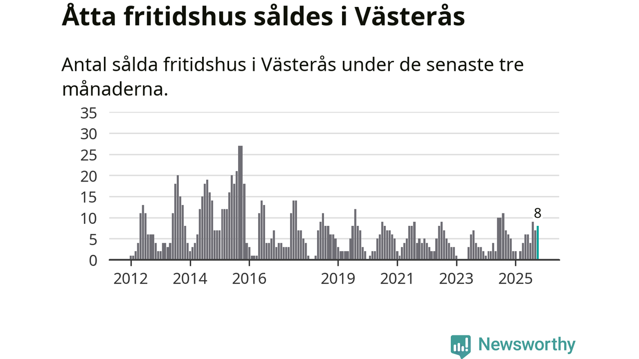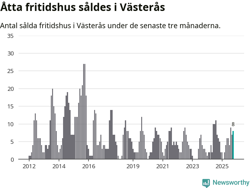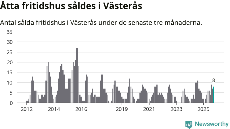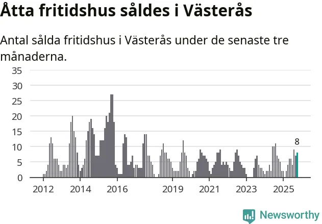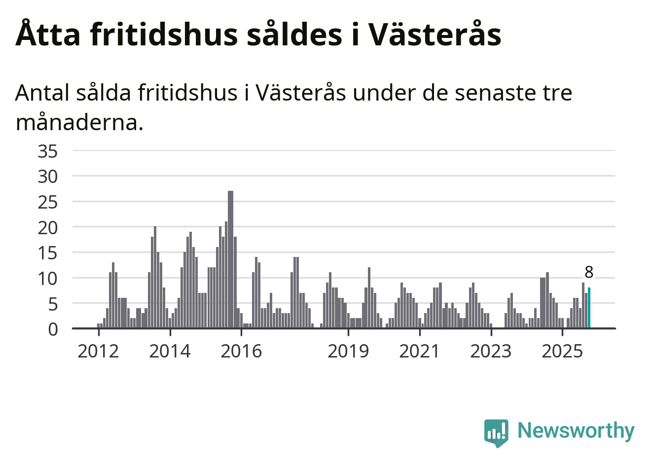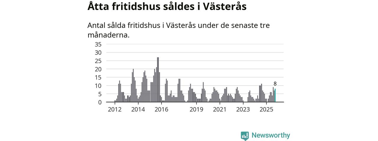 Mellan augusti och oktober gjordes sammanlagt åtta affärer med fritidshus i Västerås kommun. Det kan jämföras med sex vid motsvarande tid i fjol.