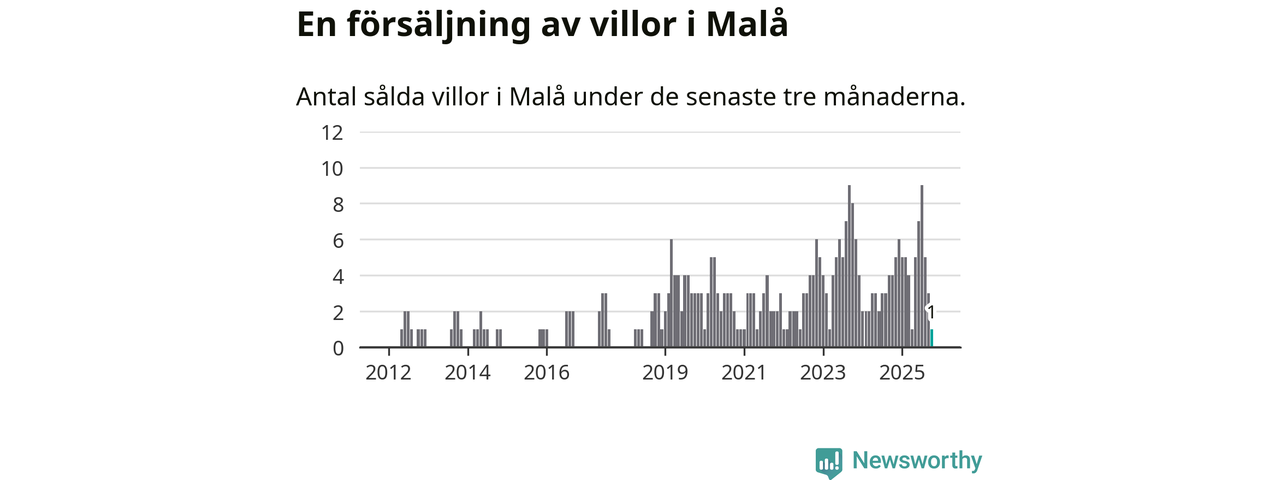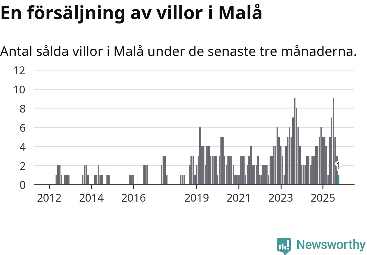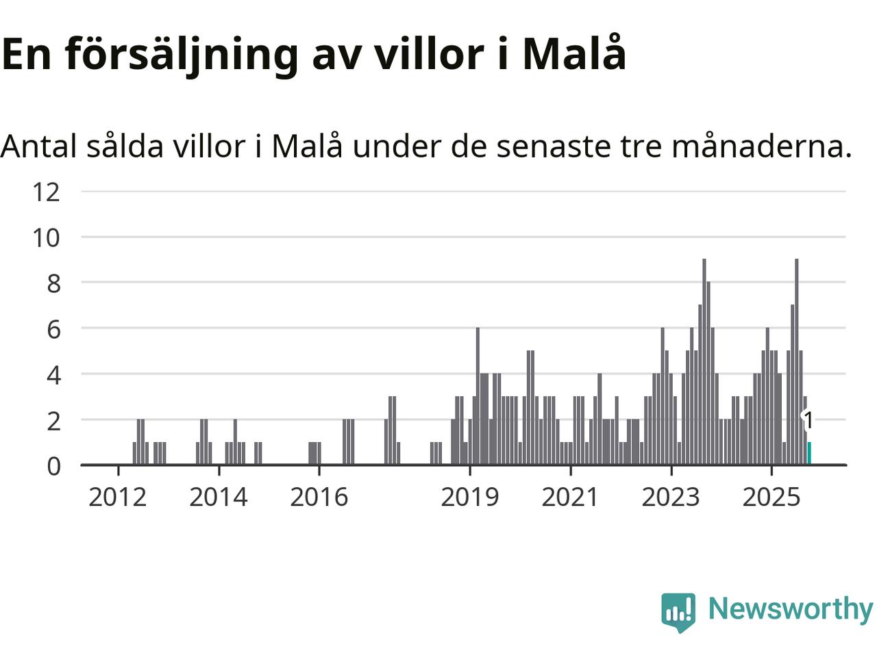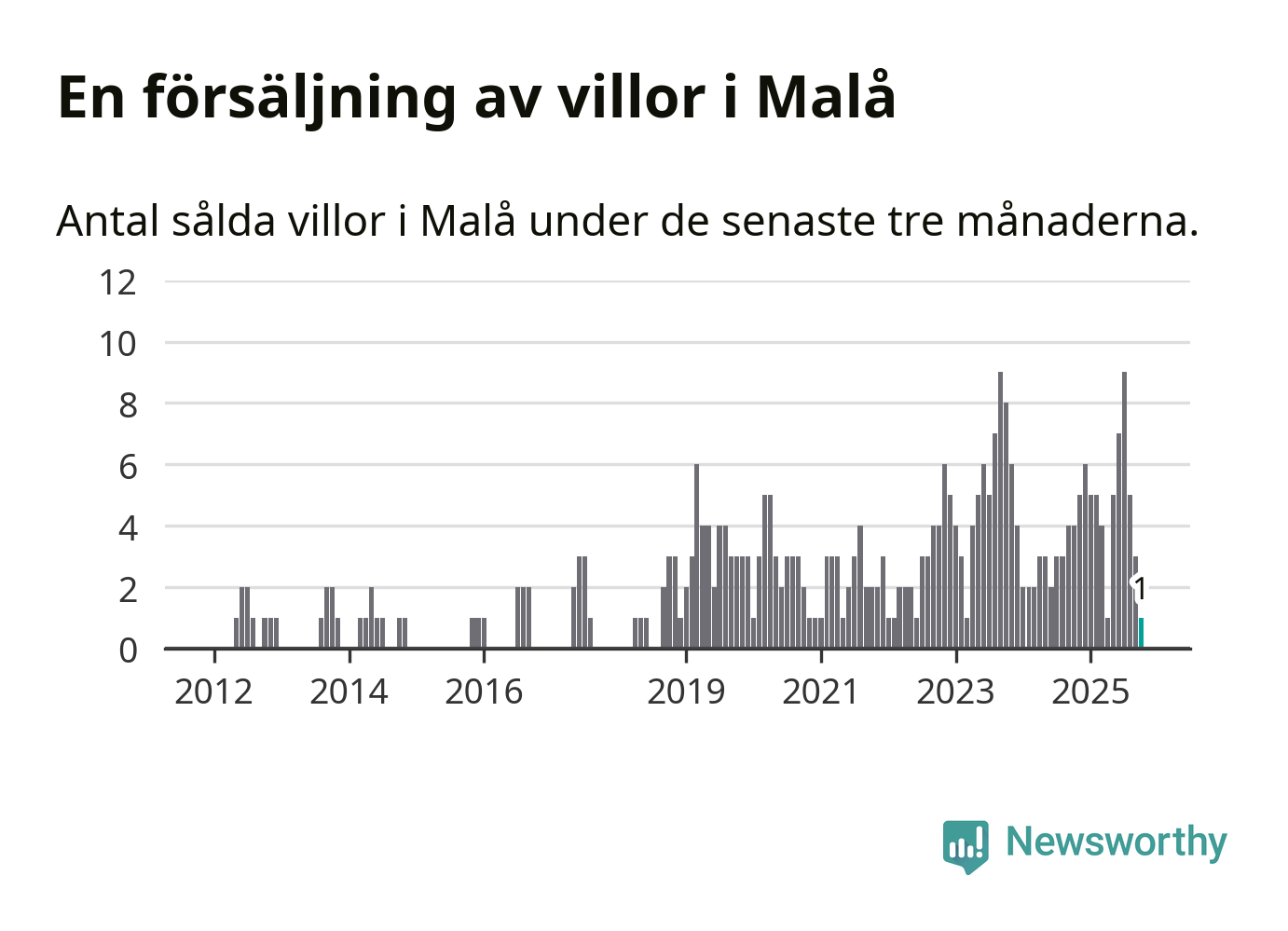 Mellan augusti och oktober gjordes sammanlagt en affär med villor i Malå kommun. Det kan jämföras med fyra vid motsvarande tid i fjol.