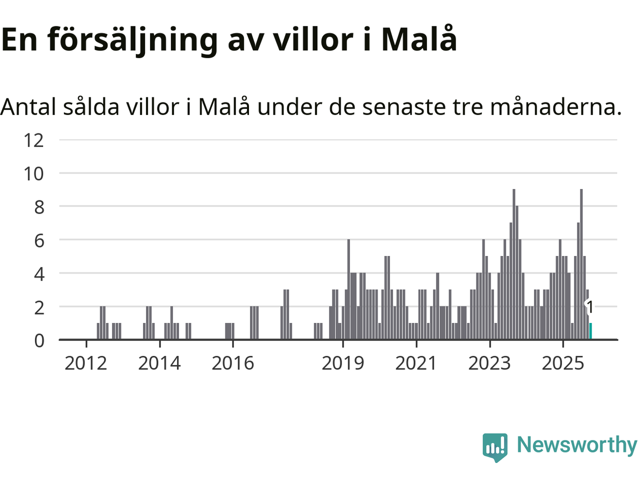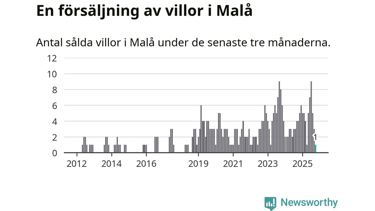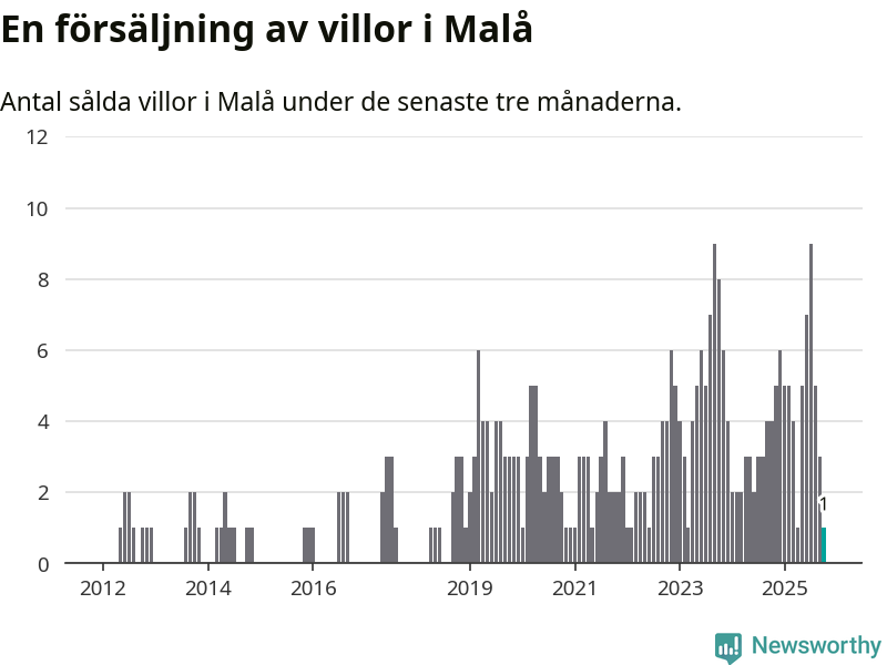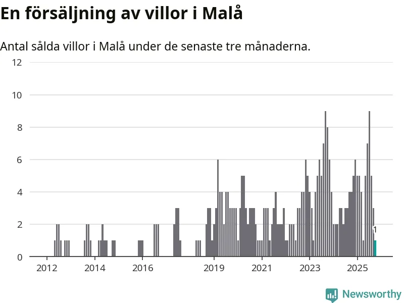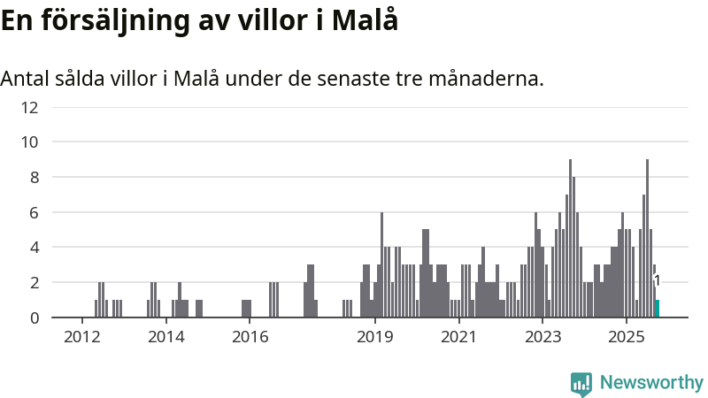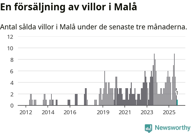 Mellan augusti och oktober gjordes sammanlagt en affär med villor i Malå kommun. Det kan jämföras med fyra vid motsvarande tid i fjol.