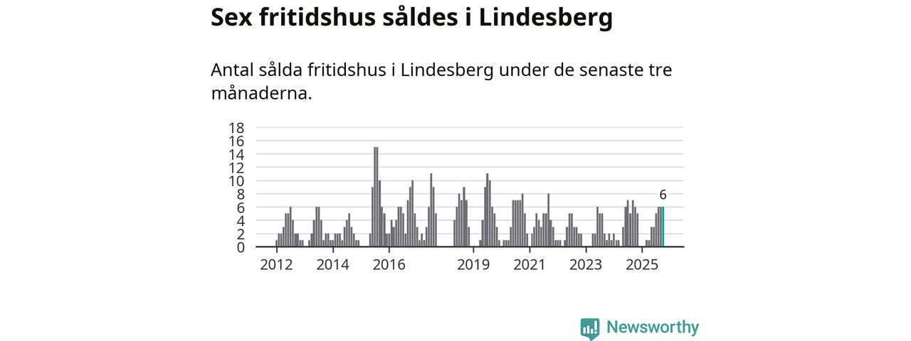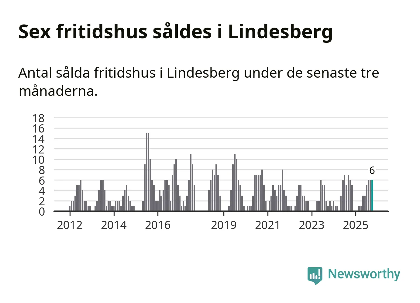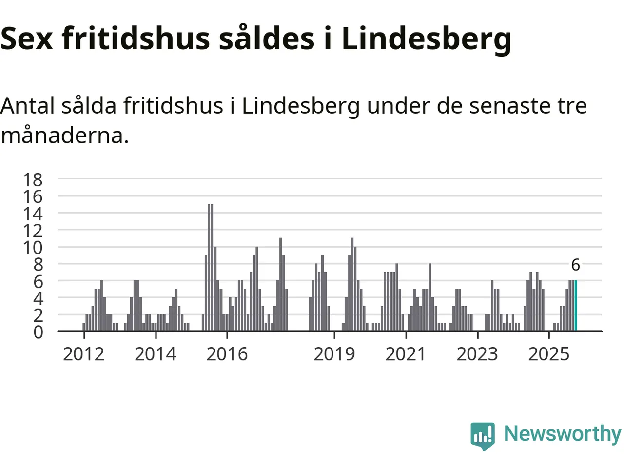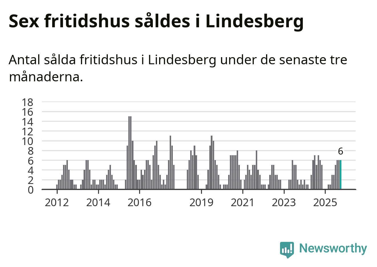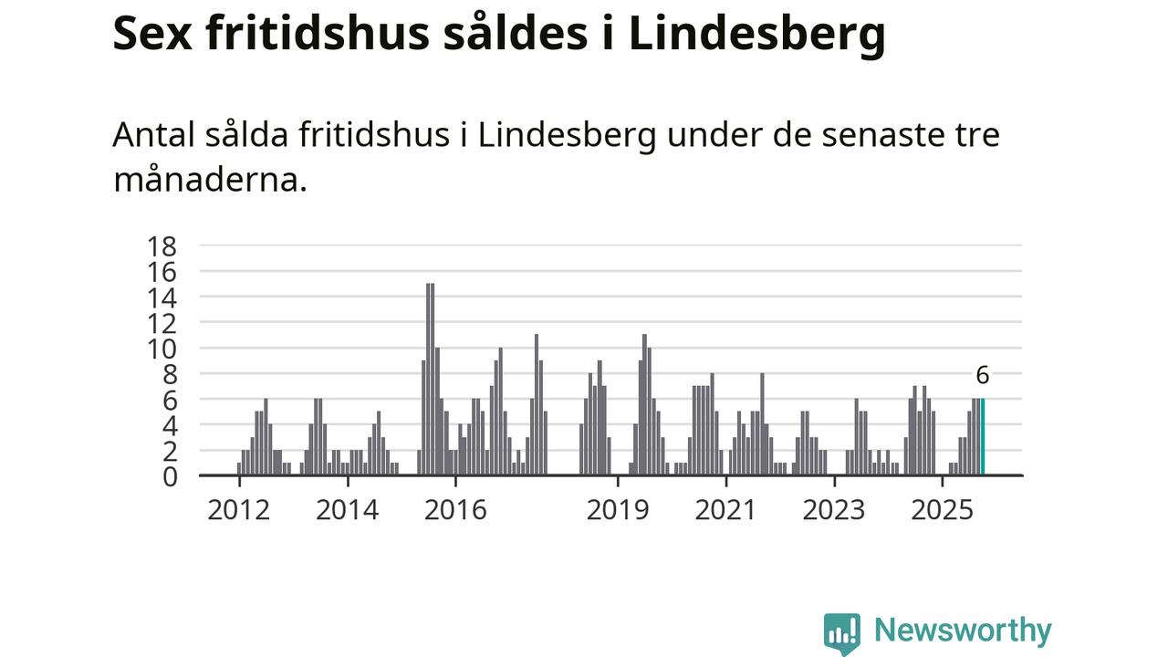 Mellan augusti och oktober gjordes sammanlagt sex affärer med fritidshus i Lindesbergs kommun. Det är lika många affärer som vid motsvarande tid i fjol.