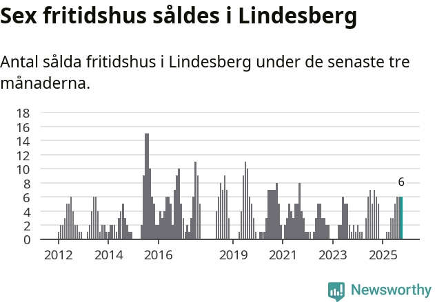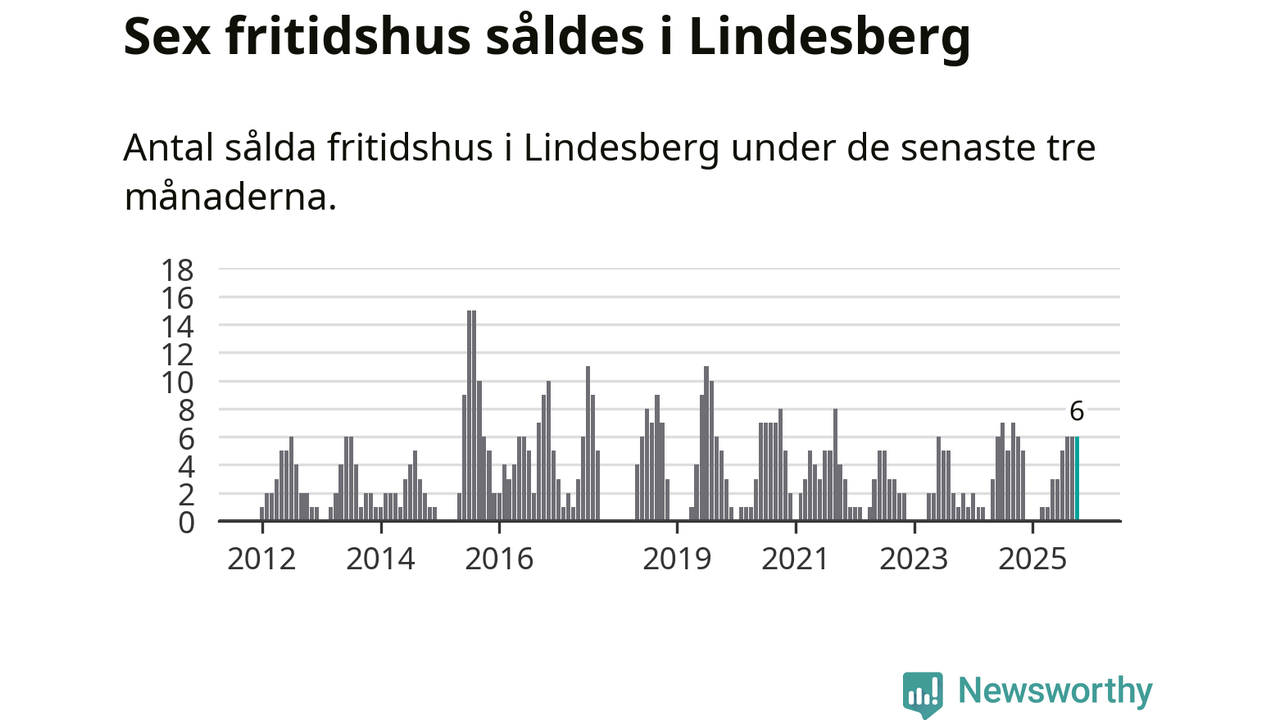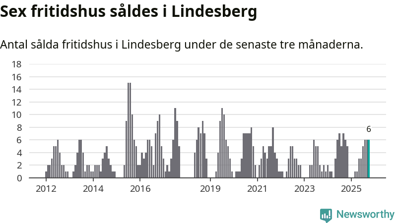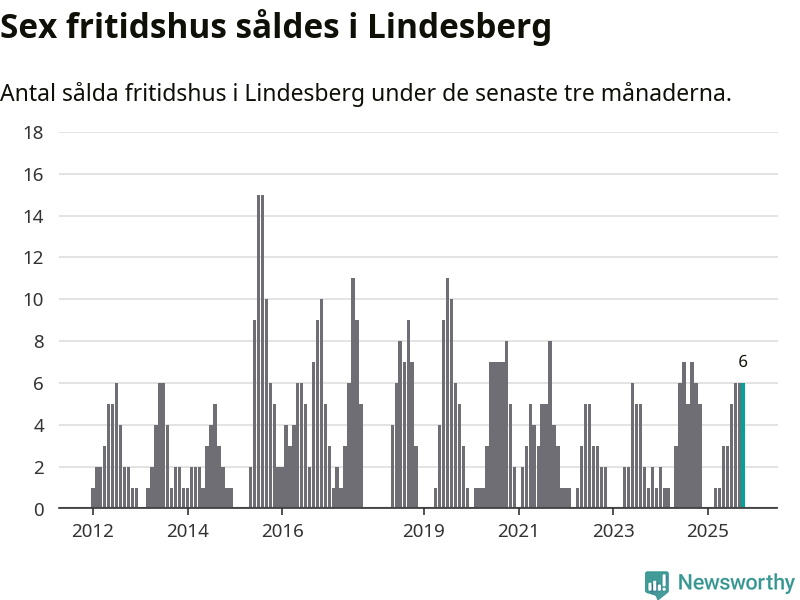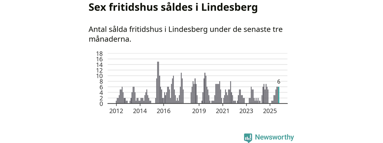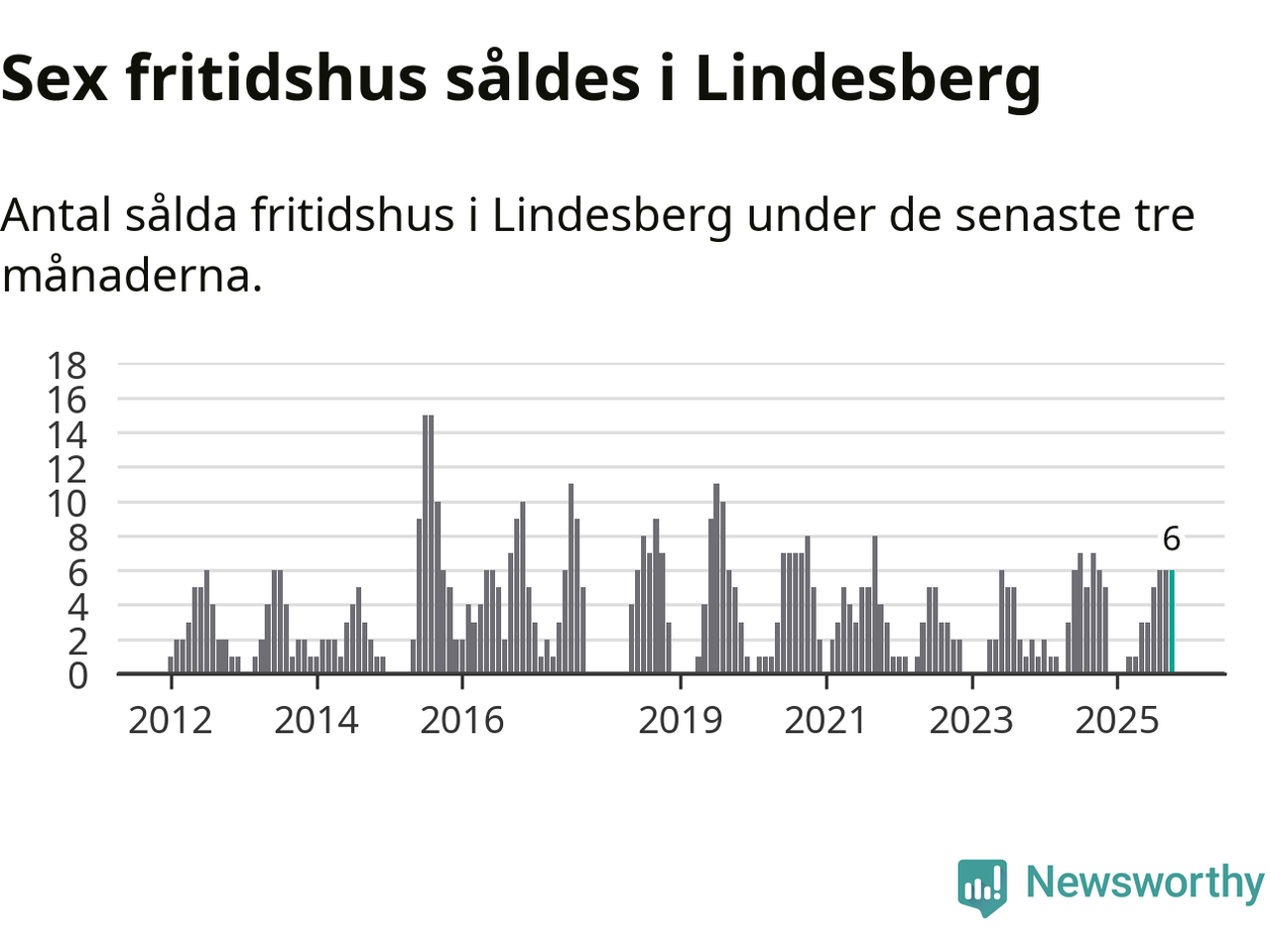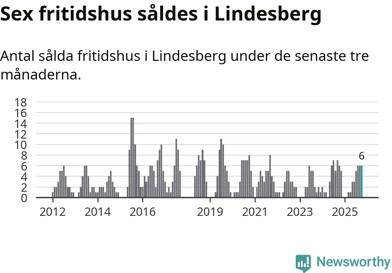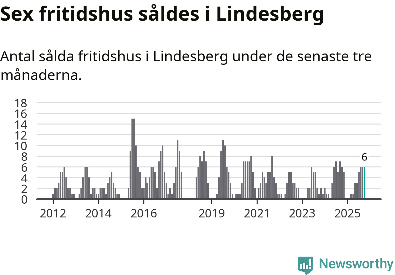 Mellan augusti och oktober gjordes sammanlagt sex affärer med fritidshus i Lindesbergs kommun. Det är lika många affärer som vid motsvarande tid i fjol.