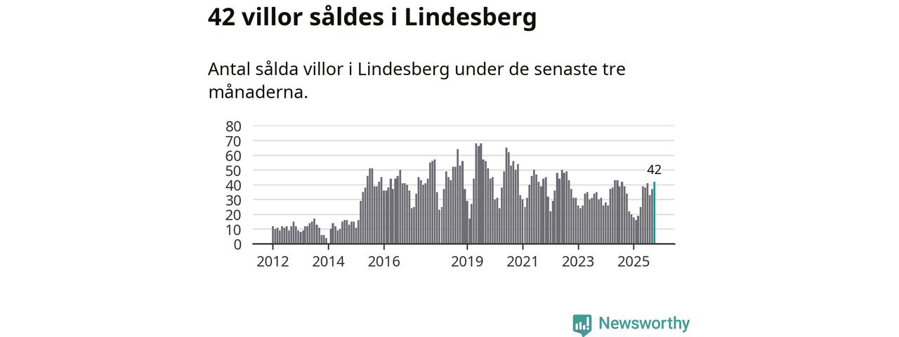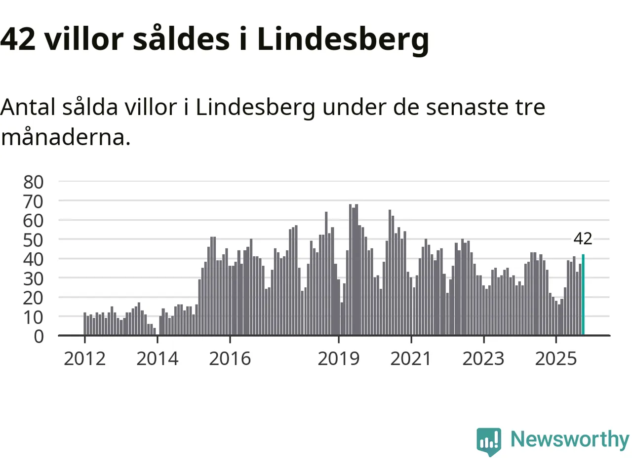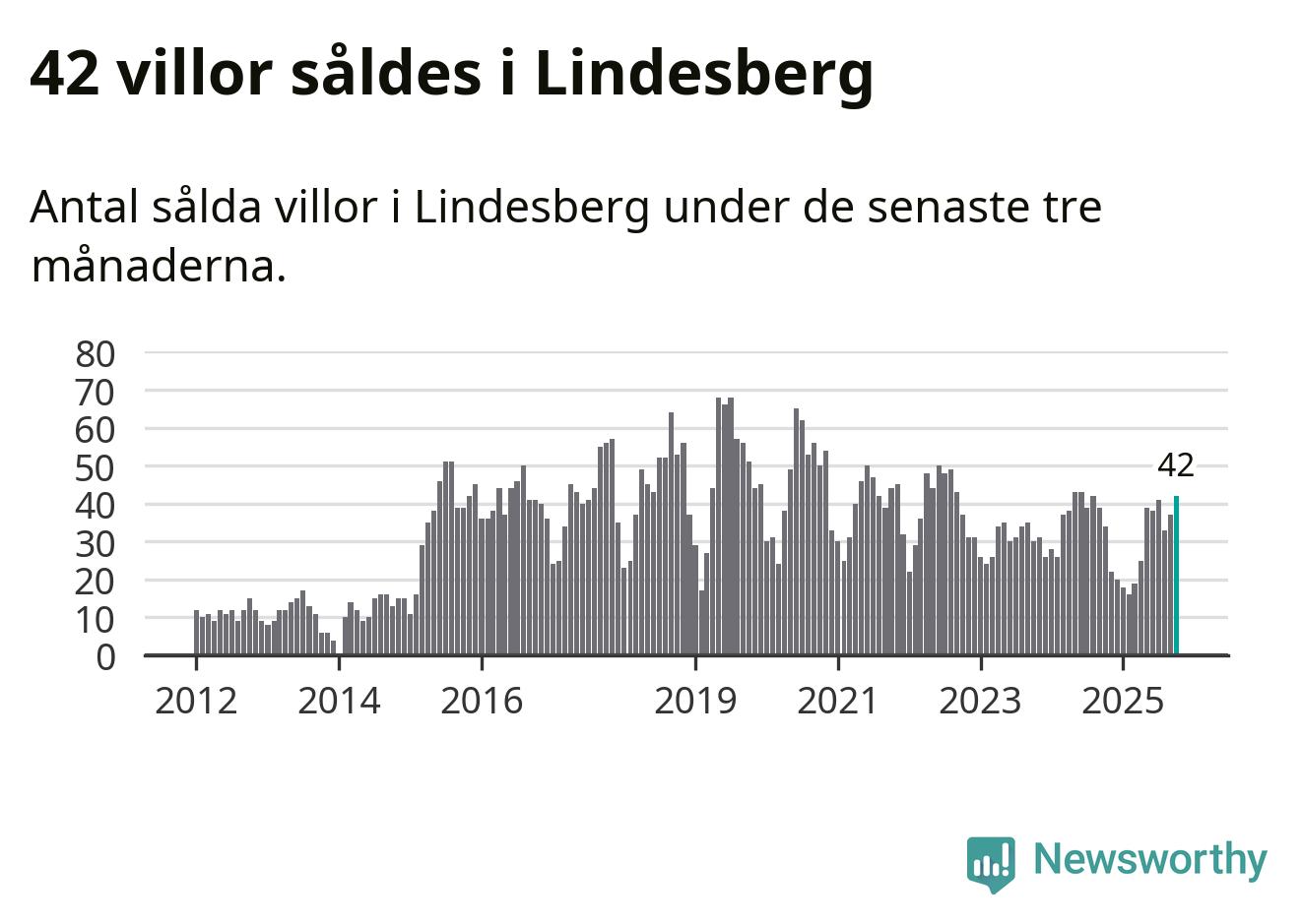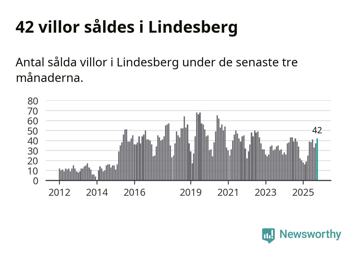 Sammanlagt såldes 42 villor i Lindesbergs kommun mellan augusti och oktober till ett genomsnittligt pris på 1,4 miljoner kronor. I fjol gjordes 34 affärer vid den här tiden på året.