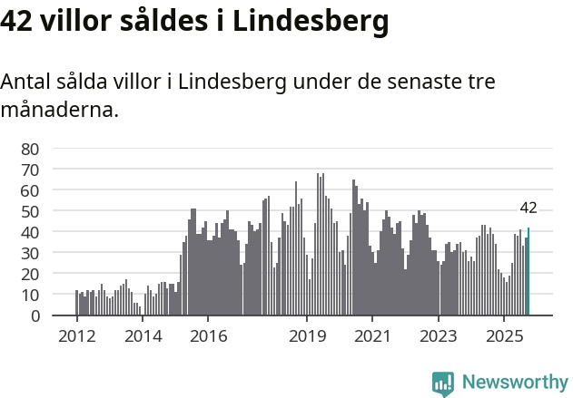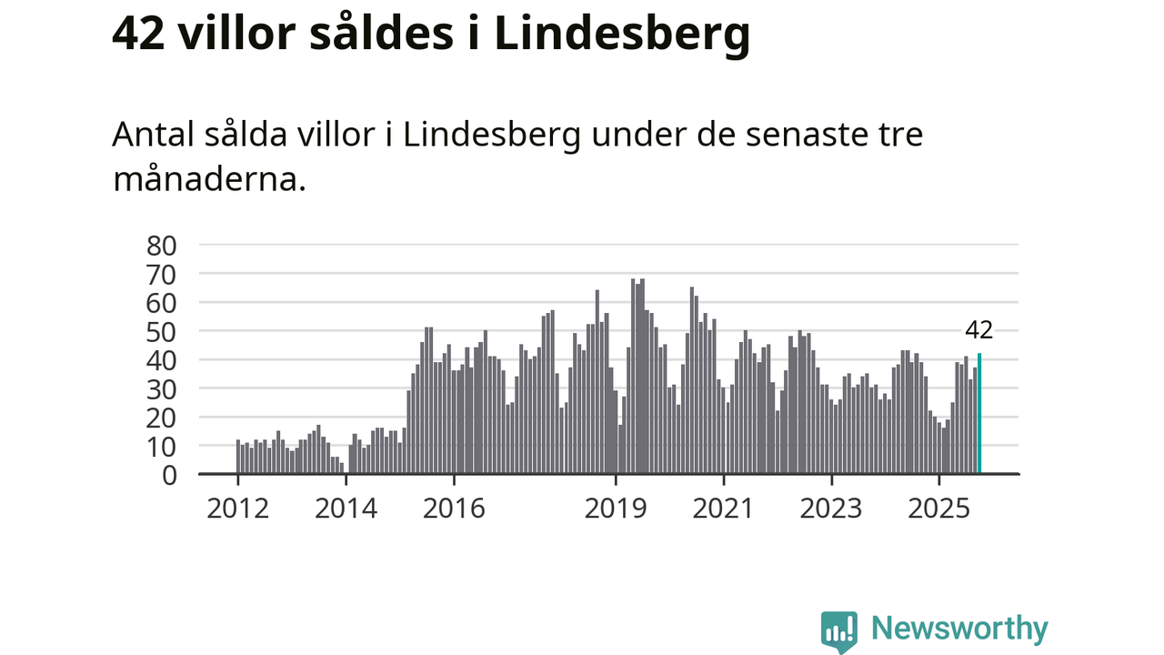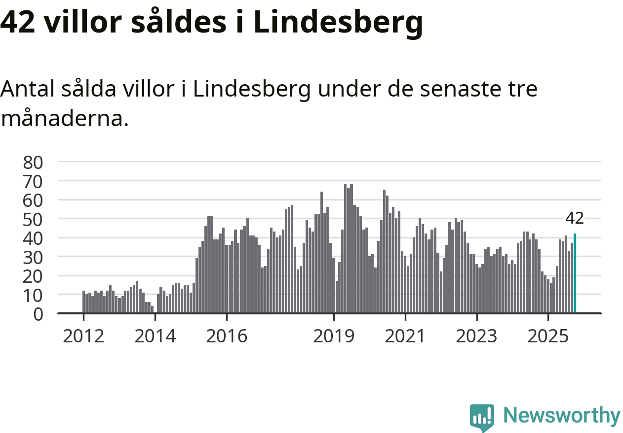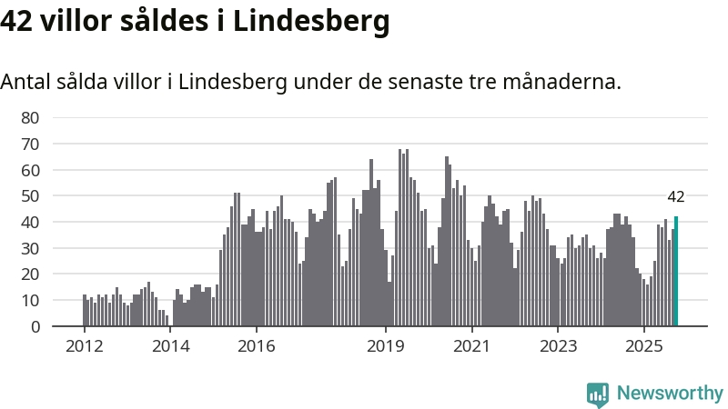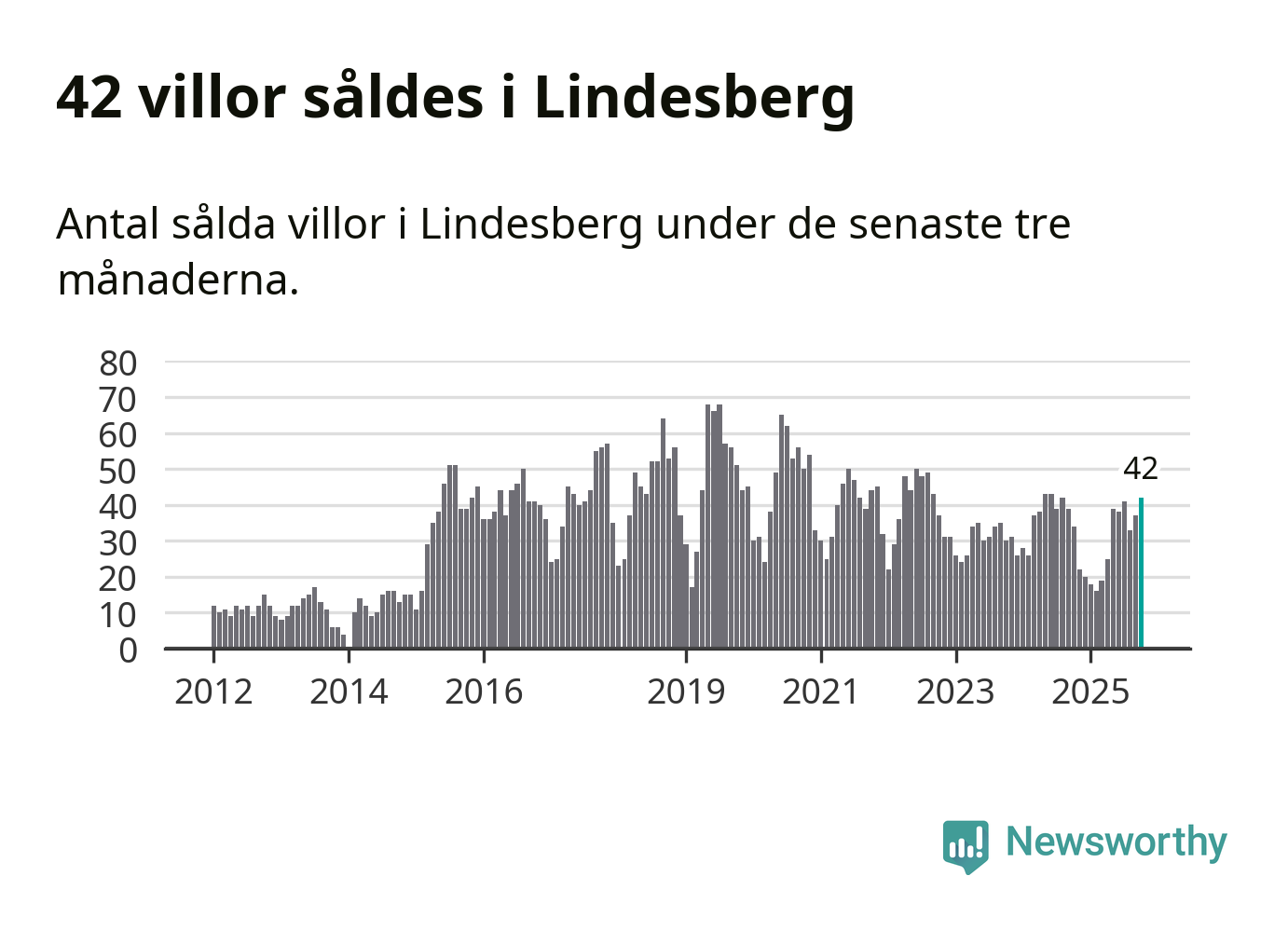 Sammanlagt såldes 42 villor i Lindesbergs kommun mellan augusti och oktober till ett genomsnittligt pris på 1,4 miljoner kronor. I fjol gjordes 34 affärer vid den här tiden på året.