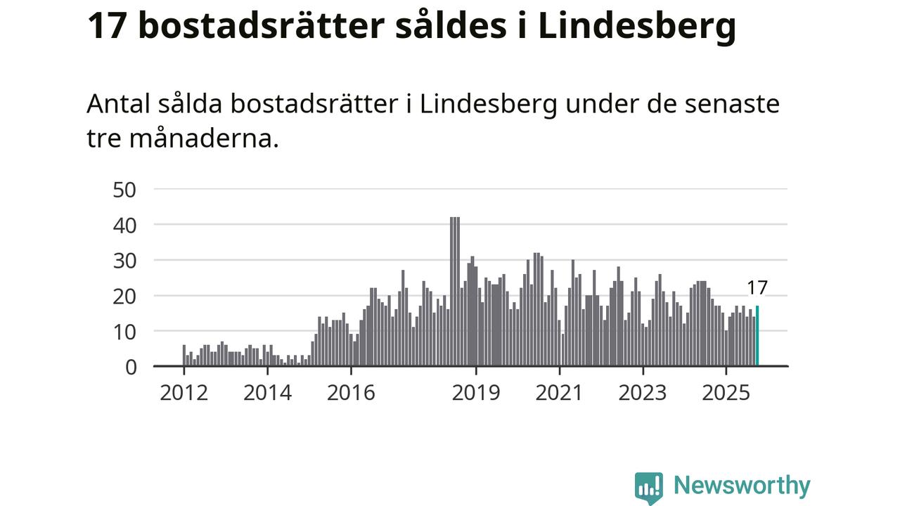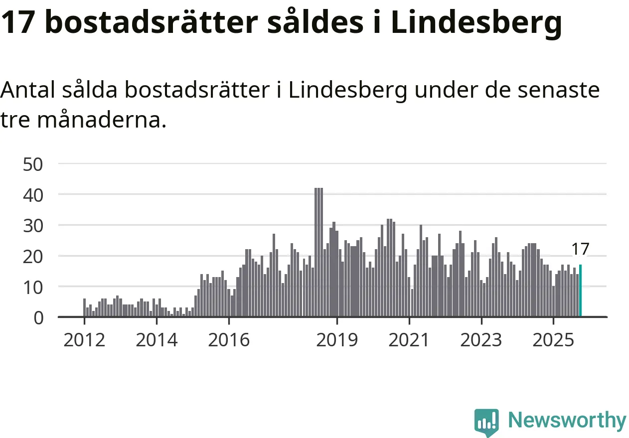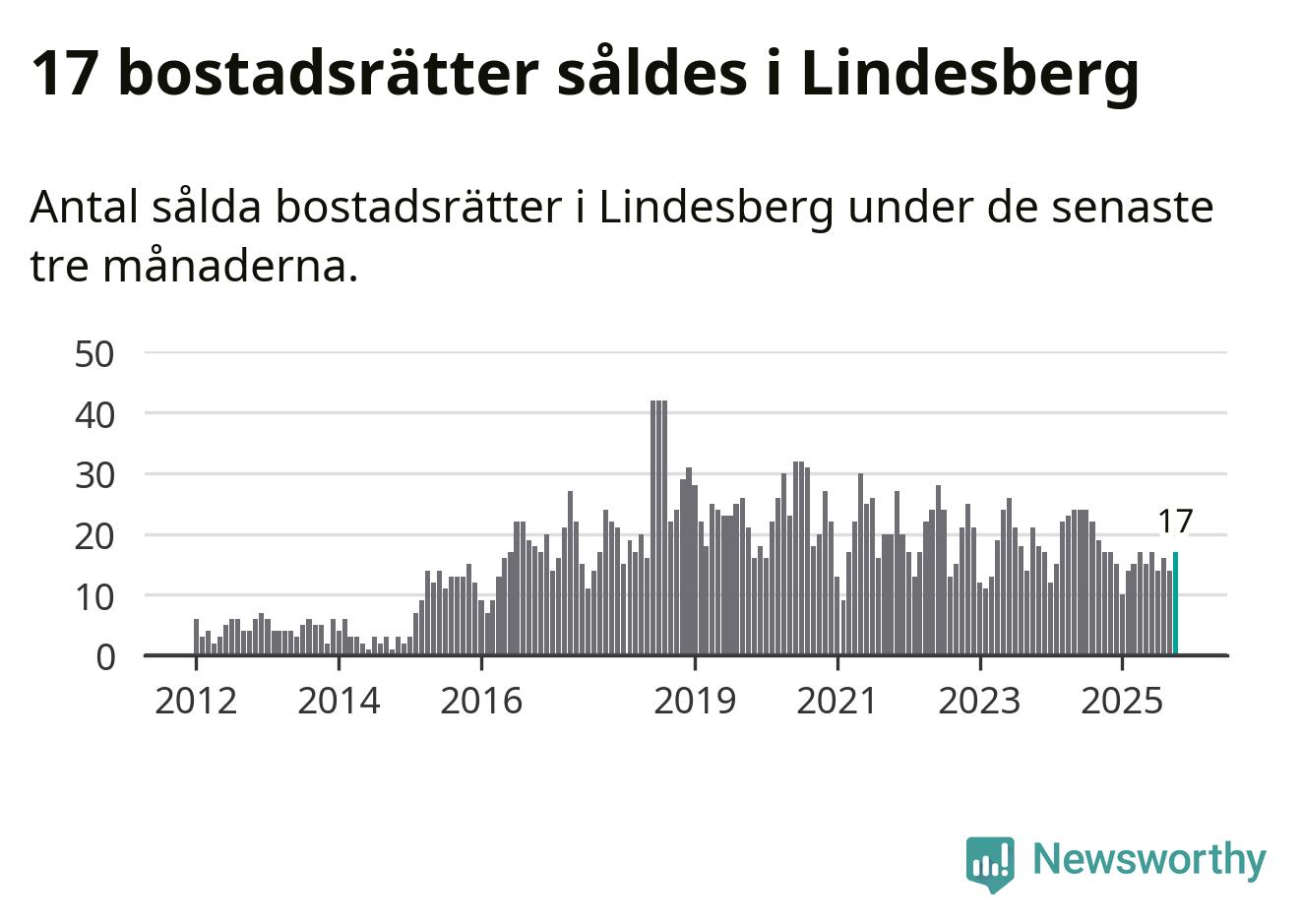 Mellan augusti och oktober gjordes sammanlagt 17 affärer med bostadsrätter i Lindesbergs kommun. Det är lika många affärer som vid motsvarande tid i fjol.